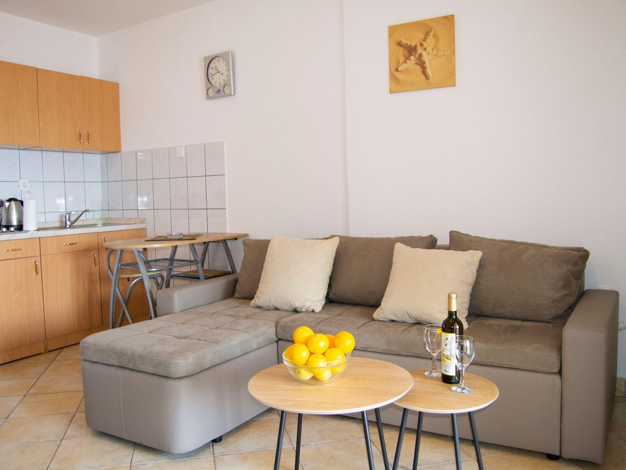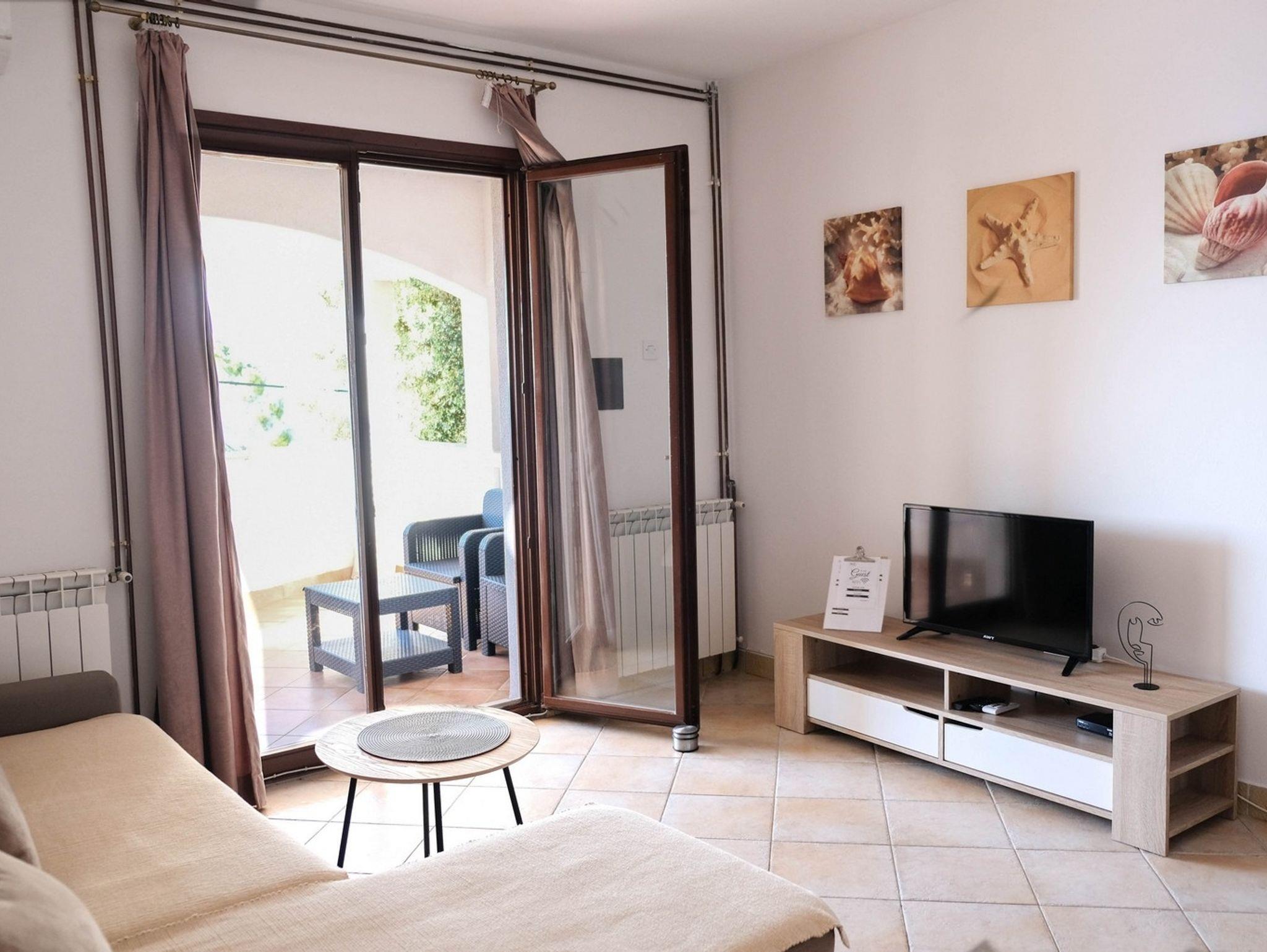 Ferienwohnung bietet Platz für 4 Gäste. Die Betten sind in Schlafzimmern, die es 1 gibt, und in Wohnzimmer, innerhalb einer Gesamtfläche von 28m2, angeordnet. Die Gäste haben eine eigene Terrasse zur Verfügung, auf der sie in warmen Sommernächten genießen können. Das Apartment bietet Meerblick. Es ist erlaubt, Speisen auf dem Gemeinschafts-Grill vorzubereiten. IM PREIS INBEGRIFFEN: Kurtaxe, Endreinigung, Klimatisierung, Zentralheizung, Parkplatz, Internet, Kinderbett, Föhn, Sonnenschirm, Liegestühle. Die Verfügbarkeit zusätzlicher Dienstleistungen in Ihrem reservierten Termin und die Preise derselben (falls nicht aufgeführt) müssen im Voraus überprüft werden. Zusätzliche Dienstleistungen die in der Zahlungsaufforderung nicht aufgeführt sind werden direkt beim Vermieter bezahlt, angenommen der Gast nutzt auch diese.