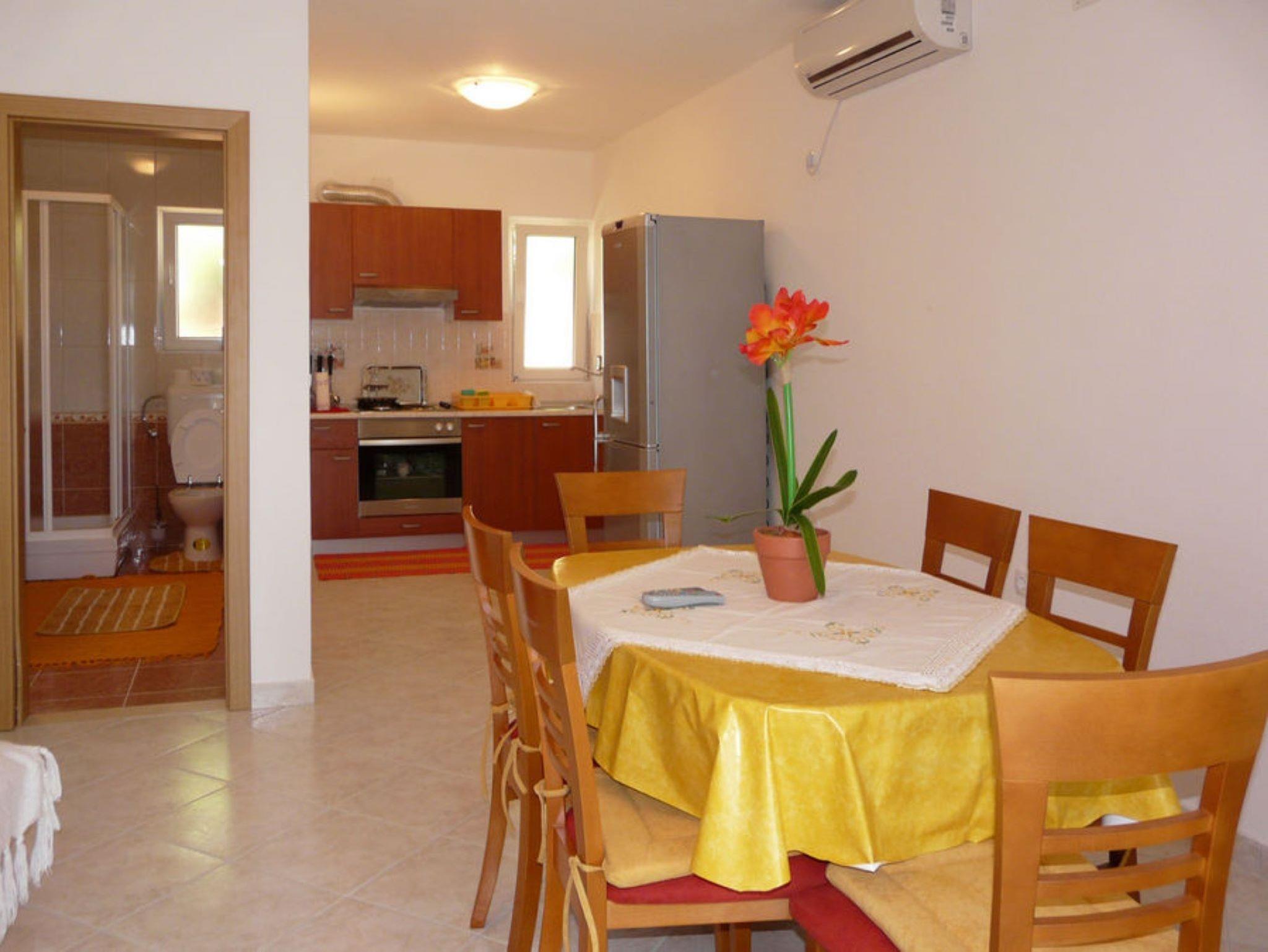 Ferienwohnung bietet Platz für 5 Gäste. Die Betten sind in Schlafzimmern, die es 2 gibt, und in Wohnzimmer, innerhalb einer Gesamtfläche von 61m2, angeordnet. Die Gäste haben eine eigene Terrasse zur Verfügung, auf der sie in warmen Sommernächten genießen können. Das Apartment bietet Meerblick. Für vollen Genuss und Entspannung gibt es einen privaten Grill für Gäste dieser Unterkunft. In der Unterkunftseinheit besteht die Möglichkeit des Mitbringens von Haustieren gegen Aufpreis. IM PREIS INBEGRIFFEN: Kurtaxe, Endreinigung, Klimatisierung, Parkplatz, Internet, Bootsanlegeplatz, Kinderbett, Bügeleisen, Bügelbrett, Föhn, Liegestühle. VERBINDLICHE ZUSÄTZLICHE KOSTEN: Aufzahlung für Kurzaufenthalte (prozentualer Zuschlag pro Nächtigungsanzahl: 30% - 1, 20% - 2, 10% - 3). UNVERBINDLICHE ZUSÄTZLICHE KOSTEN: Haustiere (7,00 € pro Nacht). Die Verfügbarkeit zusätzlicher Dienstleistungen in Ihrem reservierten Termin und die Preise derselben (falls nicht aufgeführt) müssen im Voraus überprüft werden. Zusätzliche Dienstleistungen die in der Zahlungsaufforderung nicht aufgeführt sind werden direkt beim Vermieter bezahlt, angenommen der Gast nutzt auch diese.