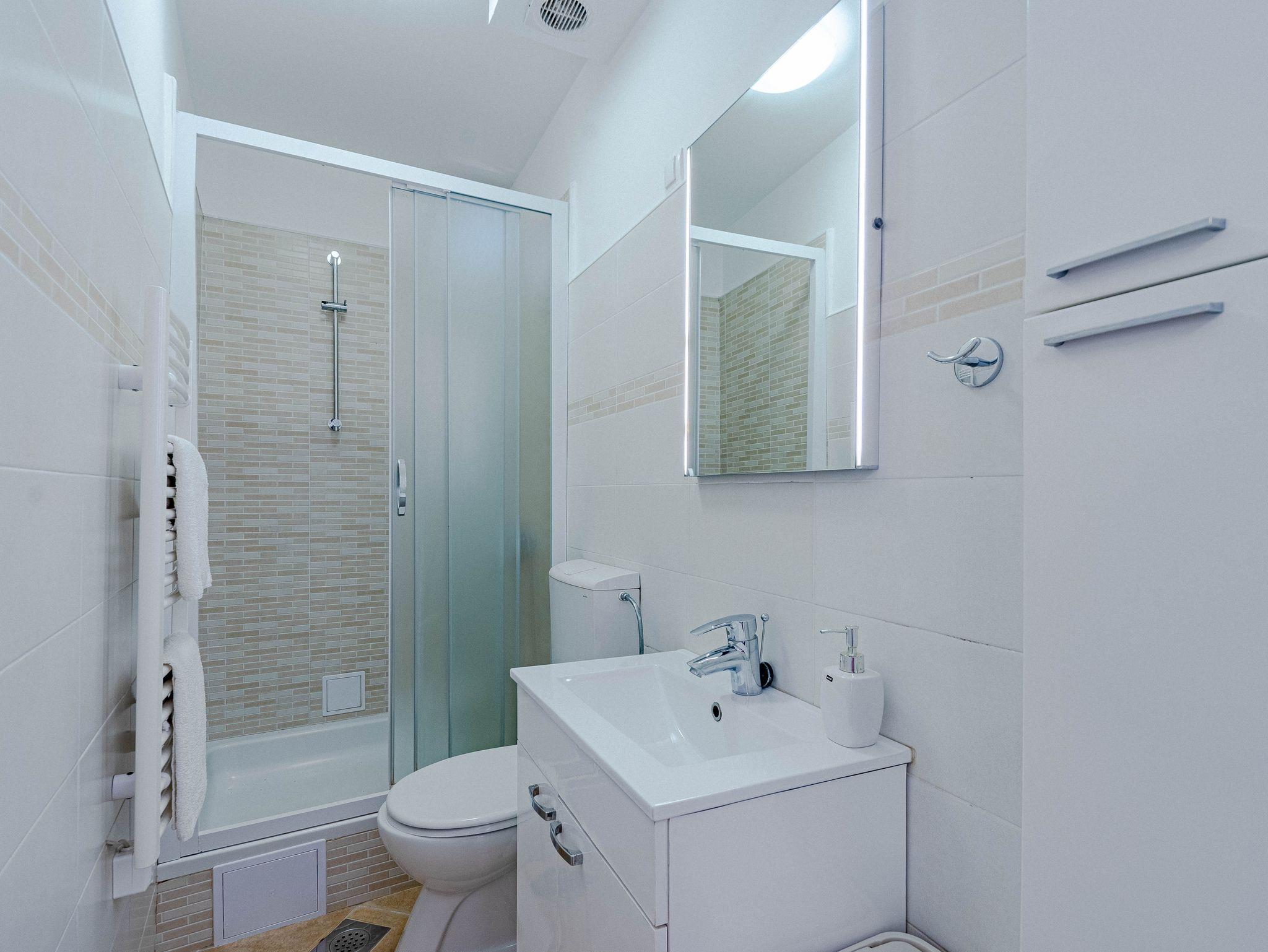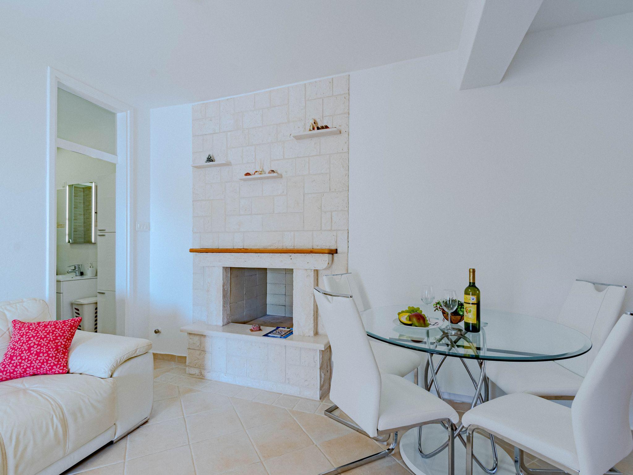 Ferienwohnung bietet Platz für 4 Gäste. Die Betten sind in Schlafzimmern, die es 2 gibt, innerhalb einer Gesamtfläche von 50m2, angeordnet. Die Gäste haben eine eigene Terrasse zur Verfügung, auf der sie in warmen Sommernächten genießen können. Das Apartment bietet Meerblick. Für vollen Genuss und Entspannung gibt es einen privaten Grill für Gäste dieser Unterkunft. In der Unterkunftseinheit besteht die Möglichkeit des Mitbringens von Haustieren, und die Dienstleistung ist im Preis der Unterkunft enthalten. Unterkunftseinheit hat Räume, die von dem Rest der Einheit abgetrennt werden. IM PREIS INBEGRIFFEN: Kurtaxe, Endreinigung, Klimatisierung, Parkplatz, Internet, Bootsanlegeplatz, Haustiere, Bügeleisen, Bügelbrett, Föhn, Sonnenschirm, Liegestühle. Die Verfügbarkeit zusätzlicher Dienstleistungen in Ihrem reservierten Termin und die Preise derselben (falls nicht aufgeführt) müssen im Voraus überprüft werden. Zusätzliche Dienstleistungen die in der Zahlungsaufforderung nicht aufgeführt sind werden direkt beim Vermieter bezahlt, angenommen der Gast nutzt auch diese.