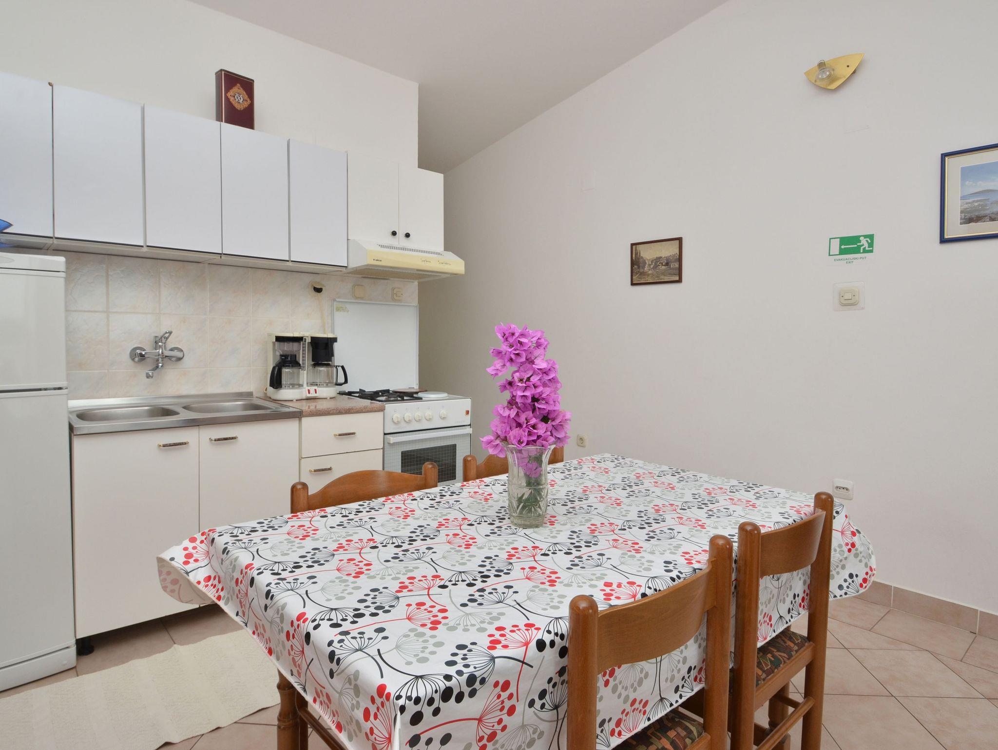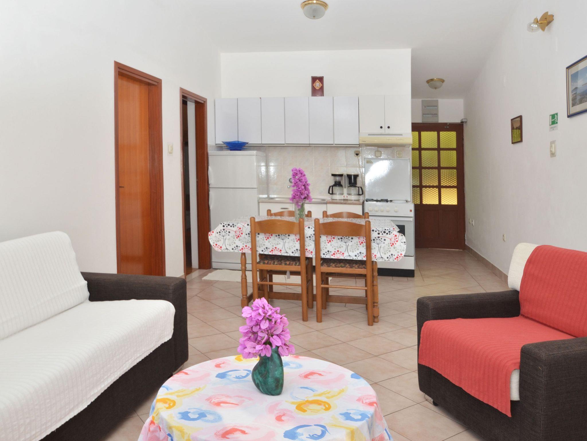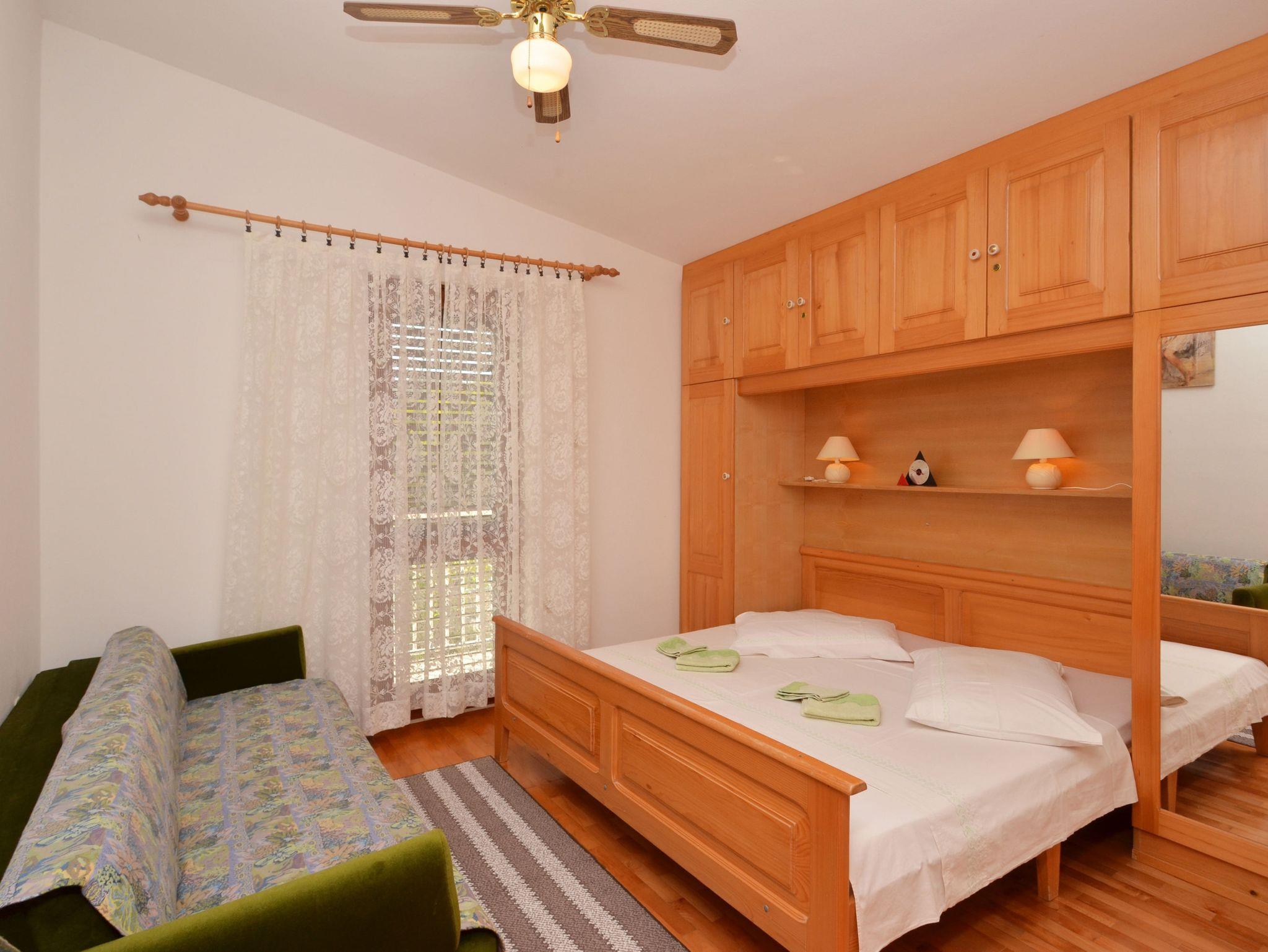 Ferienwohnung bietet Platz für 5 Gäste. Die Betten sind in Schlafzimmern, die es 2 gibt, innerhalb einer Gesamtfläche von 50m2, angeordnet. Die Gäste haben eine eigene Terrasse zur Verfügung, auf der sie in warmen Sommernächten genießen können. Das Apartment bietet Meerblick. Es ist erlaubt, Speisen auf dem Gemeinschafts-Grill vorzubereiten. In der Unterkunftseinheit besteht die Möglichkeit des Mitbringens von Haustieren gegen Aufpreis. IM PREIS INBEGRIFFEN: Kurtaxe, Endreinigung, Klimatisierung, Internet, Bootsanlegeplatz, Bügeleisen, Bügelbrett, Föhn. UNVERBINDLICHE ZUSÄTZLICHE KOSTEN: Wäschewaschen (5,00 € Waschen), Haustiere (10,00 € pro Nacht). Die Verfügbarkeit zusätzlicher Dienstleistungen in Ihrem reservierten Termin und die Preise derselben (falls nicht aufgeführt) müssen im Voraus überprüft werden. Zusätzliche Dienstleistungen die in der Zahlungsaufforderung nicht aufgeführt sind werden direkt beim Vermieter bezahlt, angenommen der Gast nutzt auch diese. Ermäßigung auf den Grundpreis: Gratistag 28=25 (bei einem Aufenthalt von 28 oder mehr Tagen erhalten Sie 3 kostenlose Tage für den Aufenthalt bis 31.12.26).
