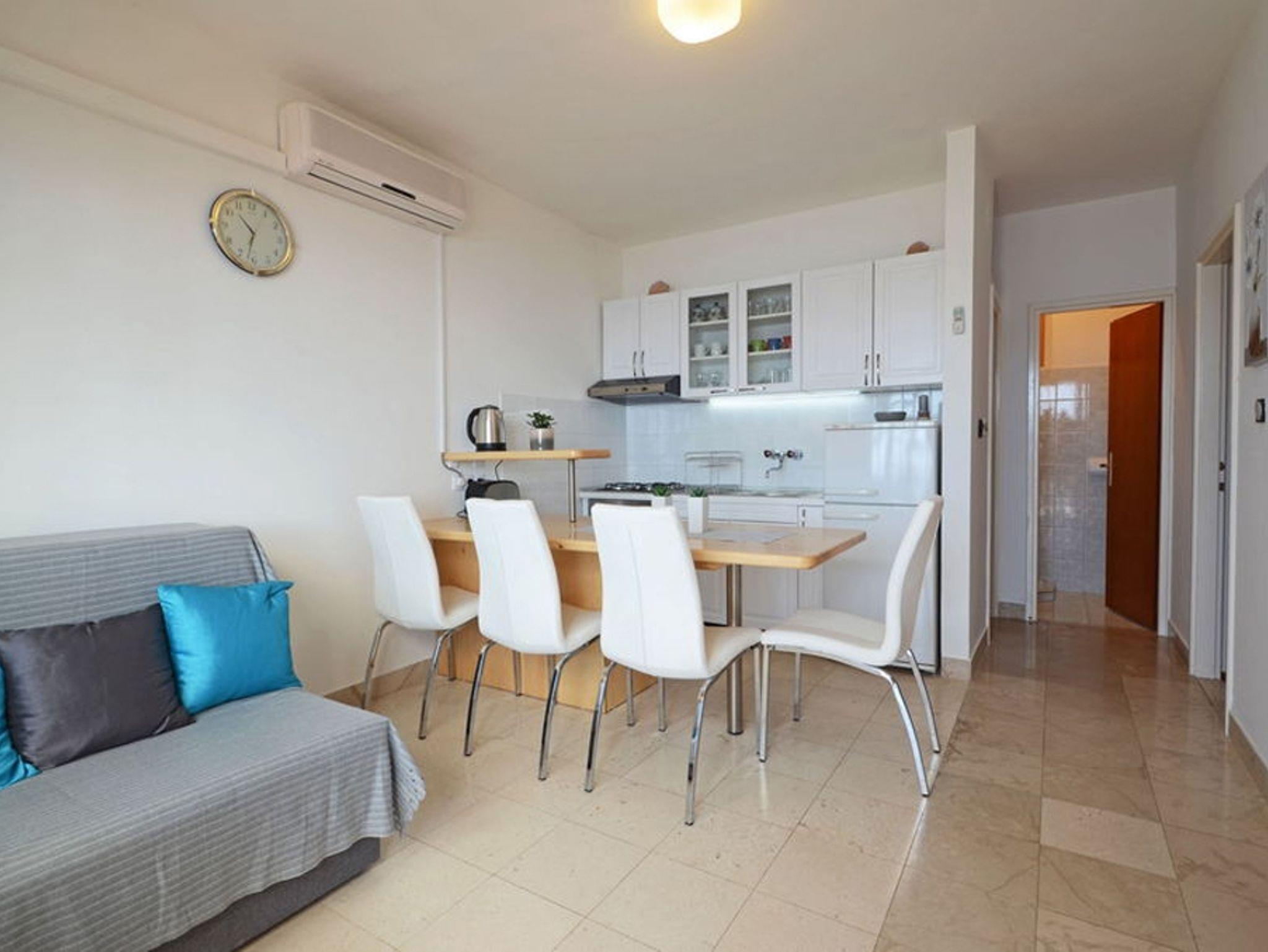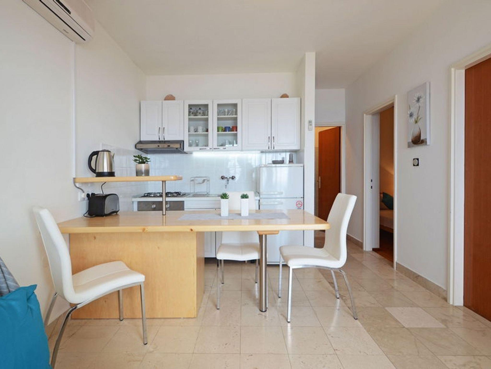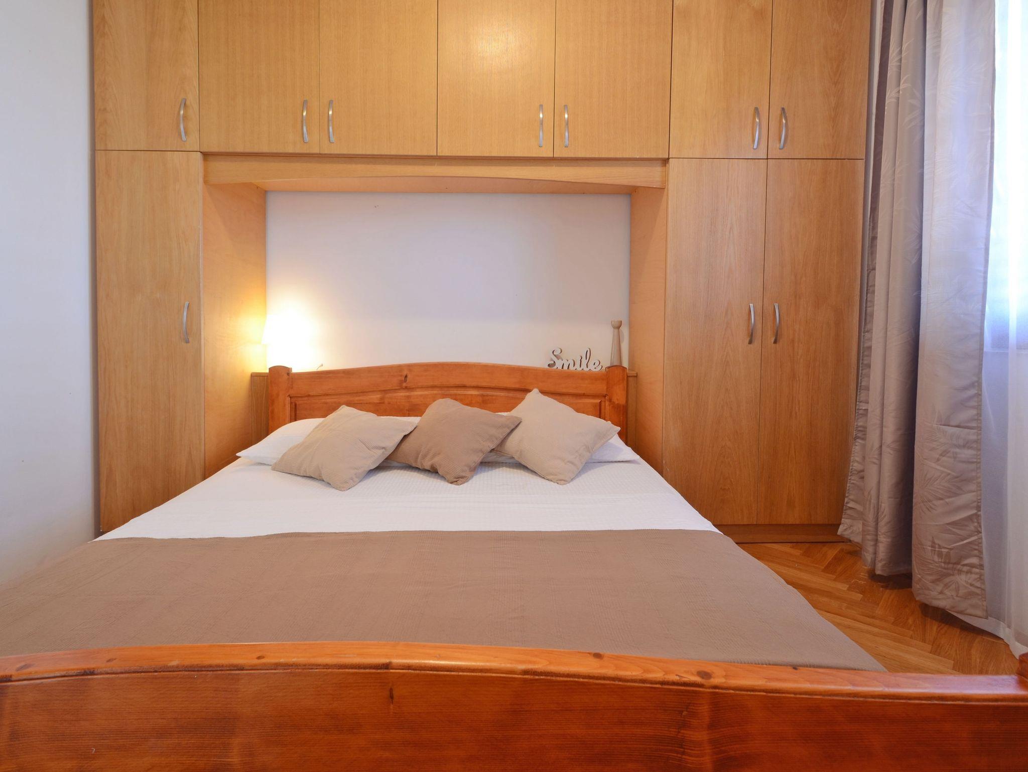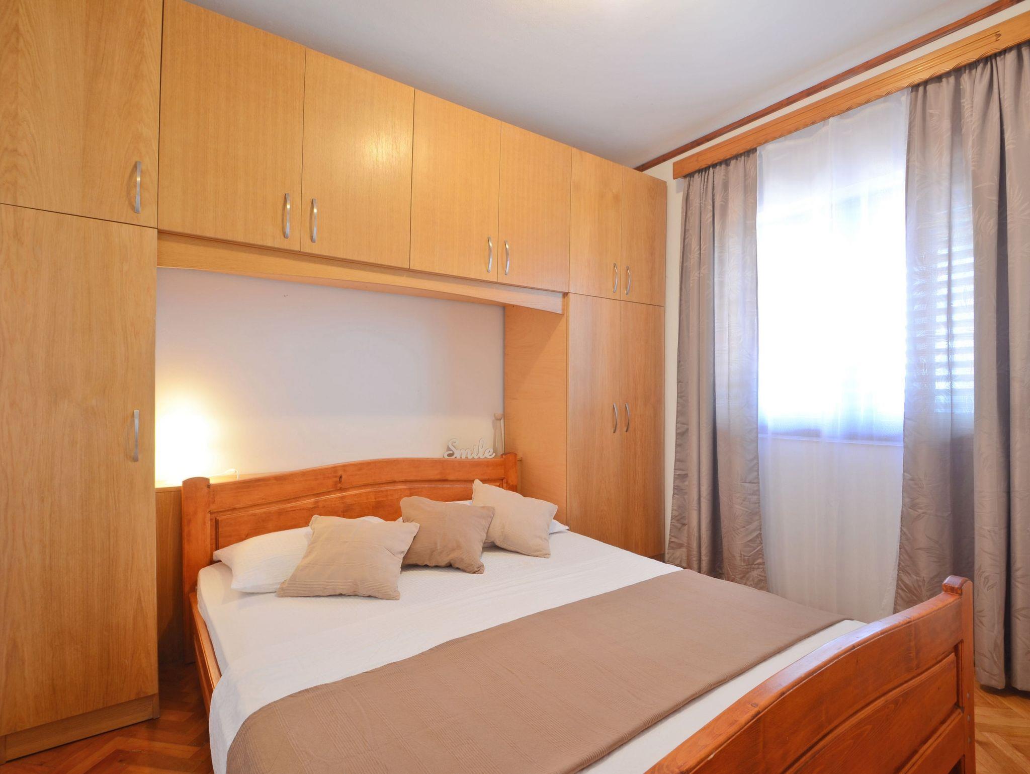Ferienwohnung bietet Platz für 5 Gäste. Die Betten sind in Schlafzimmern, die es 2 gibt, und in Wohnzimmer, innerhalb einer Gesamtfläche von 43m2, angeordnet. Die Gäste haben eine eigene Terrasse zur Verfügung, auf der sie in warmen Sommernächten genießen können. Das Apartment bietet Meerblick. Für vollen Genuss und Entspannung gibt es einen privaten Grill für Gäste dieser Unterkunft. In der Unterkunftseinheit besteht die Möglichkeit des Mitbringens von Haustieren gegen Aufpreis. IM PREIS INBEGRIFFEN: Kurtaxe, Endreinigung, Klimatisierung, Parkplatz, Internet, Bootsanlegeplatz, Kinderbett, Bügeleisen, Bügelbrett, Föhn, Liegestühle. VERBINDLICHE ZUSÄTZLICHE KOSTEN: Aufzahlung für Kurzaufenthalte (prozentualer Zuschlag pro Nächtigungsanzahl: 30% - 1, 20% - 2, 10% - 3). UNVERBINDLICHE ZUSÄTZLICHE KOSTEN: Haustiere (10,00 € pro Nacht). Die Verfügbarkeit zusätzlicher Dienstleistungen in Ihrem reservierten Termin und die Preise derselben (falls nicht aufgeführt) müssen im Voraus überprüft werden. Zusätzliche Dienstleistungen die in der Zahlungsaufforderung nicht aufgeführt sind werden direkt beim Vermieter bezahlt, angenommen der Gast nutzt auch diese. Ermäßigung auf den Grundpreis: Gratistag 28=25 (bei einem Aufenthalt von 28 oder mehr Tagen erhalten Sie 3 kostenlose Tage für den Aufenthalt bis 31.12.26).