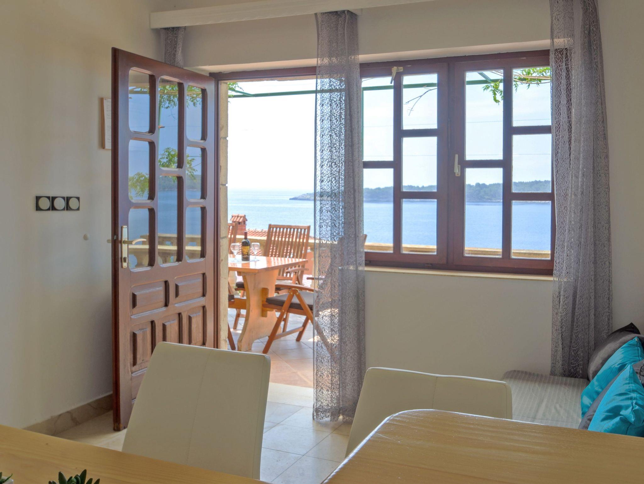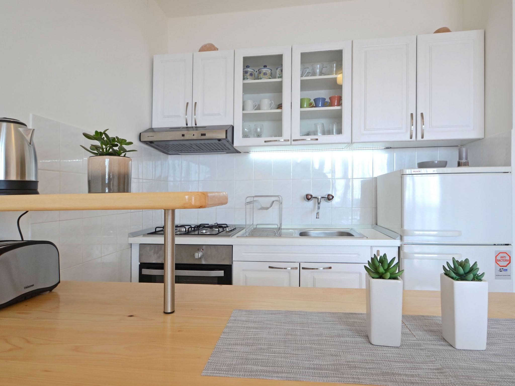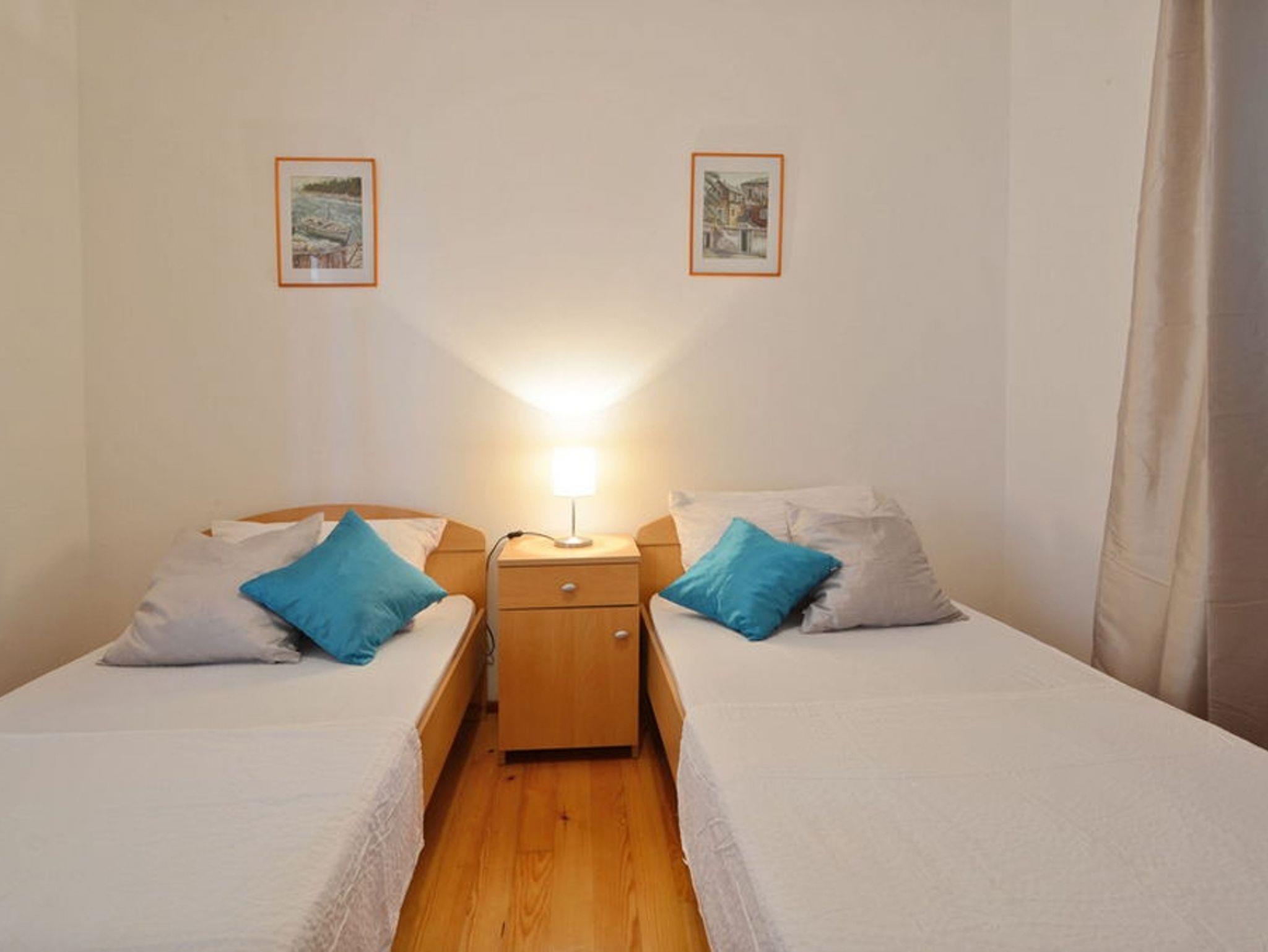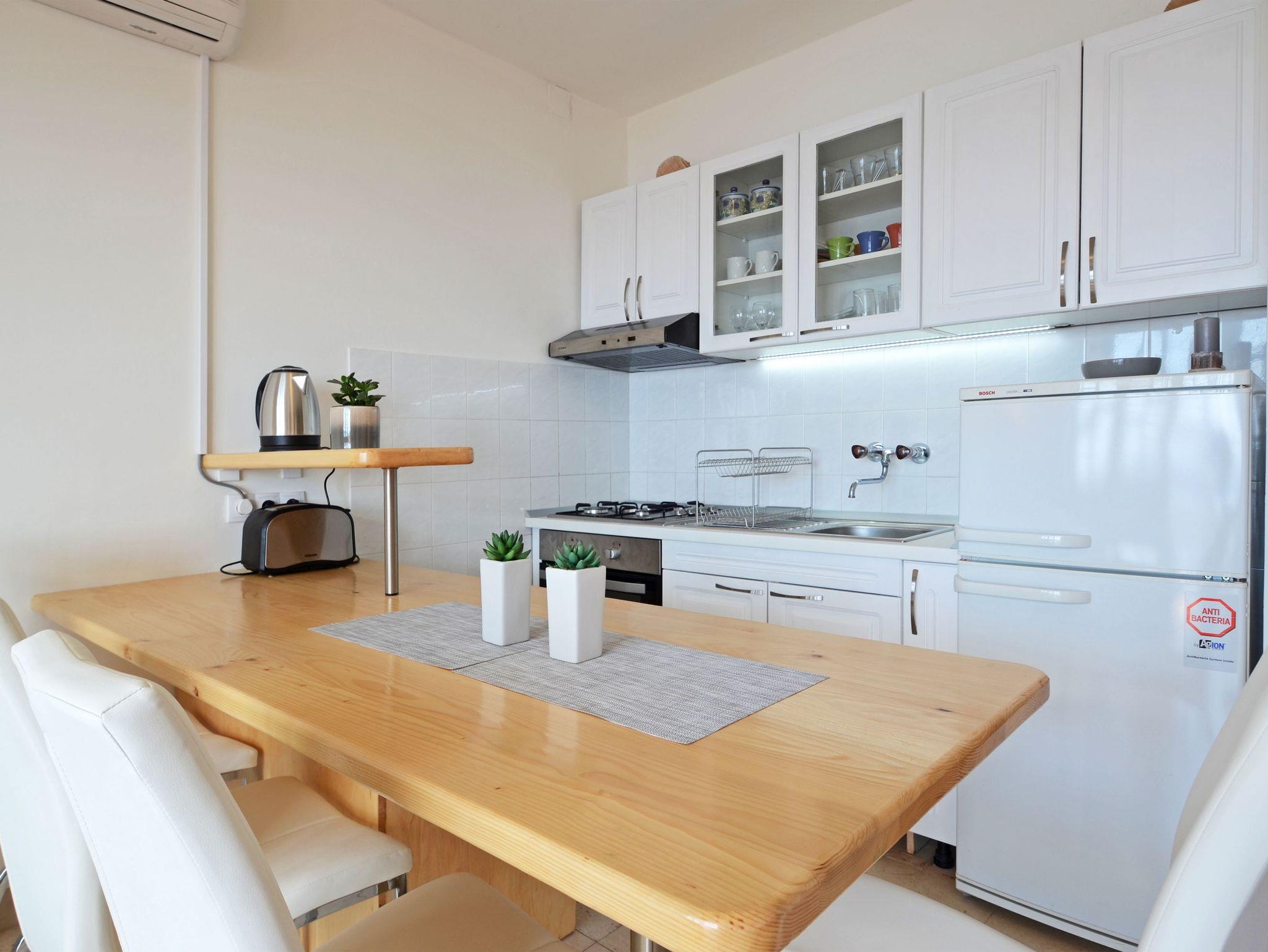 Ferienwohnung bietet Platz für 5 Gäste. Die Betten sind in Schlafzimmern, die es 2 gibt, und in Wohnzimmer, innerhalb einer Gesamtfläche von 43m2, angeordnet. Die Gäste haben eine eigene Terrasse zur Verfügung, auf der sie in warmen Sommernächten genießen können. Das Apartment bietet Meerblick. Für vollen Genuss und Entspannung gibt es einen privaten Grill für Gäste dieser Unterkunft. In der Unterkunftseinheit besteht die Möglichkeit des Mitbringens von Haustieren gegen Aufpreis. IM PREIS INBEGRIFFEN: Kurtaxe, Endreinigung, Klimatisierung, Parkplatz, Internet, Bootsanlegeplatz, Kinderbett, Bügeleisen, Bügelbrett, Föhn, Liegestühle. VERBINDLICHE ZUSÄTZLICHE KOSTEN: Aufzahlung für Kurzaufenthalte (prozentualer Zuschlag pro Nächtigungsanzahl: 30% - 1, 20% - 2, 10% - 3). UNVERBINDLICHE ZUSÄTZLICHE KOSTEN: Haustiere (10,00 € pro Nacht). Die Verfügbarkeit zusätzlicher Dienstleistungen in Ihrem reservierten Termin und die Preise derselben (falls nicht aufgeführt) müssen im Voraus überprüft werden. Zusätzliche Dienstleistungen die in der Zahlungsaufforderung nicht aufgeführt sind werden direkt beim Vermieter bezahlt, angenommen der Gast nutzt auch diese. Ermäßigung auf den Grundpreis: Gratistag 28=25 (bei einem Aufenthalt von 28 oder mehr Tagen erhalten Sie 3 kostenlose Tage für den Aufenthalt bis 31.12.26).