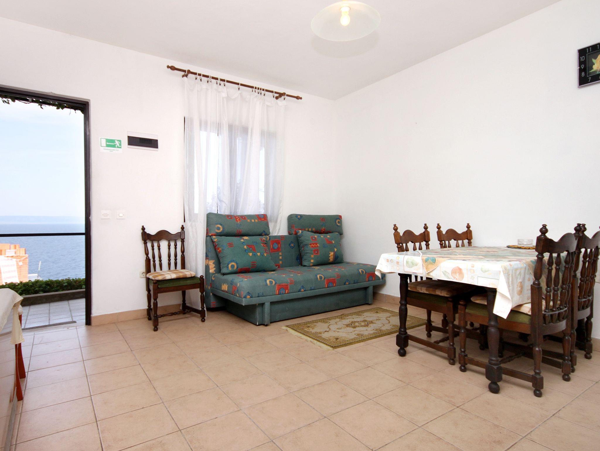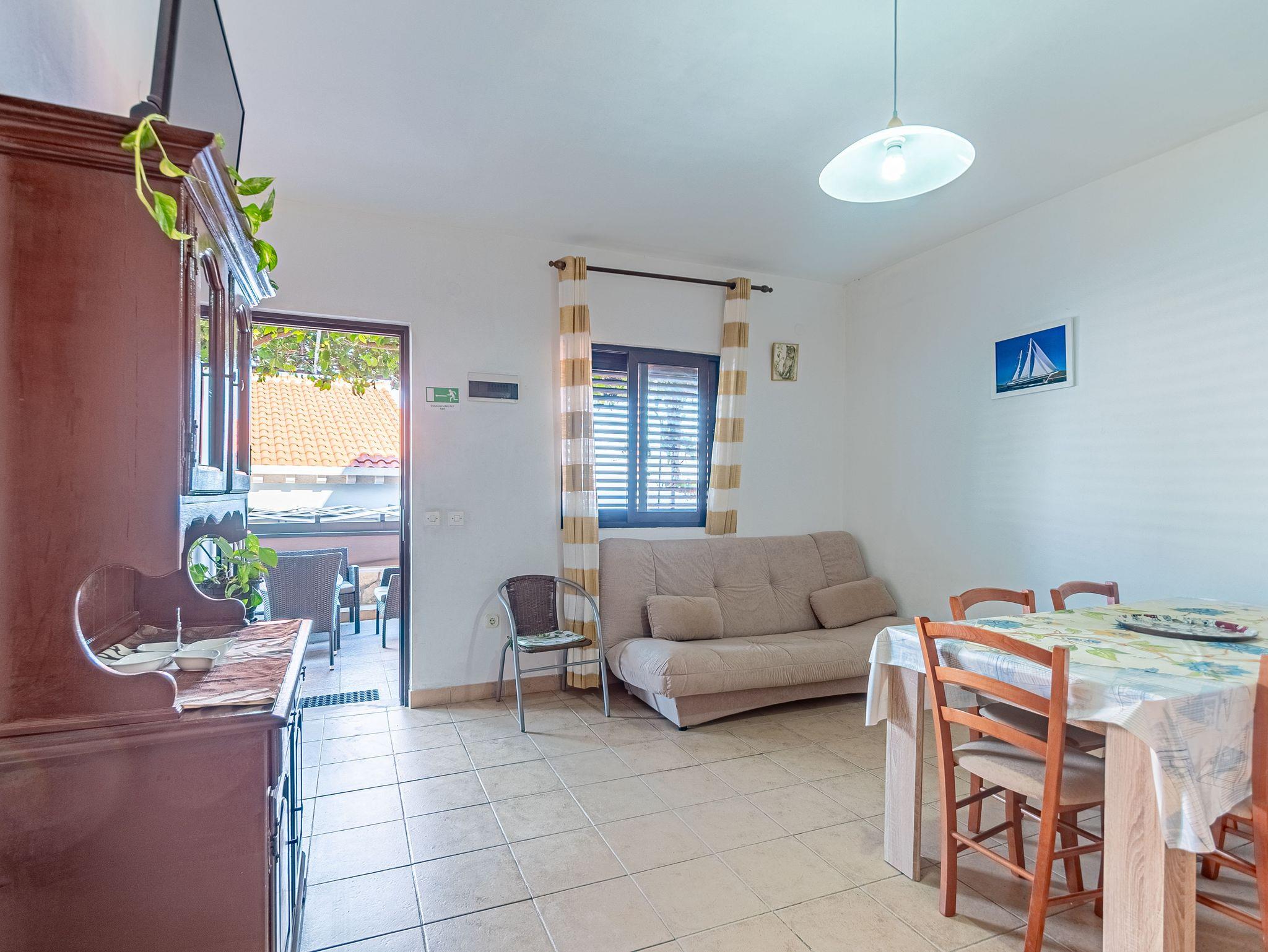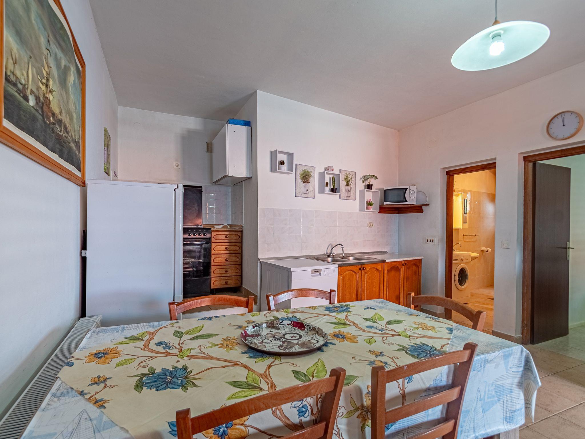 Ferienwohnung bietet Platz für 4 Gäste. Die Betten sind in Schlafzimmern, die es 1 gibt, und in Esszimmer, innerhalb einer Gesamtfläche von 38m2, angeordnet. Die Gäste haben eine eigene Terrasse zur Verfügung, auf der sie in warmen Sommernächten genießen können. Das Apartment bietet Meerblick. In der Unterkunftseinheit besteht die Möglichkeit des Mitbringens von Haustieren gegen Aufpreis. IM PREIS INBEGRIFFEN: Kurtaxe, Endreinigung, Klimatisierung, Parkplatz, Internet, Kinderbett, Bügeleisen, Bügelbrett, Föhn, Sonnenschirm. VERBINDLICHE ZUSÄTZLICHE KOSTEN: Aufzahlung für Kurzaufenthalte (prozentualer Zuschlag pro Nächtigungsanzahl: 30% - 1, 20% - 2, 10% - 3). UNVERBINDLICHE ZUSÄTZLICHE KOSTEN: Zentralheizung (10,00 € pro Nacht), Haustiere (8,00 € pro Nacht). Die Verfügbarkeit zusätzlicher Dienstleistungen in Ihrem reservierten Termin und die Preise derselben (falls nicht aufgeführt) müssen im Voraus überprüft werden. Zusätzliche Dienstleistungen die in der Zahlungsaufforderung nicht aufgeführt sind werden direkt beim Vermieter bezahlt, angenommen der Gast nutzt auch diese. Ermäßigung auf den Grundpreis: Gratistag 28=25 (bei einem Aufenthalt von 28 oder mehr Tagen erhalten Sie 3 kostenlose Tage für den Aufenthalt bis 31.12.26).