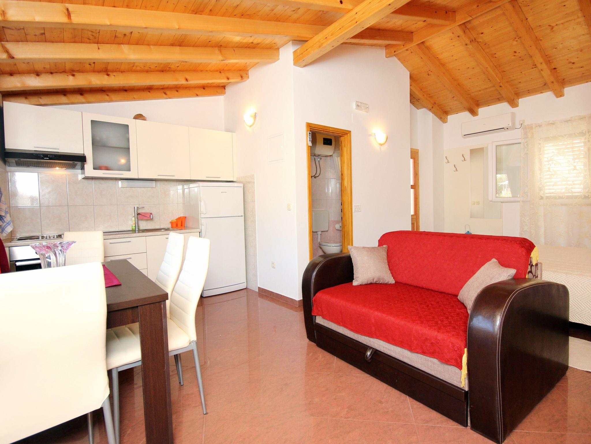 Studio bietet Platz für 2 Gäste. Die Betten sind in Schlafzimmern, die es 1 gibt, innerhalb einer Gesamtfläche von 27m2, angeordnet. Die Gäste haben einen eigenen Balkon zur Verfügung, auf der sie in warmen Sommernächten genießen können. Es ist erlaubt, Speisen auf dem Gemeinschafts-Grill vorzubereiten. IM PREIS INBEGRIFFEN: Kurtaxe, Endreinigung, Klimatisierung, Internet, Bootsanlegeplatz, Bügeleisen, Bügelbrett, Föhn, tragbarer Grill. VERBINDLICHE ZUSÄTZLICHE KOSTEN: Aufzahlung für Kurzaufenthalte (prozentualer Zuschlag pro Nächtigungsanzahl: 30% - 1, 20% - 2, 10% - 3). Die Verfügbarkeit zusätzlicher Dienstleistungen in Ihrem reservierten Termin und die Preise derselben (falls nicht aufgeführt) müssen im Voraus überprüft werden. Zusätzliche Dienstleistungen die in der Zahlungsaufforderung nicht aufgeführt sind werden direkt beim Vermieter bezahlt, angenommen der Gast nutzt auch diese.