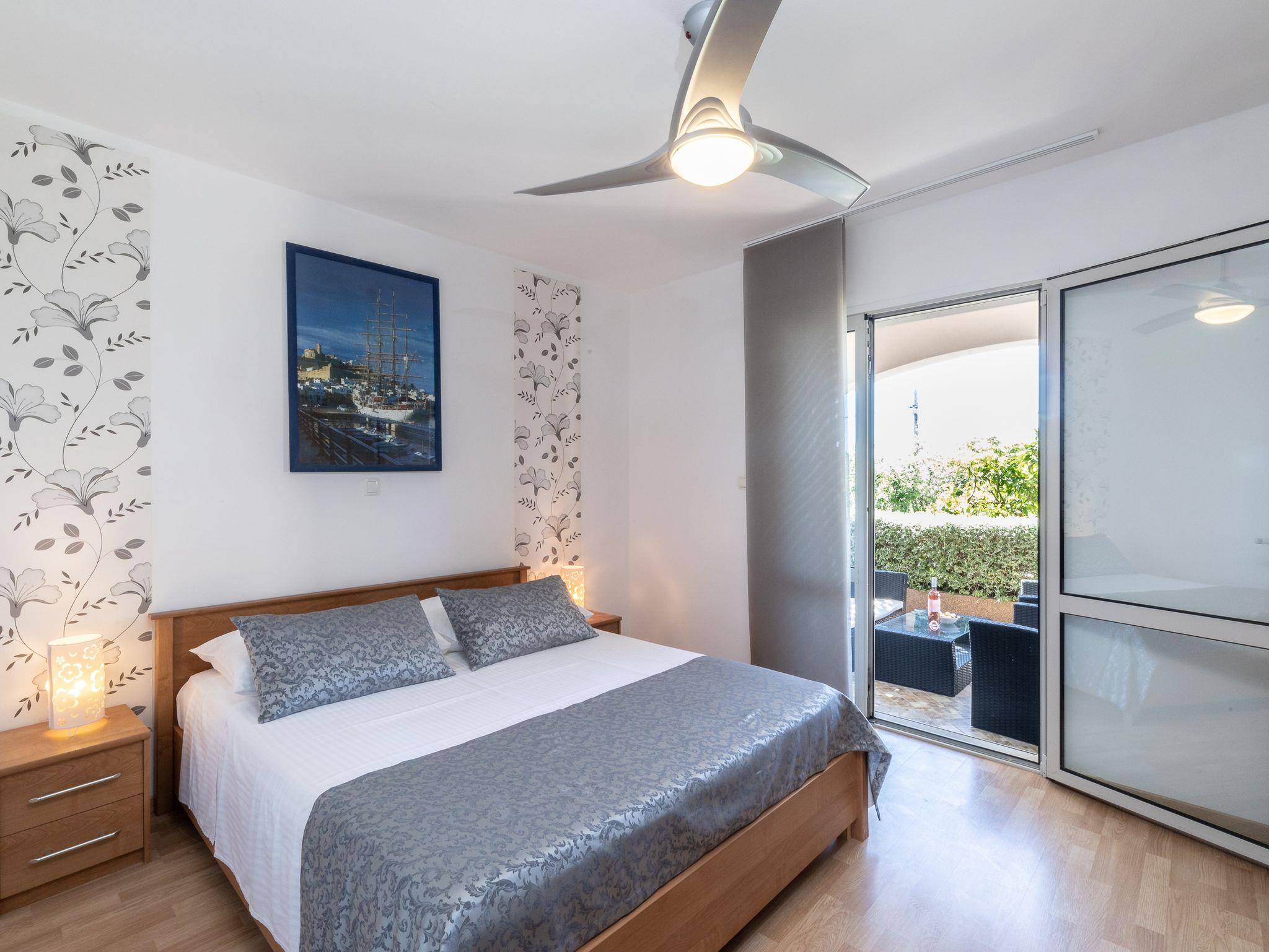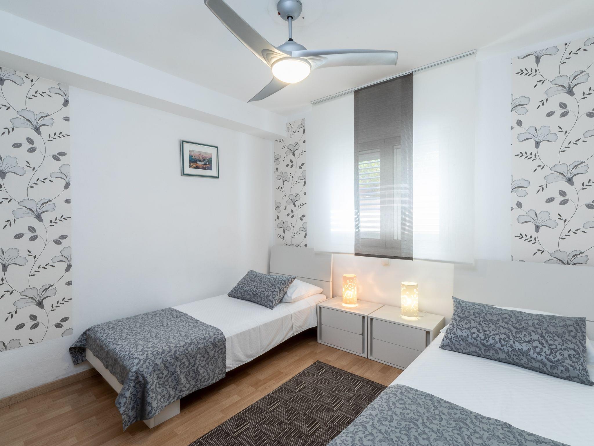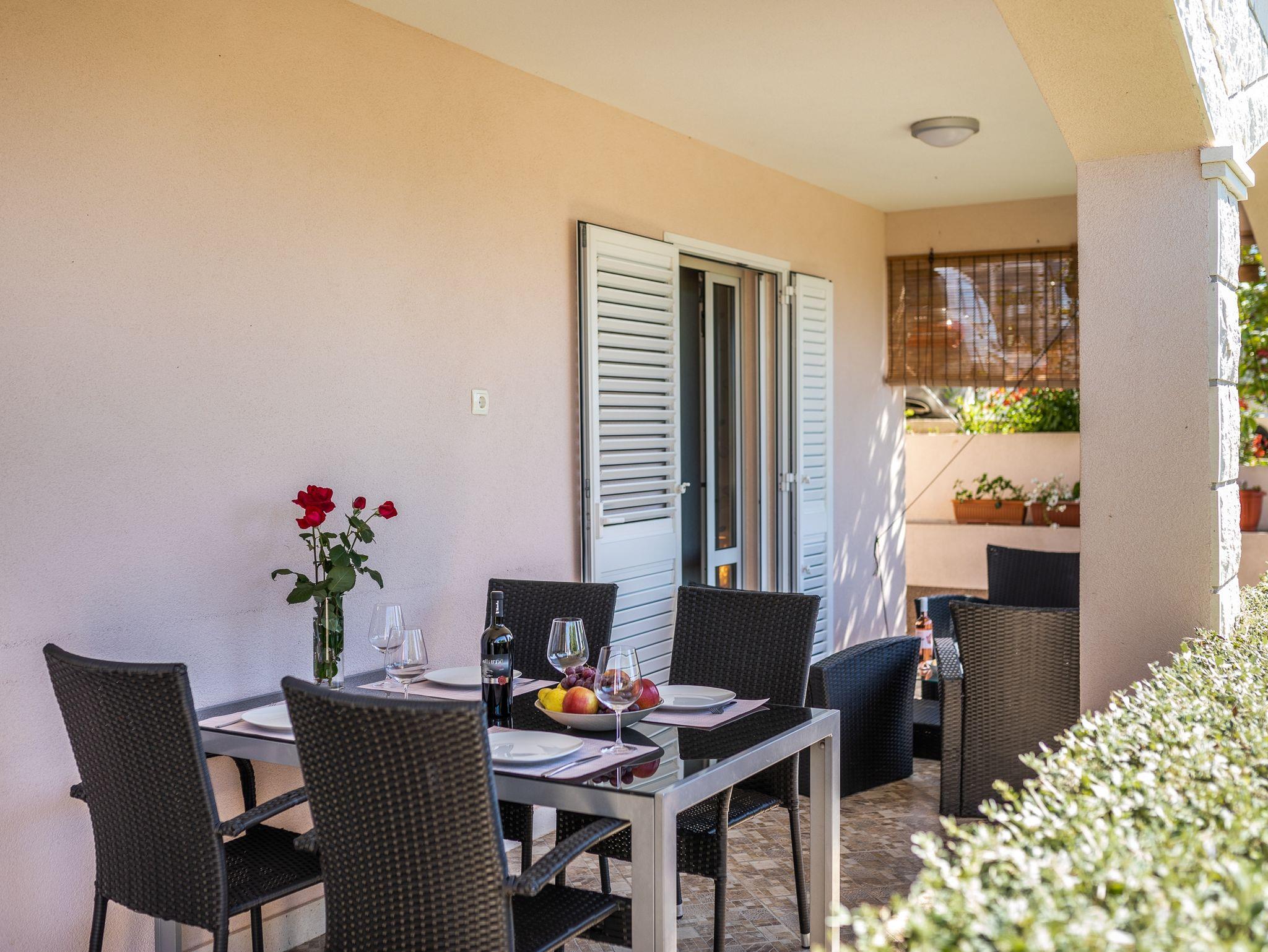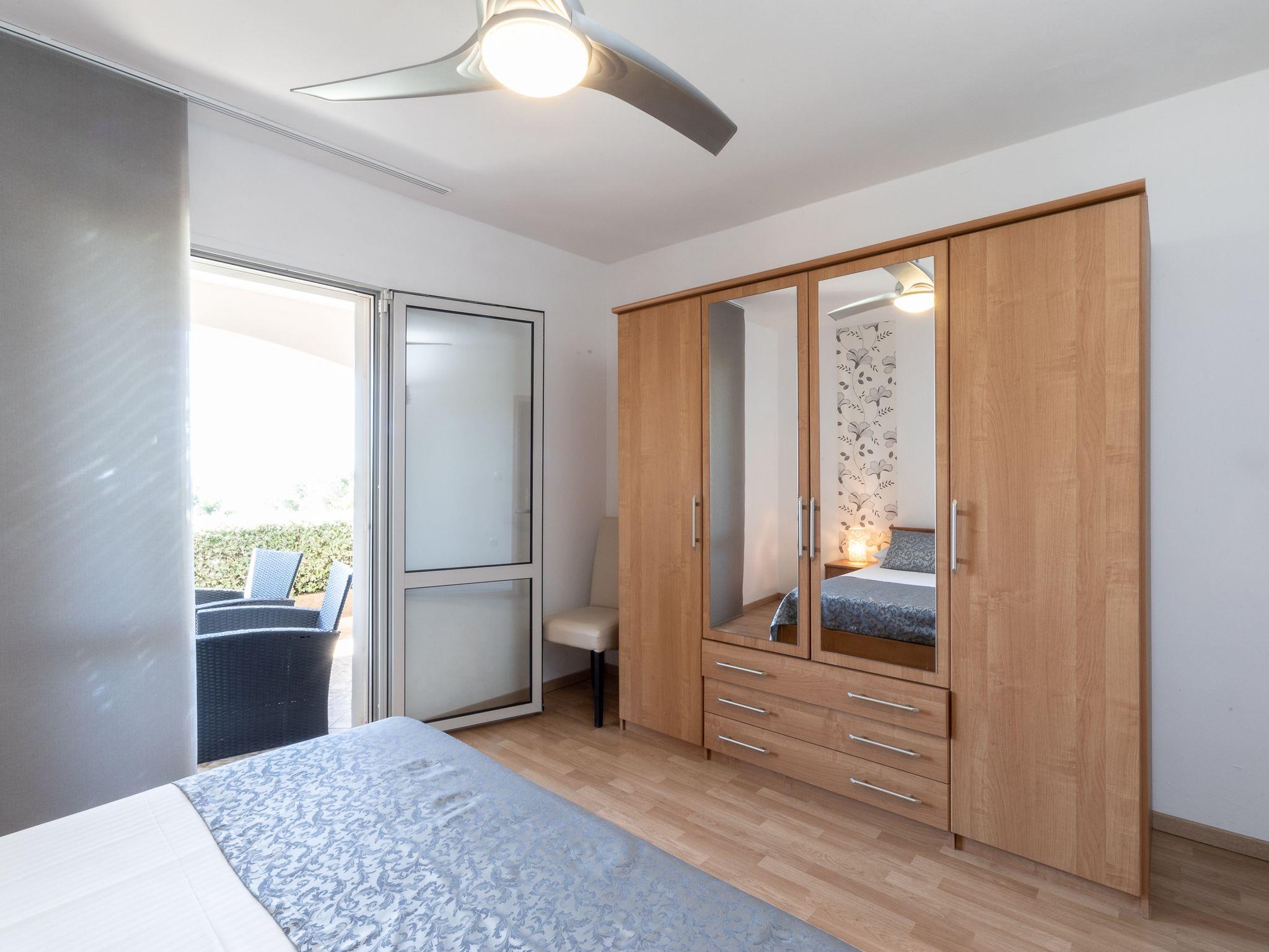 Ferienwohnung bietet Platz für 5 Gäste. Die Betten sind in Schlafzimmern, die es 2 gibt, und in Wohnzimmer, innerhalb einer Gesamtfläche von 65m2, angeordnet. Die Gäste haben eine eigene Terrasse zur Verfügung, auf der sie in warmen Sommernächten genießen können. Das Apartment bietet Meerblick. Es ist erlaubt, Speisen auf dem Gemeinschafts-Grill vorzubereiten. Während ihres Aufenthalts können Gäste das gemeinsam zur Nutzung stehende Schwimmbad benutzen. In der gebuchten Unterkunftseinheit zahlt man am Ort ein Depositum ( der Preis ist an der Internetseite angeführt ). IM PREIS INBEGRIFFEN: Kurtaxe, Endreinigung, Klimatisierung, Pool, Parkplatz, Internet, Kinderbett, Bügeleisen, Bügelbrett, Föhn. VERBINDLICHE ZUSÄTZLICHE KOSTEN: Kaution (50,00 € Einmalzahlung). Die Verfügbarkeit zusätzlicher Dienstleistungen in Ihrem reservierten Termin und die Preise derselben (falls nicht aufgeführt) müssen im Voraus überprüft werden. Zusätzliche Dienstleistungen die in der Zahlungsaufforderung nicht aufgeführt sind werden direkt beim Vermieter bezahlt, angenommen der Gast nutzt auch diese. Ermäßigung auf den Grundpreis: Gratistag 14=13 (bei einem Aufenthalt von 14 Tagen oder mehr erhalten Sie einen Gratistag für den Aufenthalt bis 31.12.26).