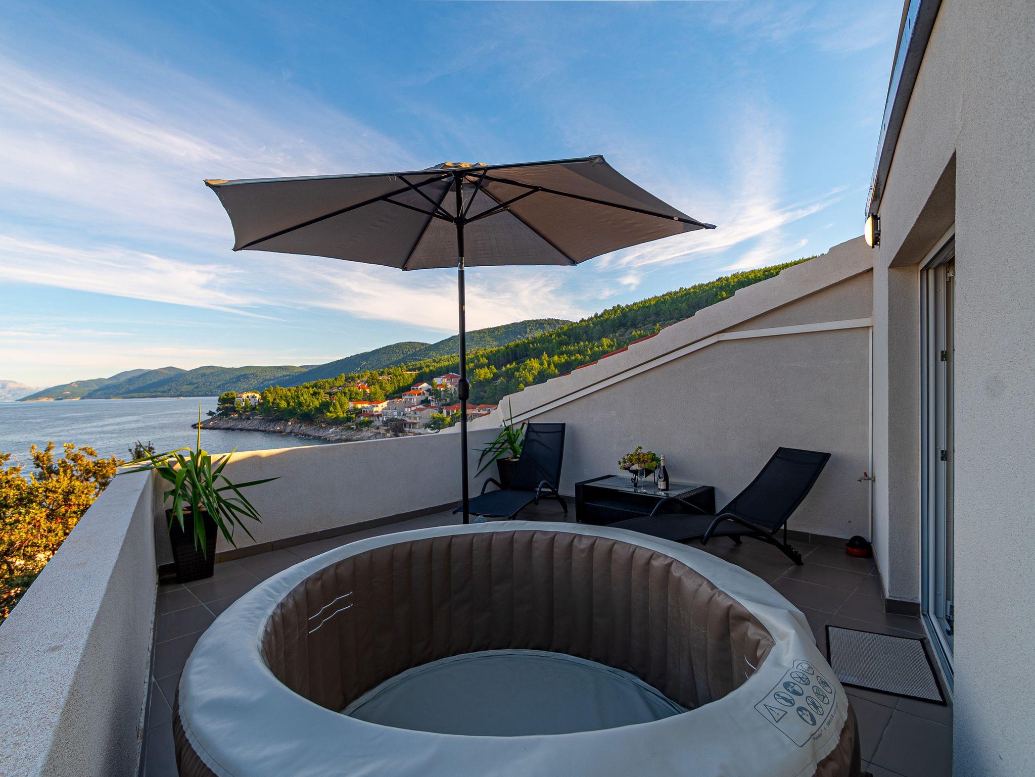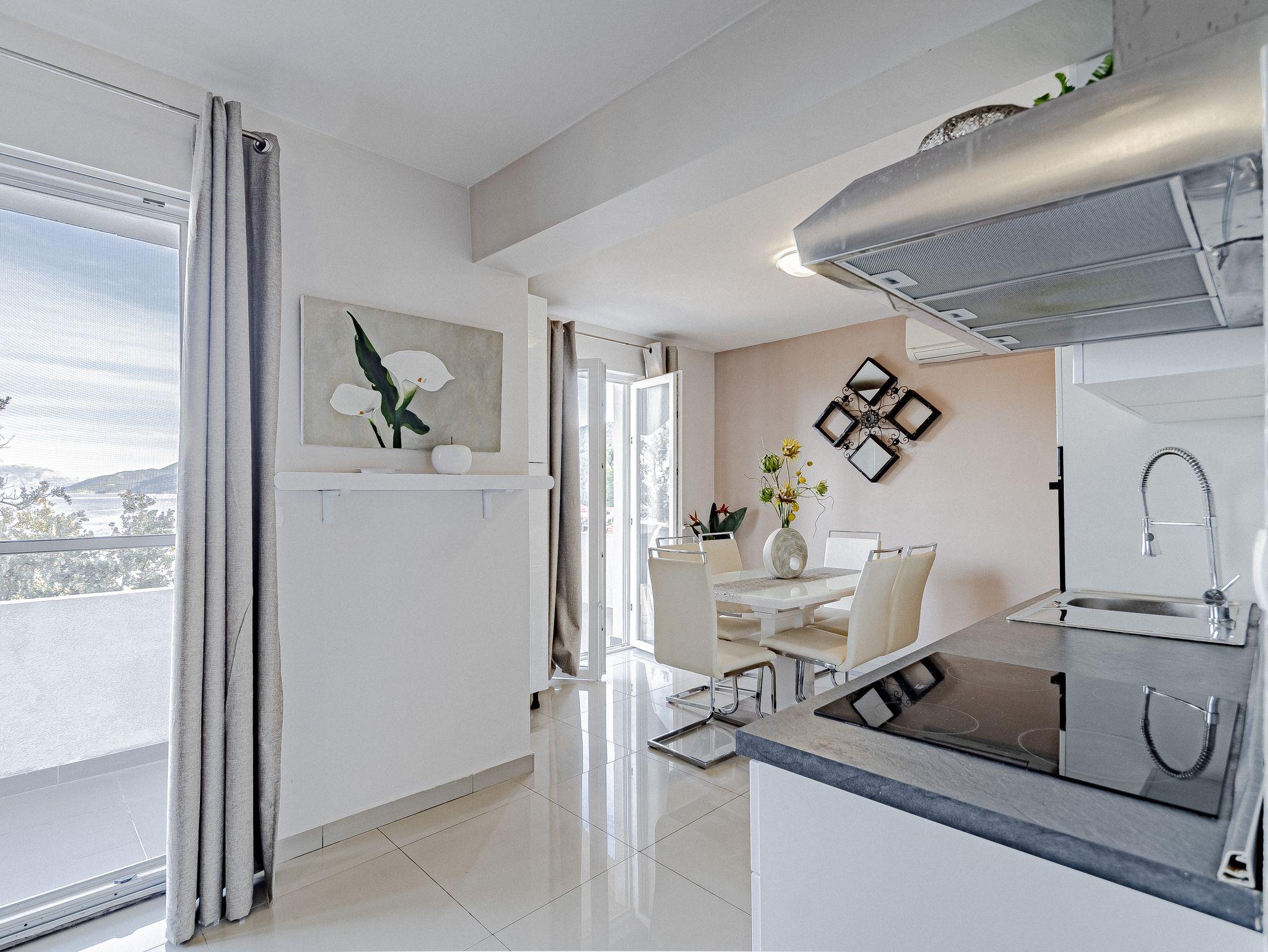 Haus bietet Platz für 6 Gäste. Die Betten sind in Schlafzimmern, die es 3 gibt, innerhalb einer Gesamtfläche von 94m2, angeordnet. Die Gäste haben eine eigene Terrasse zur Verfügung, auf der sie in warmen Sommernächten genießen können. Das Haus bietet Meerblick. Es ist erlaubt, Speisen auf dem Gemeinschafts-Grill vorzubereiten. In der Unterkunftseinheit besteht die Möglichkeit des Mitbringens von Haustieren, und die Dienstleistung ist im Preis der Unterkunft enthalten. IM PREIS INBEGRIFFEN: Kurtaxe, Endreinigung, Klimatisierung, Parkplatz, Internet, Wäschewaschen, Haustiere, Kinderbett, Bügeleisen, Bügelbrett, Föhn, tragbarer Grill, Sonnenschirm, Liegestühle. VERBINDLICHE ZUSÄTZLICHE KOSTEN: Aufzahlung für Kurzaufenthalte (prozentualer Zuschlag pro Nächtigungsanzahl: 30% - 1, 20% - 2, 10% - 3). Die Verfügbarkeit zusätzlicher Dienstleistungen in Ihrem reservierten Termin und die Preise derselben (falls nicht aufgeführt) müssen im Voraus überprüft werden. Zusätzliche Dienstleistungen die in der Zahlungsaufforderung nicht aufgeführt sind werden direkt beim Vermieter bezahlt, angenommen der Gast nutzt auch diese.