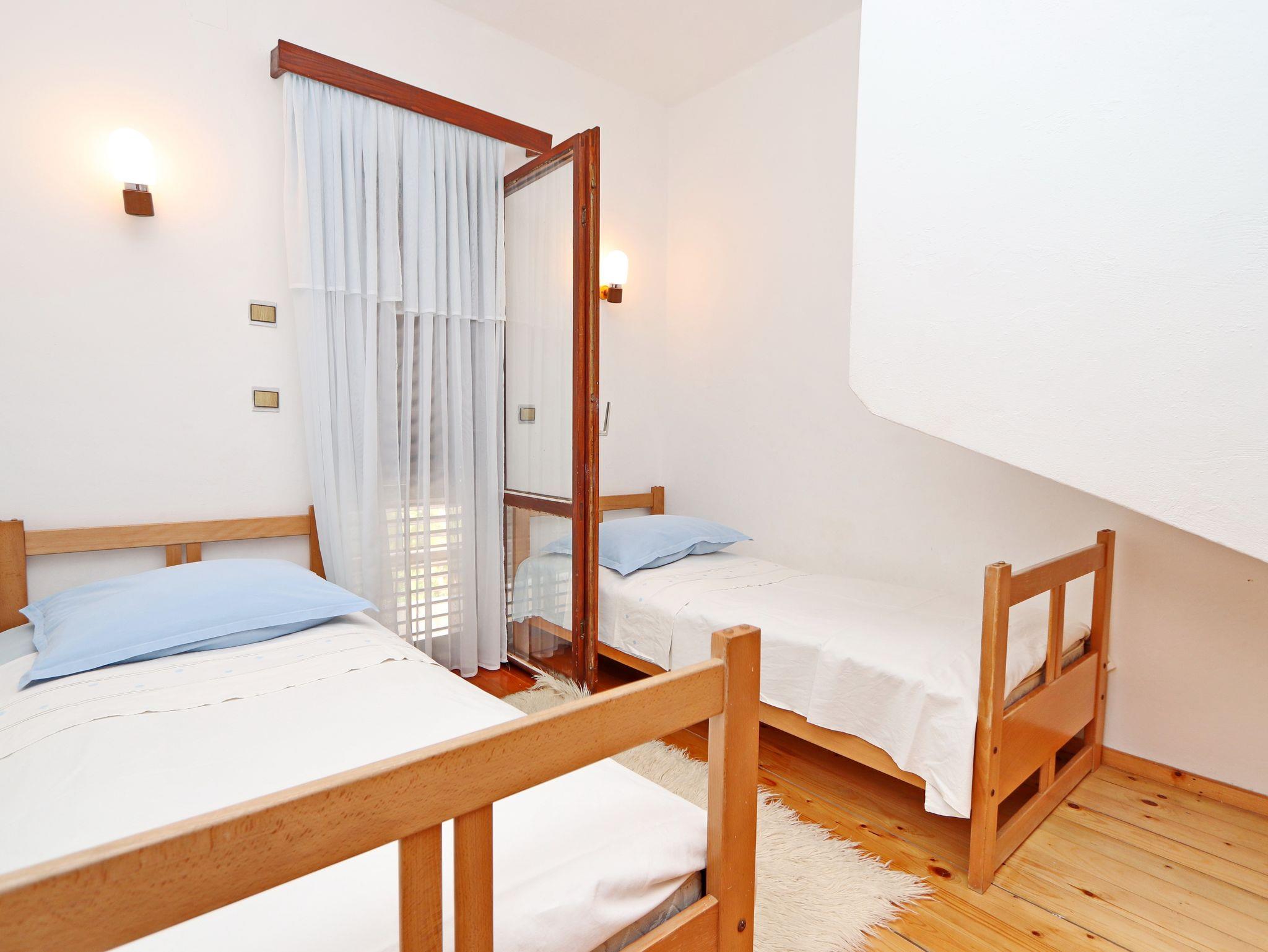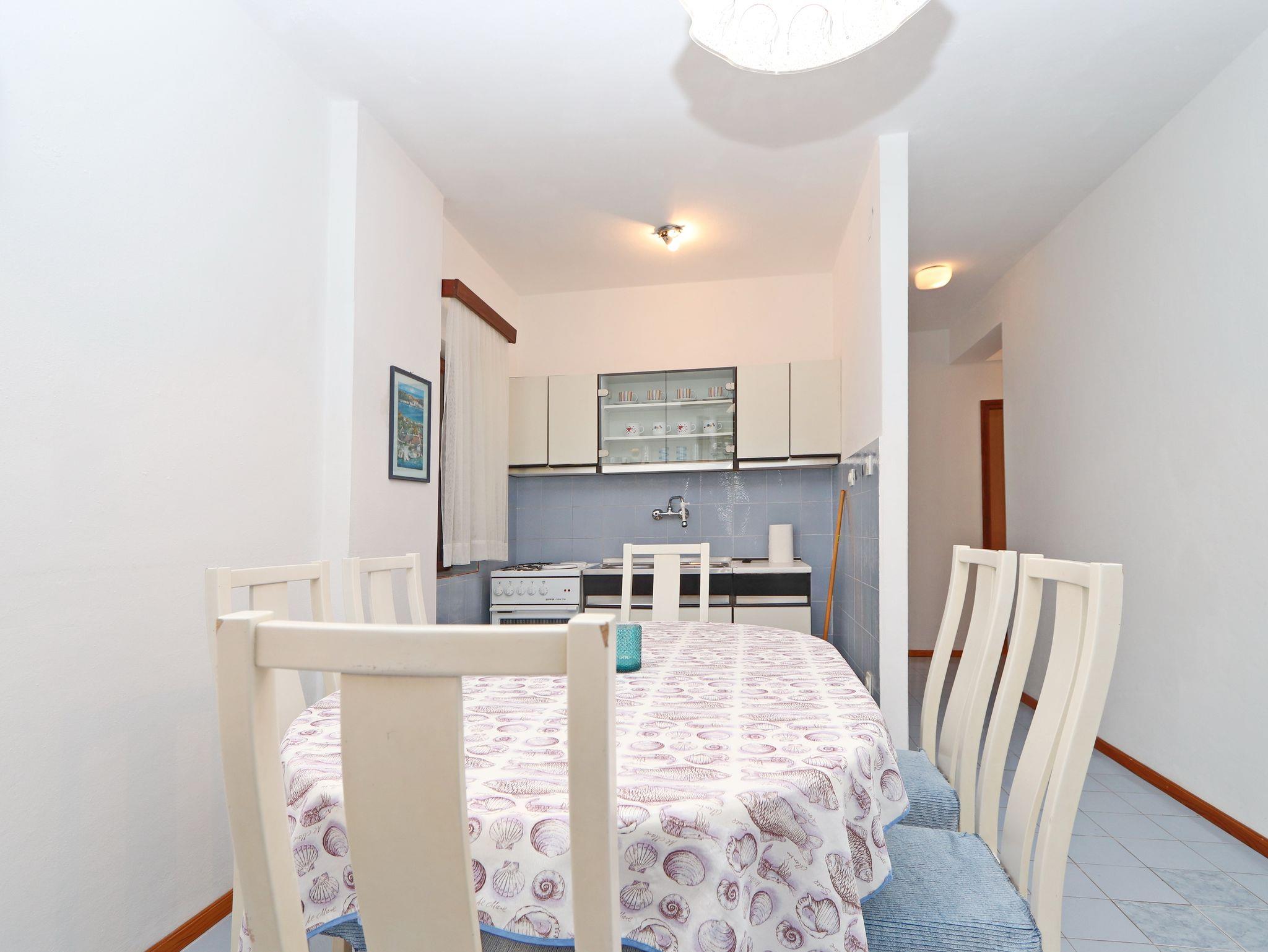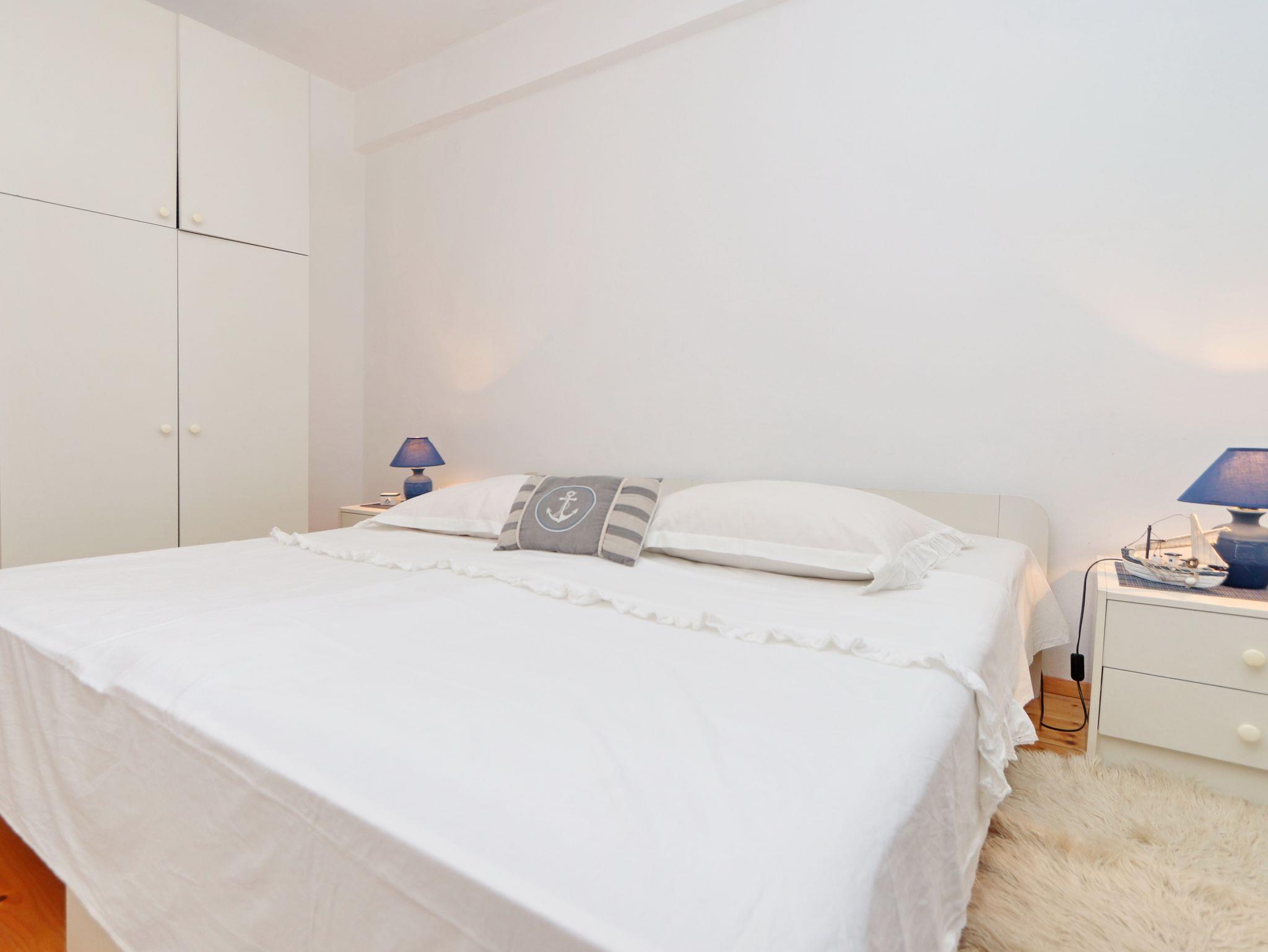 Ferienwohnung bietet Platz für 4 Gäste. Die Betten sind in Schlafzimmern, die es 2 gibt, innerhalb einer Gesamtfläche von 46m2, angeordnet. Die Gäste haben eine eigene Terrasse zur Verfügung, auf der sie in warmen Sommernächten genießen können. Das Apartment bietet Meerblick. Es ist erlaubt, Speisen auf dem Gemeinschafts-Grill vorzubereiten. In der Unterkunftseinheit besteht die Möglichkeit des Mitbringens von Haustieren gegen Aufpreis. IM PREIS INBEGRIFFEN: Kurtaxe, Endreinigung, Parkplatz, Internet, Bootsanlegeplatz, Bügeleisen. UNVERBINDLICHE ZUSÄTZLICHE KOSTEN: Haustiere (5,00 € pro Nacht). Die Verfügbarkeit zusätzlicher Dienstleistungen in Ihrem reservierten Termin und die Preise derselben (falls nicht aufgeführt) müssen im Voraus überprüft werden. Zusätzliche Dienstleistungen die in der Zahlungsaufforderung nicht aufgeführt sind werden direkt beim Vermieter bezahlt, angenommen der Gast nutzt auch diese.