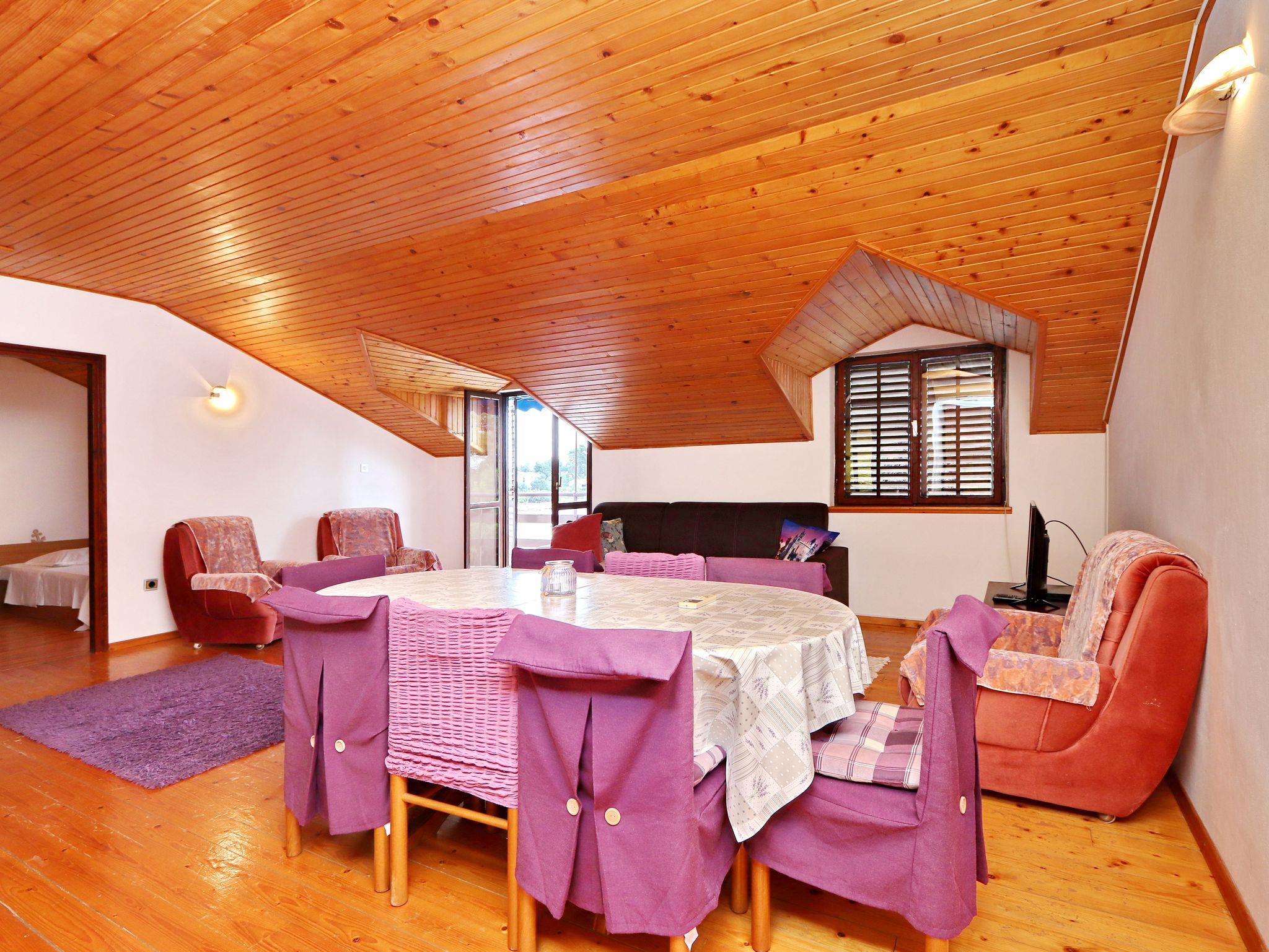 Ferienwohnung bietet Platz für 7 Gäste. Die Betten sind in Schlafzimmern, die es 3 gibt, und in Wohnzimmer, innerhalb einer Gesamtfläche von 71m2, angeordnet. Die Gäste haben eine eigene Terrasse zur Verfügung, auf der sie in warmen Sommernächten genießen können. Das Apartment bietet Meerblick. Es ist erlaubt, Speisen auf dem Gemeinschafts-Grill vorzubereiten. In der Unterkunftseinheit besteht die Möglichkeit des Mitbringens von Haustieren gegen Aufpreis. IM PREIS INBEGRIFFEN: Kurtaxe, Endreinigung, Klimatisierung, Parkplatz, Internet, Bootsanlegeplatz, Bügeleisen. UNVERBINDLICHE ZUSÄTZLICHE KOSTEN: Haustiere (5,00 € pro Nacht). Die Verfügbarkeit zusätzlicher Dienstleistungen in Ihrem reservierten Termin und die Preise derselben (falls nicht aufgeführt) müssen im Voraus überprüft werden. Zusätzliche Dienstleistungen die in der Zahlungsaufforderung nicht aufgeführt sind werden direkt beim Vermieter bezahlt, angenommen der Gast nutzt auch diese.