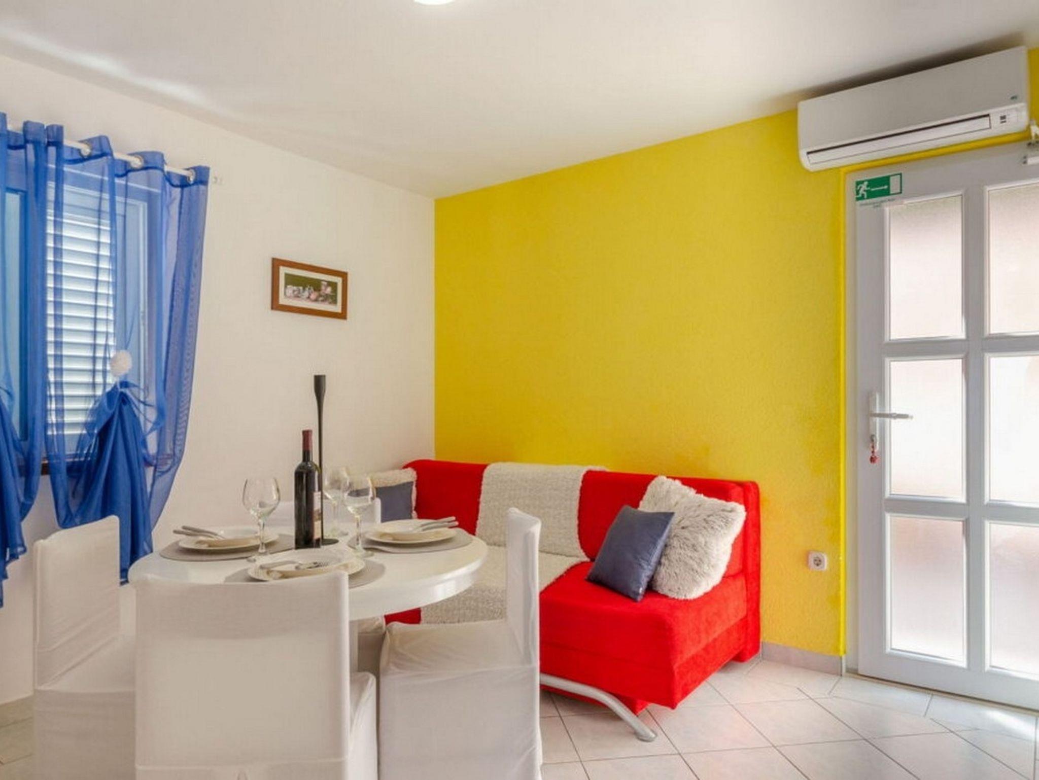 Ferienwohnung bietet Platz für 4 Gäste. Die Betten sind in Schlafzimmern, die es 1 gibt, und in Wohnzimmer, innerhalb einer Gesamtfläche von 35m2, angeordnet. Die Gäste haben einen eigenen Balkon zur Verfügung, auf der sie in warmen Sommernächten genießen können. Das Apartment bietet Meerblick. Es ist erlaubt, Speisen auf dem Gemeinschafts-Grill vorzubereiten. IM PREIS INBEGRIFFEN: Kurtaxe, Endreinigung, Klimatisierung, Parkplatz, Internet, Wäschewaschen, Kinderbett, Bügeleisen, Bügelbrett, Föhn. Die Verfügbarkeit zusätzlicher Dienstleistungen in Ihrem reservierten Termin und die Preise derselben (falls nicht aufgeführt) müssen im Voraus überprüft werden. Zusätzliche Dienstleistungen die in der Zahlungsaufforderung nicht aufgeführt sind werden direkt beim Vermieter bezahlt, angenommen der Gast nutzt auch diese.