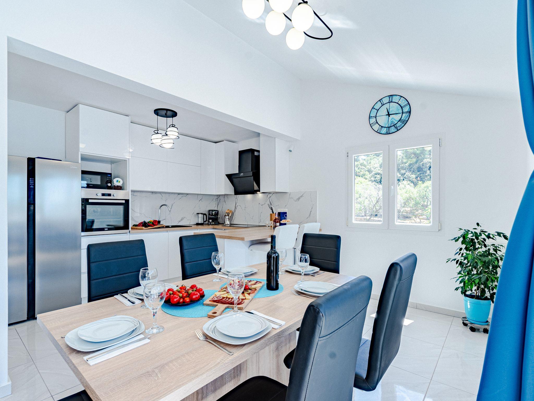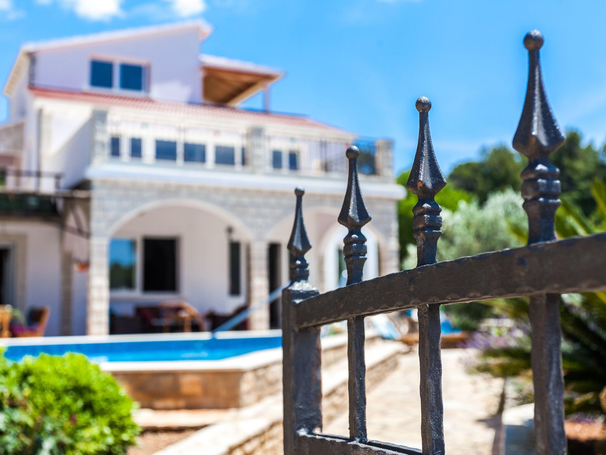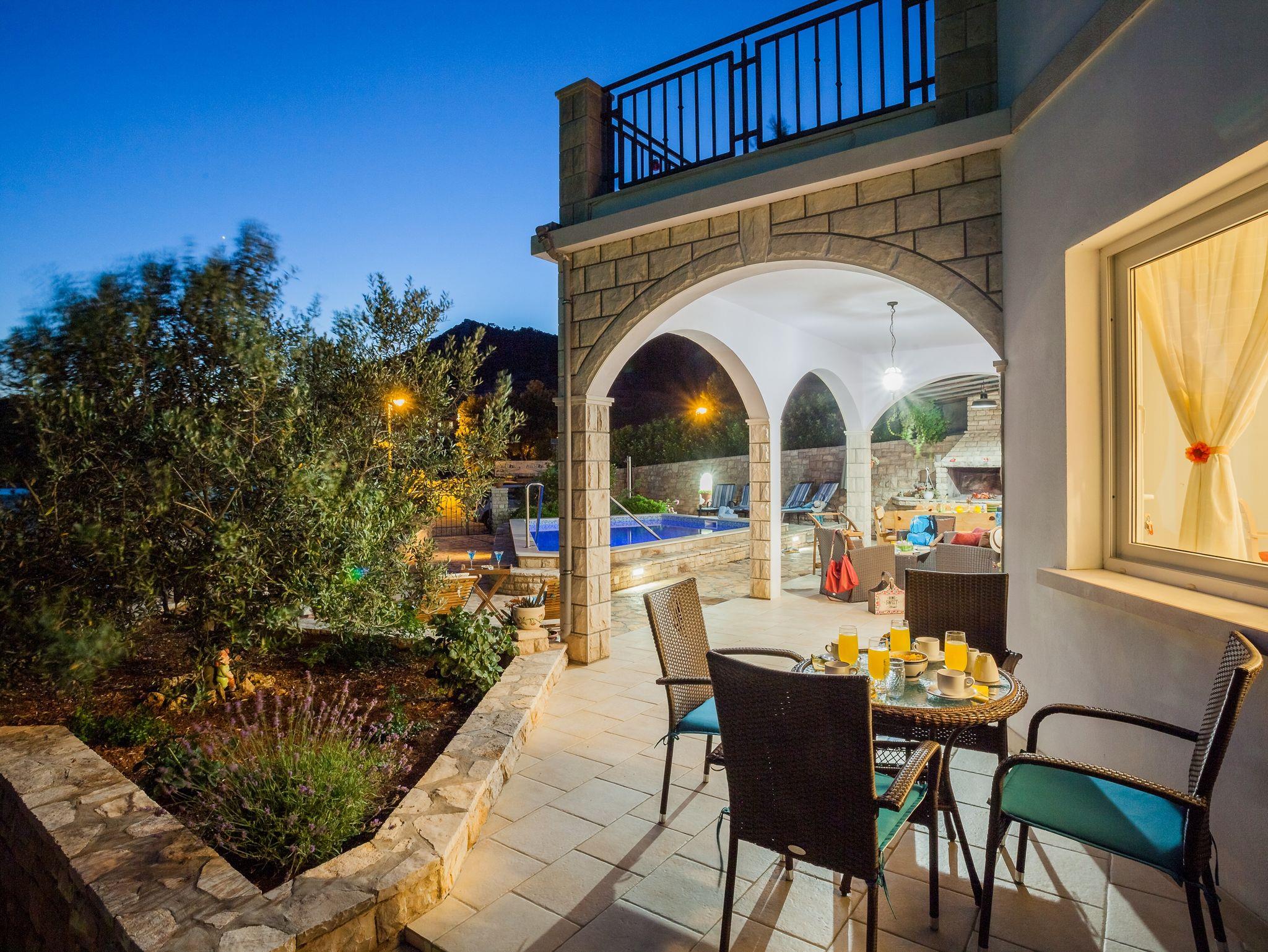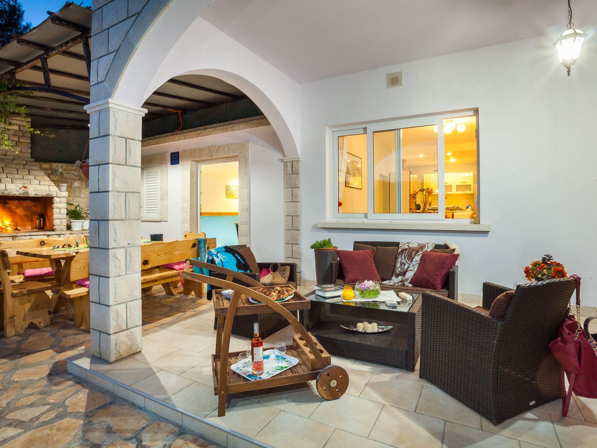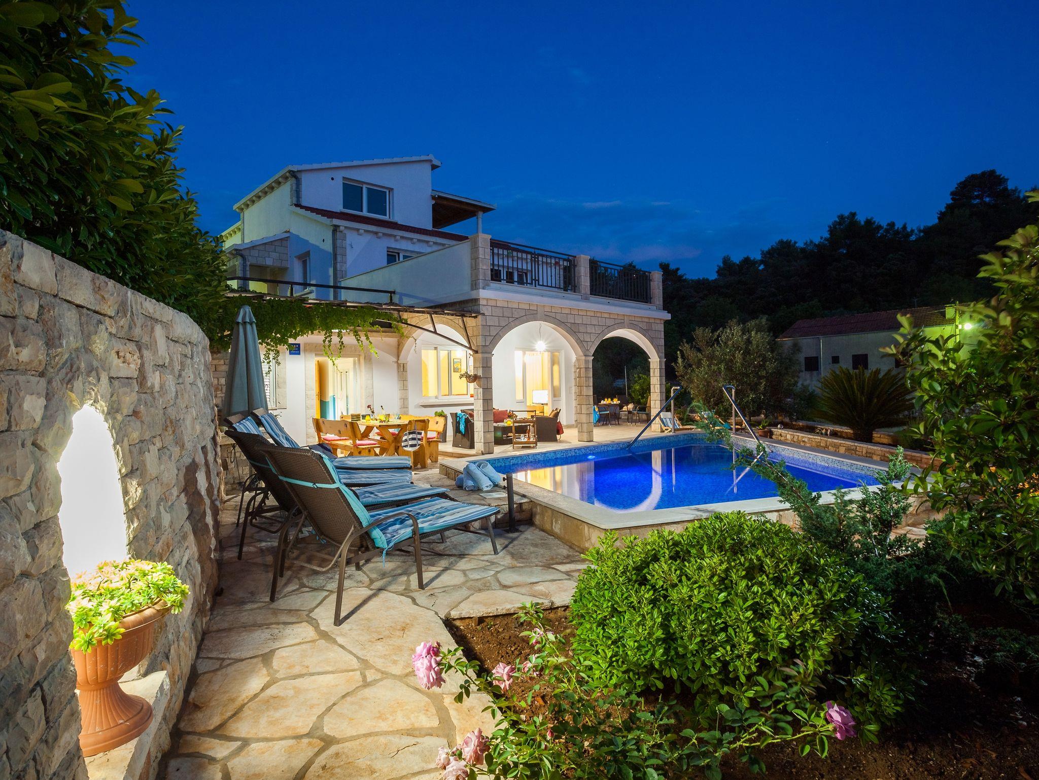 Haus bietet Platz für 14 Gäste. Die Betten sind in Schlafzimmern, die es 7 gibt, innerhalb einer Gesamtfläche von 241m2, angeordnet. Die Gäste haben eine eigene Terrasse zur Verfügung, auf der sie in warmen Sommernächten genießen können. Das Haus bietet Meerblick. Für vollen Genuss und Entspannung gibt es einen privaten Grill für Gäste dieser Unterkunft. Während ihres Aufenthalts können sich Gäste im privaten Schwimmbad entspannen. In der Unterkunftseinheit besteht die Möglichkeit des Mitbringens von Haustieren, und die Dienstleistung ist im Preis der Unterkunft enthalten. IM PREIS INBEGRIFFEN: Kurtaxe, Endreinigung, Klimatisierung, Pool, Parkplatz, Internet, Haustiere, Kinderbett, Bügeleisen, Bügelbrett, Föhn. Die Verfügbarkeit zusätzlicher Dienstleistungen in Ihrem reservierten Termin und die Preise derselben (falls nicht aufgeführt) müssen im Voraus überprüft werden. Zusätzliche Dienstleistungen die in der Zahlungsaufforderung nicht aufgeführt sind werden direkt beim Vermieter bezahlt, angenommen der Gast nutzt auch diese.