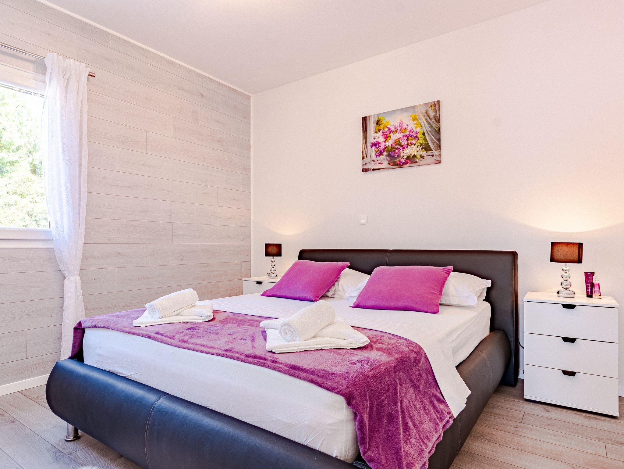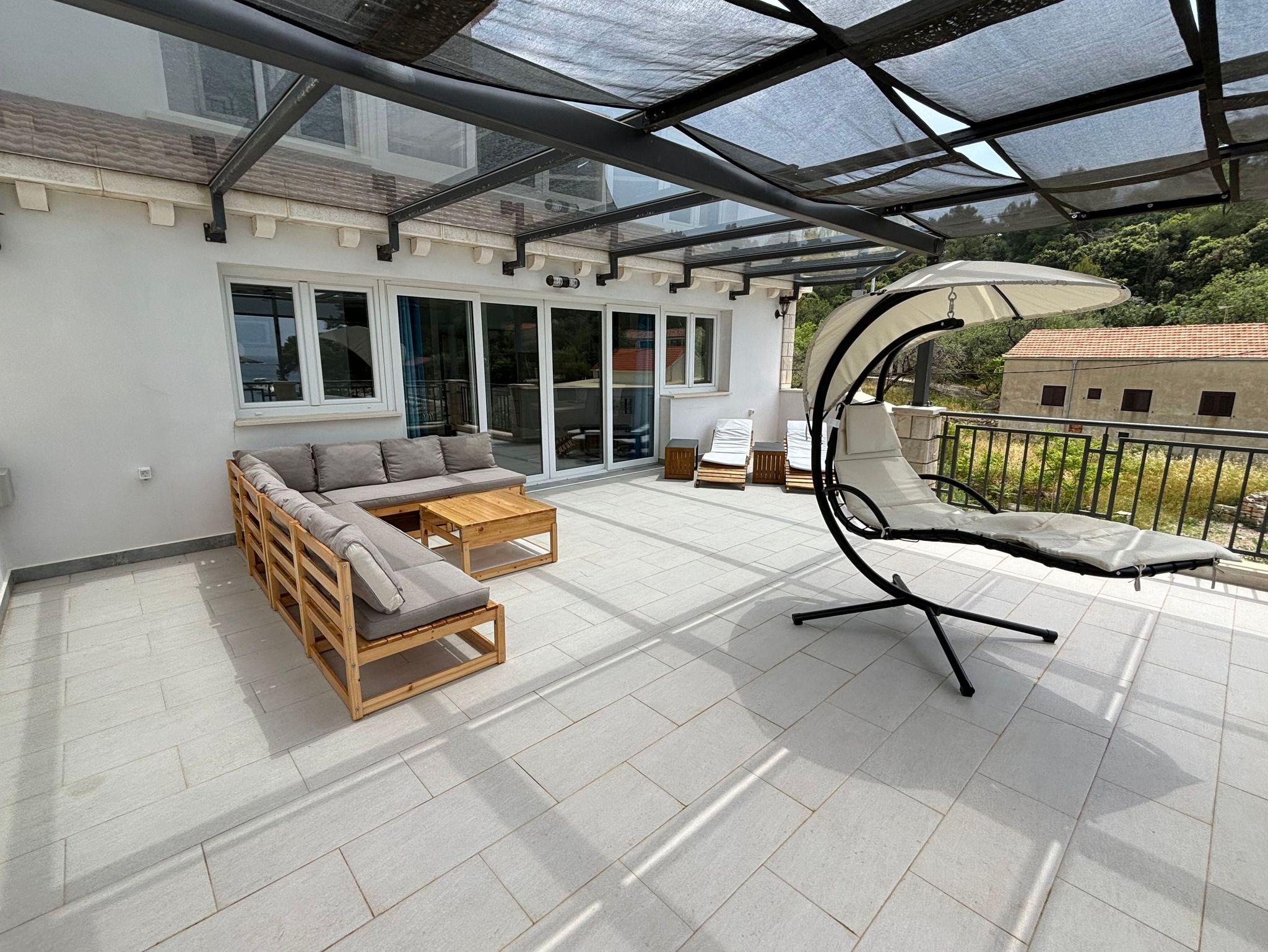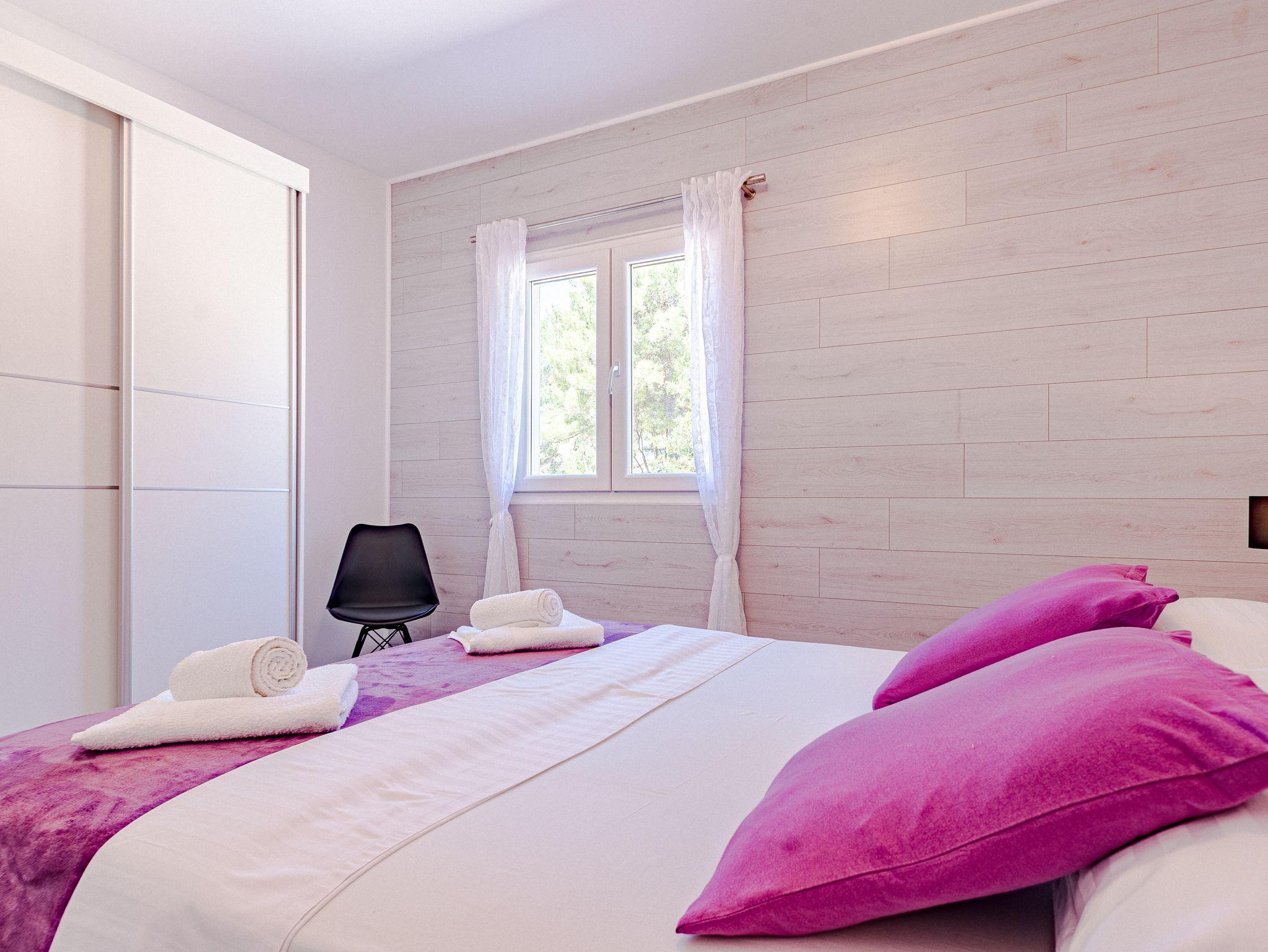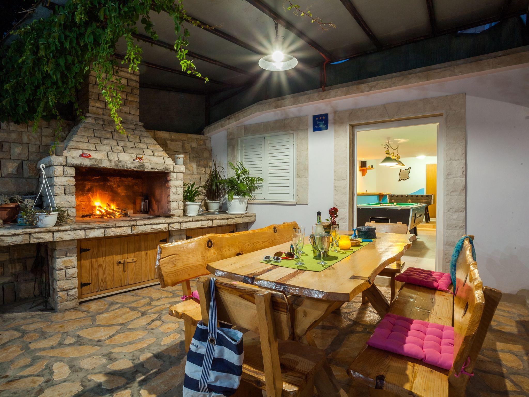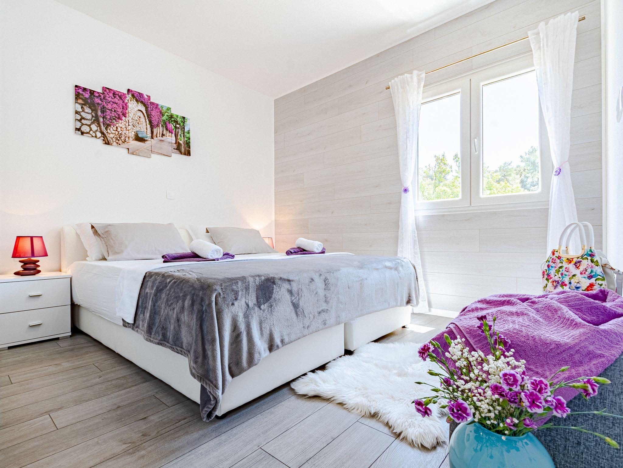 Haus bietet Platz für 14 Gäste. Die Betten sind in Schlafzimmern, die es 7 gibt, innerhalb einer Gesamtfläche von 241m2, angeordnet. Die Gäste haben eine eigene Terrasse zur Verfügung, auf der sie in warmen Sommernächten genießen können. Das Haus bietet Meerblick. Für vollen Genuss und Entspannung gibt es einen privaten Grill für Gäste dieser Unterkunft. Während ihres Aufenthalts können sich Gäste im privaten Schwimmbad entspannen. In der Unterkunftseinheit besteht die Möglichkeit des Mitbringens von Haustieren, und die Dienstleistung ist im Preis der Unterkunft enthalten. IM PREIS INBEGRIFFEN: Kurtaxe, Endreinigung, Klimatisierung, Pool, Parkplatz, Internet, Haustiere, Kinderbett, Bügeleisen, Bügelbrett, Föhn. Die Verfügbarkeit zusätzlicher Dienstleistungen in Ihrem reservierten Termin und die Preise derselben (falls nicht aufgeführt) müssen im Voraus überprüft werden. Zusätzliche Dienstleistungen die in der Zahlungsaufforderung nicht aufgeführt sind werden direkt beim Vermieter bezahlt, angenommen der Gast nutzt auch diese.