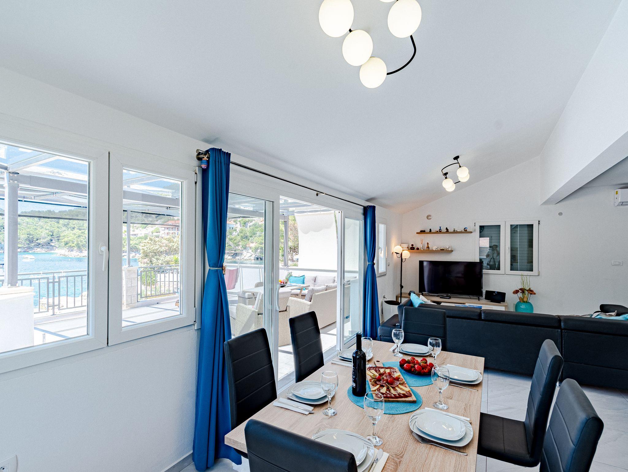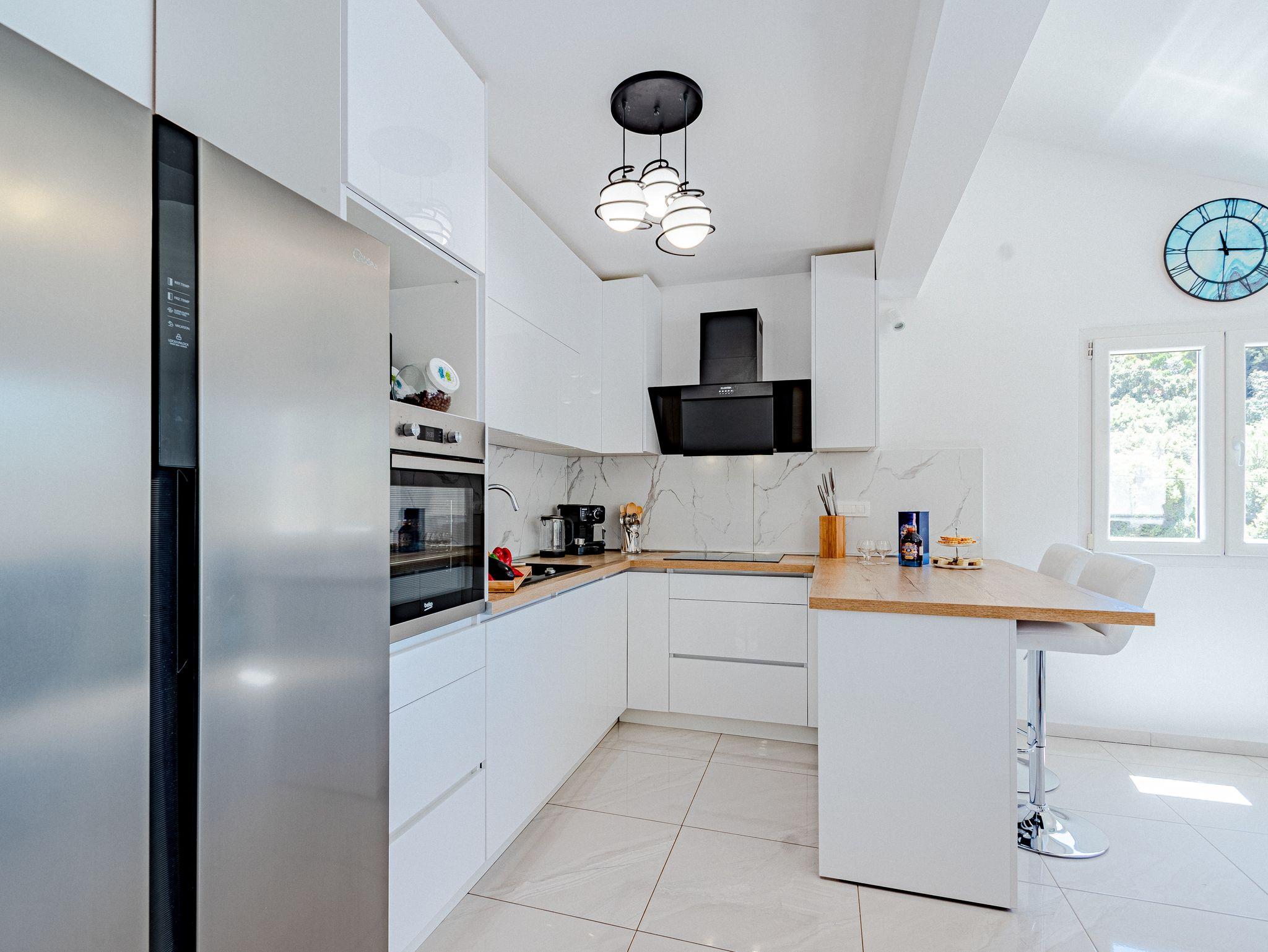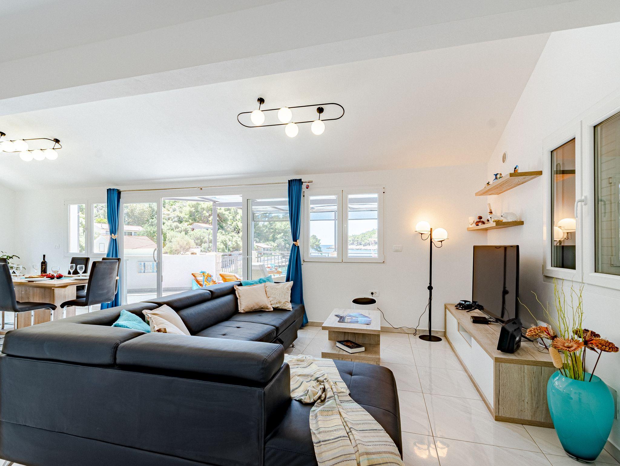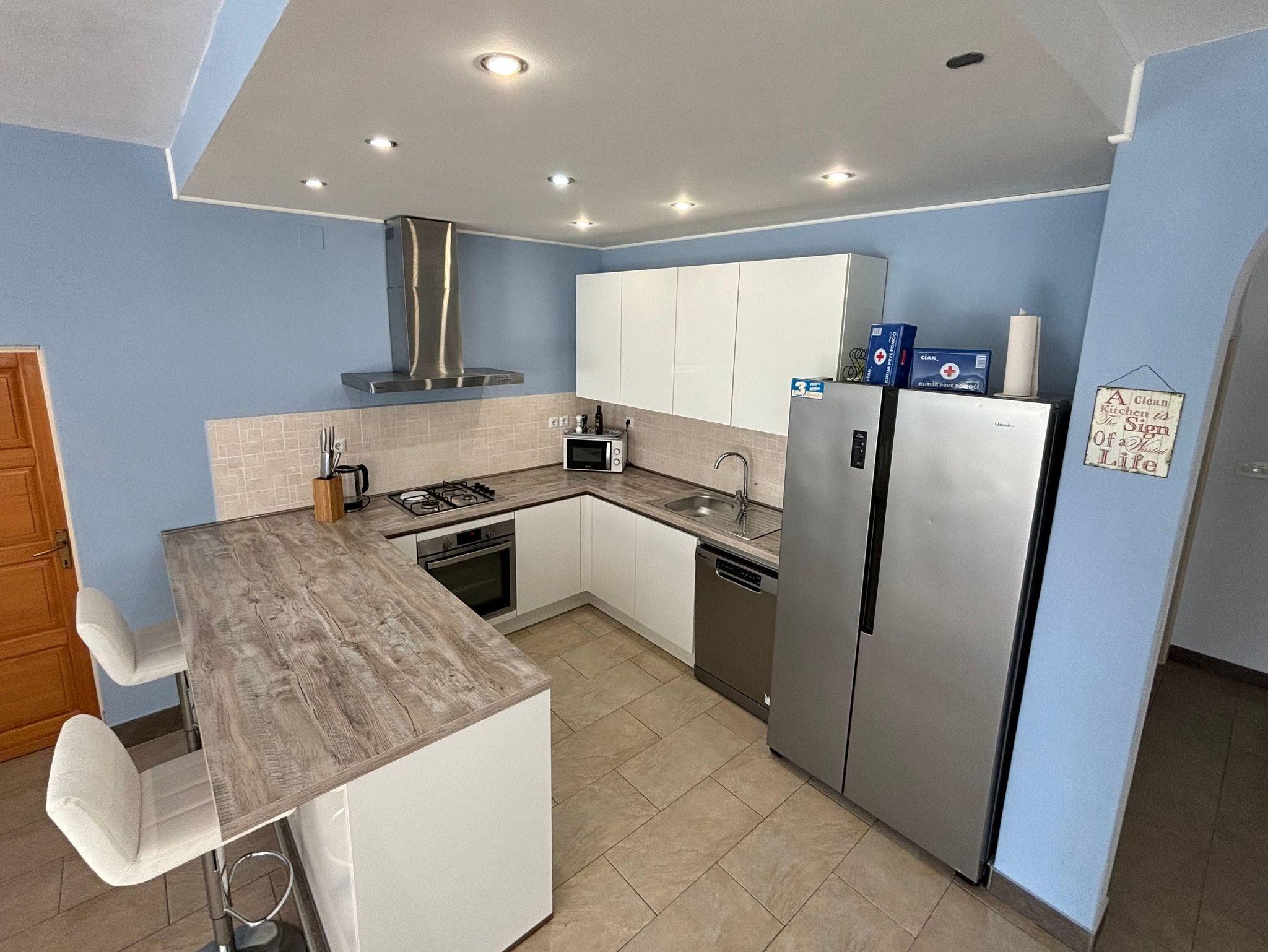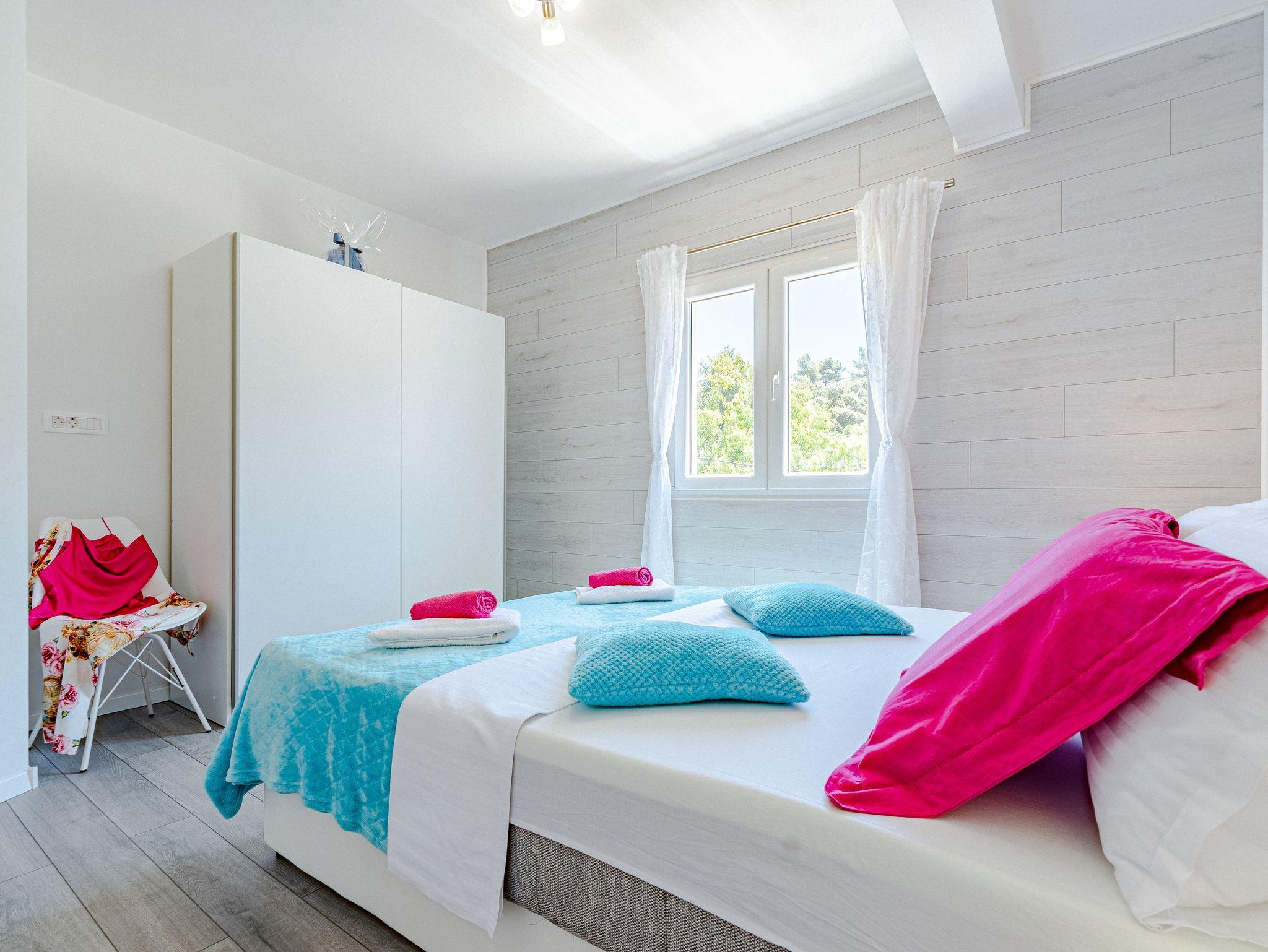Haus bietet Platz für 14 Gäste. Die Betten sind in Schlafzimmern, die es 7 gibt, innerhalb einer Gesamtfläche von 241m2, angeordnet. Die Gäste haben eine eigene Terrasse zur Verfügung, auf der sie in warmen Sommernächten genießen können. Das Haus bietet Meerblick. Für vollen Genuss und Entspannung gibt es einen privaten Grill für Gäste dieser Unterkunft. Während ihres Aufenthalts können sich Gäste im privaten Schwimmbad entspannen. In der Unterkunftseinheit besteht die Möglichkeit des Mitbringens von Haustieren, und die Dienstleistung ist im Preis der Unterkunft enthalten. IM PREIS INBEGRIFFEN: Kurtaxe, Endreinigung, Klimatisierung, Pool, Parkplatz, Internet, Haustiere, Kinderbett, Bügeleisen, Bügelbrett, Föhn. Die Verfügbarkeit zusätzlicher Dienstleistungen in Ihrem reservierten Termin und die Preise derselben (falls nicht aufgeführt) müssen im Voraus überprüft werden. Zusätzliche Dienstleistungen die in der Zahlungsaufforderung nicht aufgeführt sind werden direkt beim Vermieter bezahlt, angenommen der Gast nutzt auch diese.