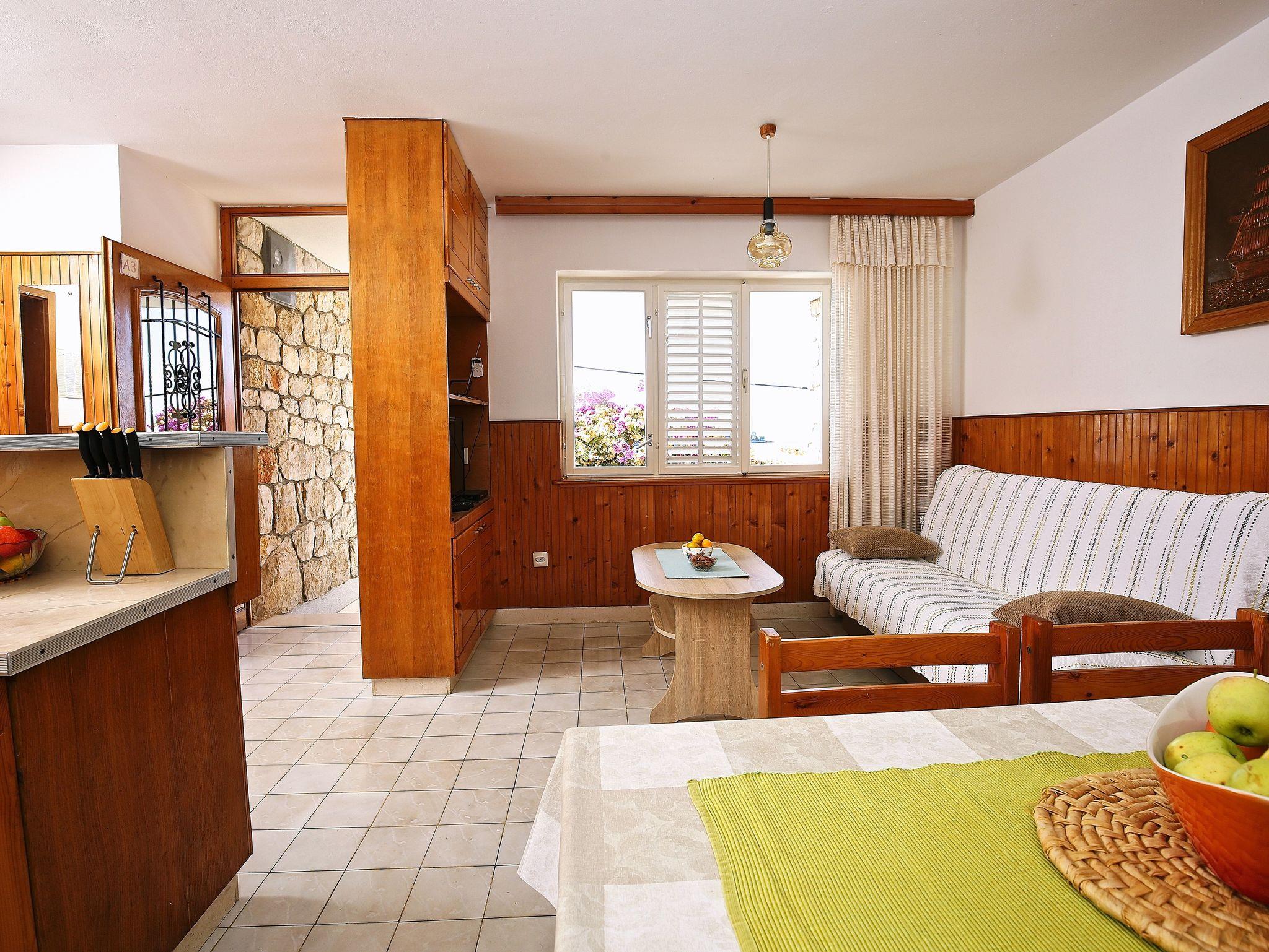 Ferienwohnung bietet Platz für 7 Gäste. Die Betten sind in Schlafzimmern, die es 3 gibt, und in Wohnzimmer, innerhalb einer Gesamtfläche von 55m2, angeordnet. Die Gäste haben eine eigene Terrasse zur Verfügung, auf der sie in warmen Sommernächten genießen können. Das Apartment bietet Meerblick. Es ist erlaubt, Speisen auf dem Gemeinschafts-Grill vorzubereiten. In der Unterkunftseinheit besteht die Möglichkeit des Mitbringens von Haustieren gegen Aufpreis. In der gebuchten Unterkunftseinheit zahlt man am Ort ein Depositum ( der Preis ist an der Internetseite angeführt ). IM PREIS INBEGRIFFEN: Kurtaxe, Endreinigung, Klimatisierung, Parkplatz, Internet, Wäschewaschen, Bootsanlegeplatz, Kinderbett, Bügeleisen, Bügelbrett. VERBINDLICHE ZUSÄTZLICHE KOSTEN: Kaution (100,00 € Einmalzahlung), Aufzahlung für Kurzaufenthalte (prozentualer Zuschlag pro Nächtigungsanzahl: 30% - 1, 20% - 2, 10% - 3). UNVERBINDLICHE ZUSÄTZLICHE KOSTEN: Haustiere (7,00 € pro Nacht). Die Verfügbarkeit zusätzlicher Dienstleistungen in Ihrem reservierten Termin und die Preise derselben (falls nicht aufgeführt) müssen im Voraus überprüft werden. Zusätzliche Dienstleistungen die in der Zahlungsaufforderung nicht aufgeführt sind werden direkt beim Vermieter bezahlt, angenommen der Gast nutzt auch diese. Ermäßigung auf den Grundpreis: Gratistag 14=13 (bei einem Aufenthalt von 14 Tagen oder mehr erhalten Sie einen Gratistag für den Aufenthalt bis 31.12.26).