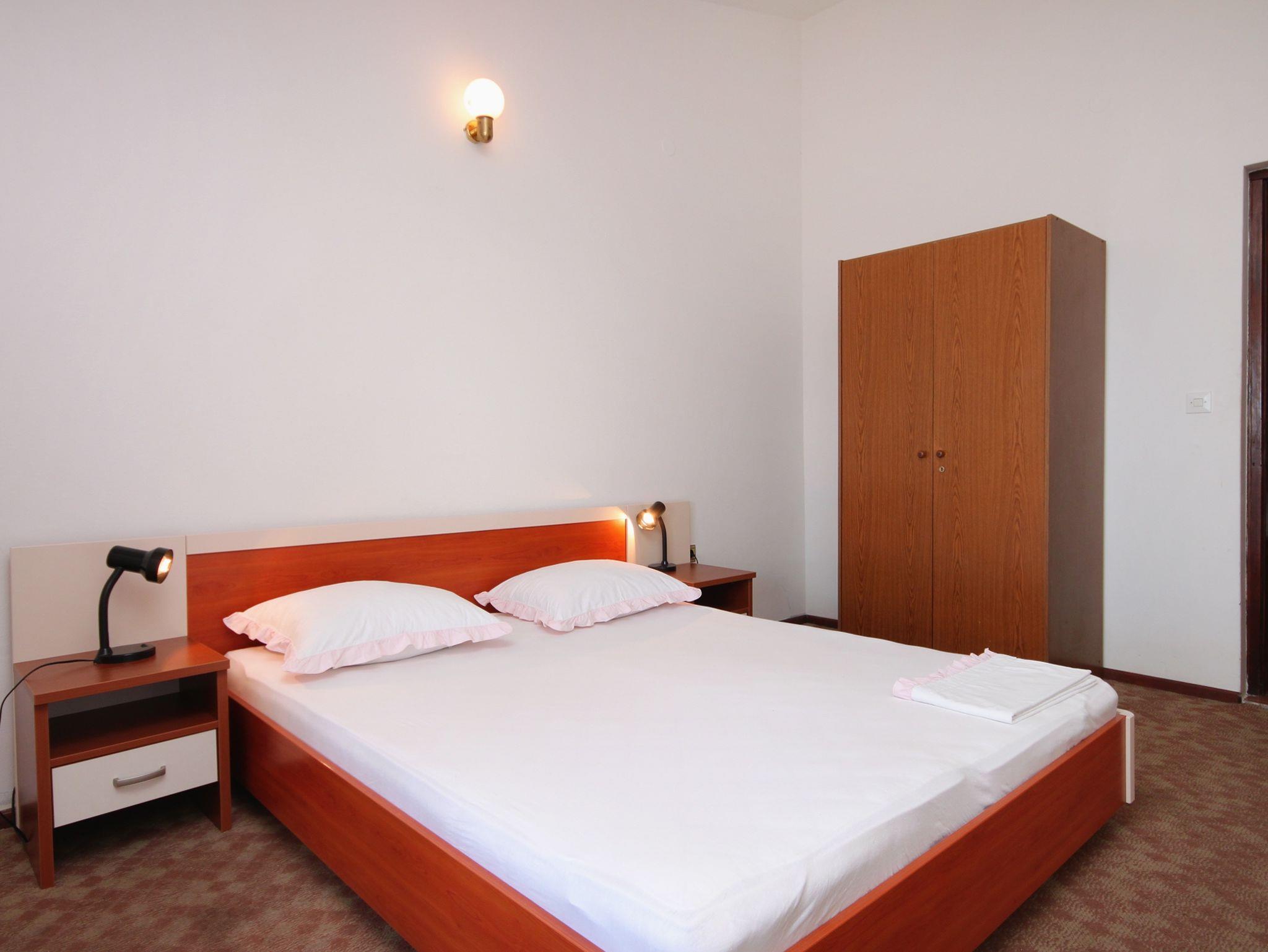 Ferienwohnung bietet Platz für 2 Gäste. Die Betten sind in Schlafzimmern, die es 1 gibt, innerhalb einer Gesamtfläche von 28m2, angeordnet. Die Gäste haben einen eigenen Balkon zur Verfügung, auf der sie in warmen Sommernächten genießen können. Das Apartment bietet Meerblick. IM PREIS INBEGRIFFEN: Kurtaxe, Endreinigung, Klimatisierung, Parkplatz, Internet, Bootsanlegeplatz, Föhn. VERBINDLICHE ZUSÄTZLICHE KOSTEN: Aufzahlung für Kurzaufenthalte (prozentualer Zuschlag pro Nächtigungsanzahl: 30% - 1, 20% - 2, 10% - 3). Die Verfügbarkeit zusätzlicher Dienstleistungen in Ihrem reservierten Termin und die Preise derselben (falls nicht aufgeführt) müssen im Voraus überprüft werden. Zusätzliche Dienstleistungen die in der Zahlungsaufforderung nicht aufgeführt sind werden direkt beim Vermieter bezahlt, angenommen der Gast nutzt auch diese.