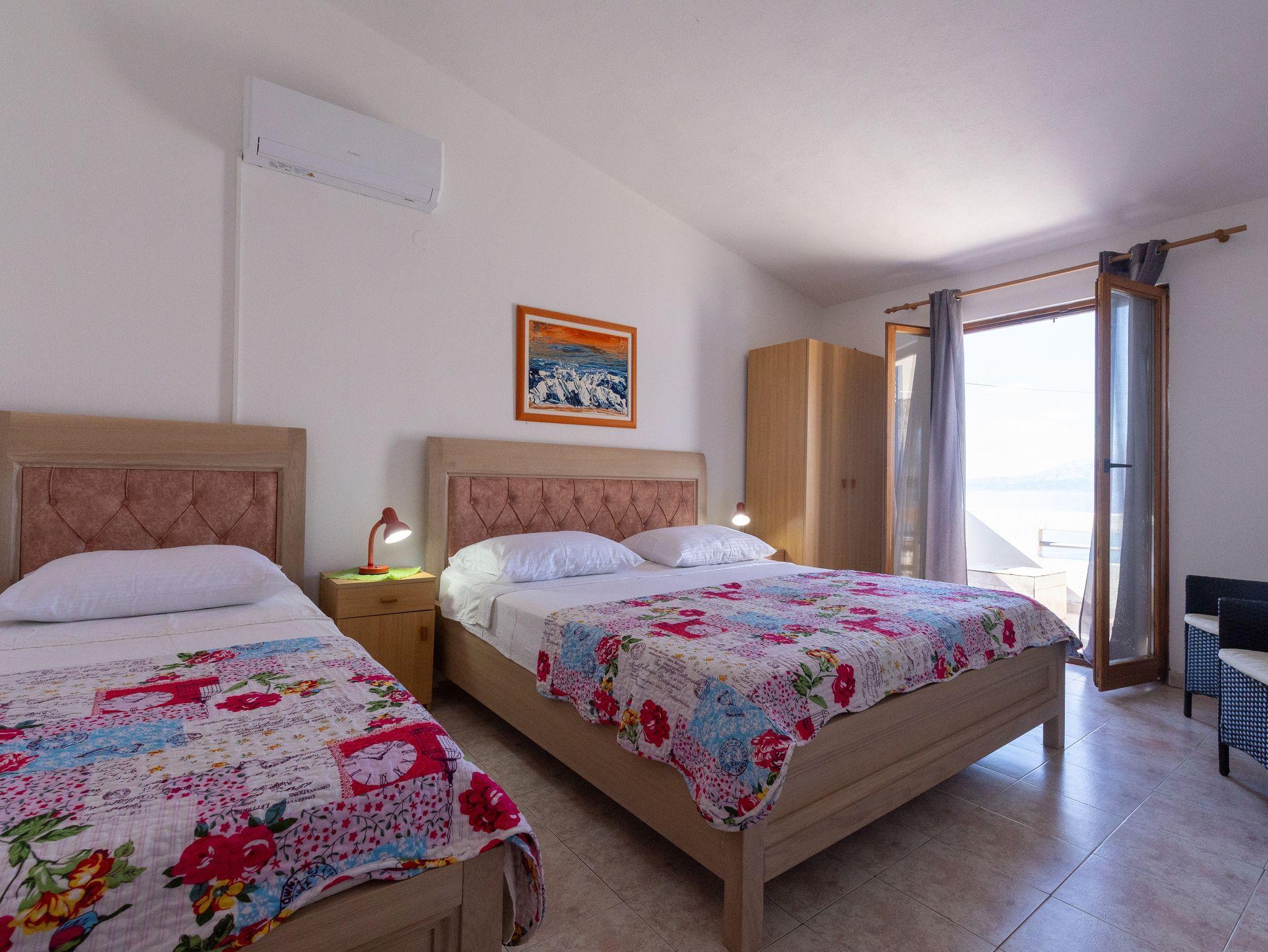 Ferienwohnung bietet Platz für 6 Gäste. Die Betten sind in Schlafzimmern, die es 2 gibt, und in Esszimmer, innerhalb einer Gesamtfläche von 52m2, angeordnet. Die Gäste haben eine eigene Terrasse zur Verfügung, auf der sie in warmen Sommernächten genießen können. Das Apartment bietet Meerblick. Es ist erlaubt, Speisen auf dem Gemeinschafts-Grill vorzubereiten. In der Unterkunftseinheit besteht die Möglichkeit des Mitbringens von Haustieren gegen Aufpreis. IM PREIS INBEGRIFFEN: Kurtaxe, Endreinigung, Klimatisierung, Parkplatz, Internet. VERBINDLICHE ZUSÄTZLICHE KOSTEN: Aufzahlung für Kurzaufenthalte (prozentualer Zuschlag pro Nächtigungsanzahl: 30% - 1, 20% - 2, 10% - 3). UNVERBINDLICHE ZUSÄTZLICHE KOSTEN: Haustiere (10,00 € pro Nacht). Die Verfügbarkeit zusätzlicher Dienstleistungen in Ihrem reservierten Termin und die Preise derselben (falls nicht aufgeführt) müssen im Voraus überprüft werden. Zusätzliche Dienstleistungen die in der Zahlungsaufforderung nicht aufgeführt sind werden direkt beim Vermieter bezahlt, angenommen der Gast nutzt auch diese.
