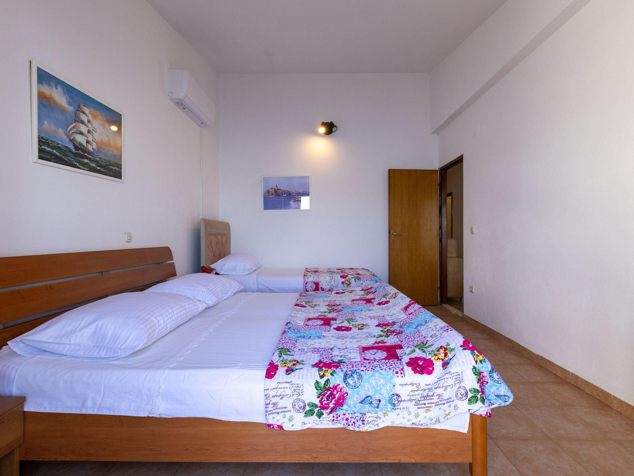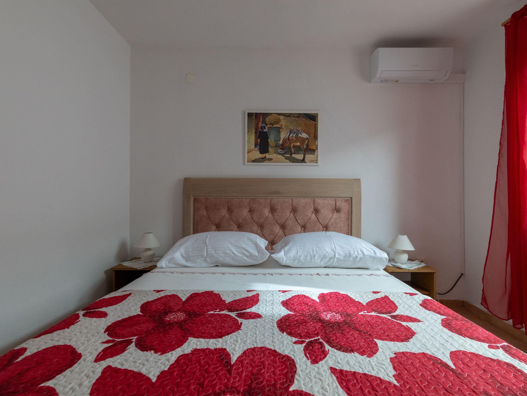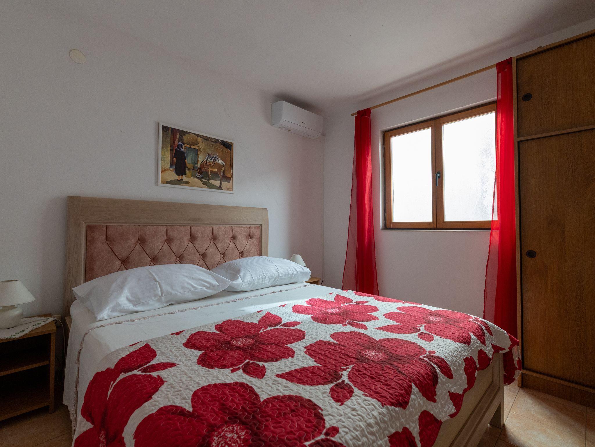 Ferienwohnung bietet Platz für 6 Gäste. Die Betten sind in Schlafzimmern, die es 2 gibt, und in Esszimmer, innerhalb einer Gesamtfläche von 52m2, angeordnet. Die Gäste haben eine eigene Terrasse zur Verfügung, auf der sie in warmen Sommernächten genießen können. Das Apartment bietet Meerblick. Es ist erlaubt, Speisen auf dem Gemeinschafts-Grill vorzubereiten. In der Unterkunftseinheit besteht die Möglichkeit des Mitbringens von Haustieren gegen Aufpreis. IM PREIS INBEGRIFFEN: Kurtaxe, Endreinigung, Klimatisierung, Parkplatz, Internet. VERBINDLICHE ZUSÄTZLICHE KOSTEN: Aufzahlung für Kurzaufenthalte (prozentualer Zuschlag pro Nächtigungsanzahl: 30% - 1, 20% - 2, 10% - 3). UNVERBINDLICHE ZUSÄTZLICHE KOSTEN: Haustiere (10,00 € pro Nacht). Die Verfügbarkeit zusätzlicher Dienstleistungen in Ihrem reservierten Termin und die Preise derselben (falls nicht aufgeführt) müssen im Voraus überprüft werden. Zusätzliche Dienstleistungen die in der Zahlungsaufforderung nicht aufgeführt sind werden direkt beim Vermieter bezahlt, angenommen der Gast nutzt auch diese.