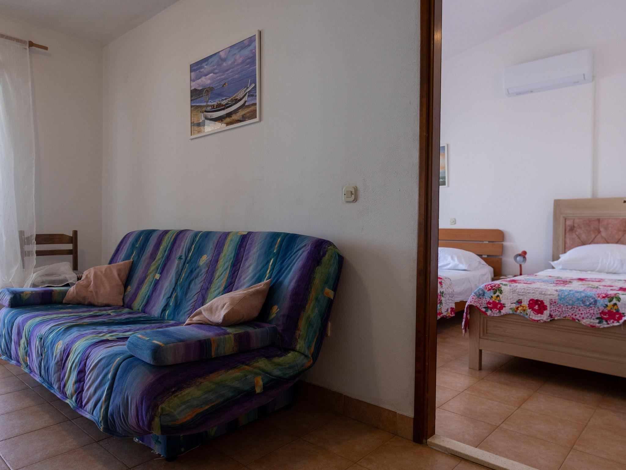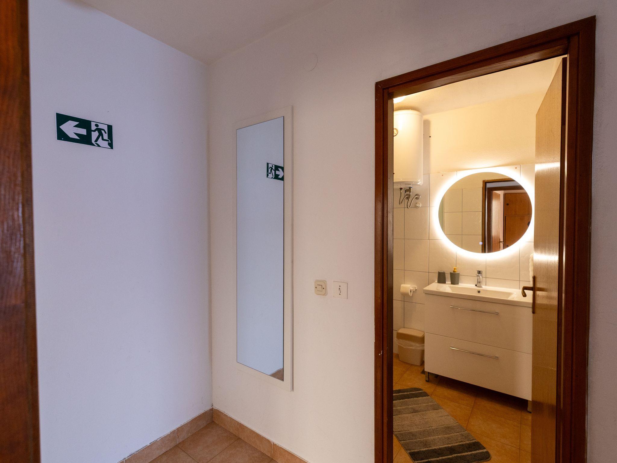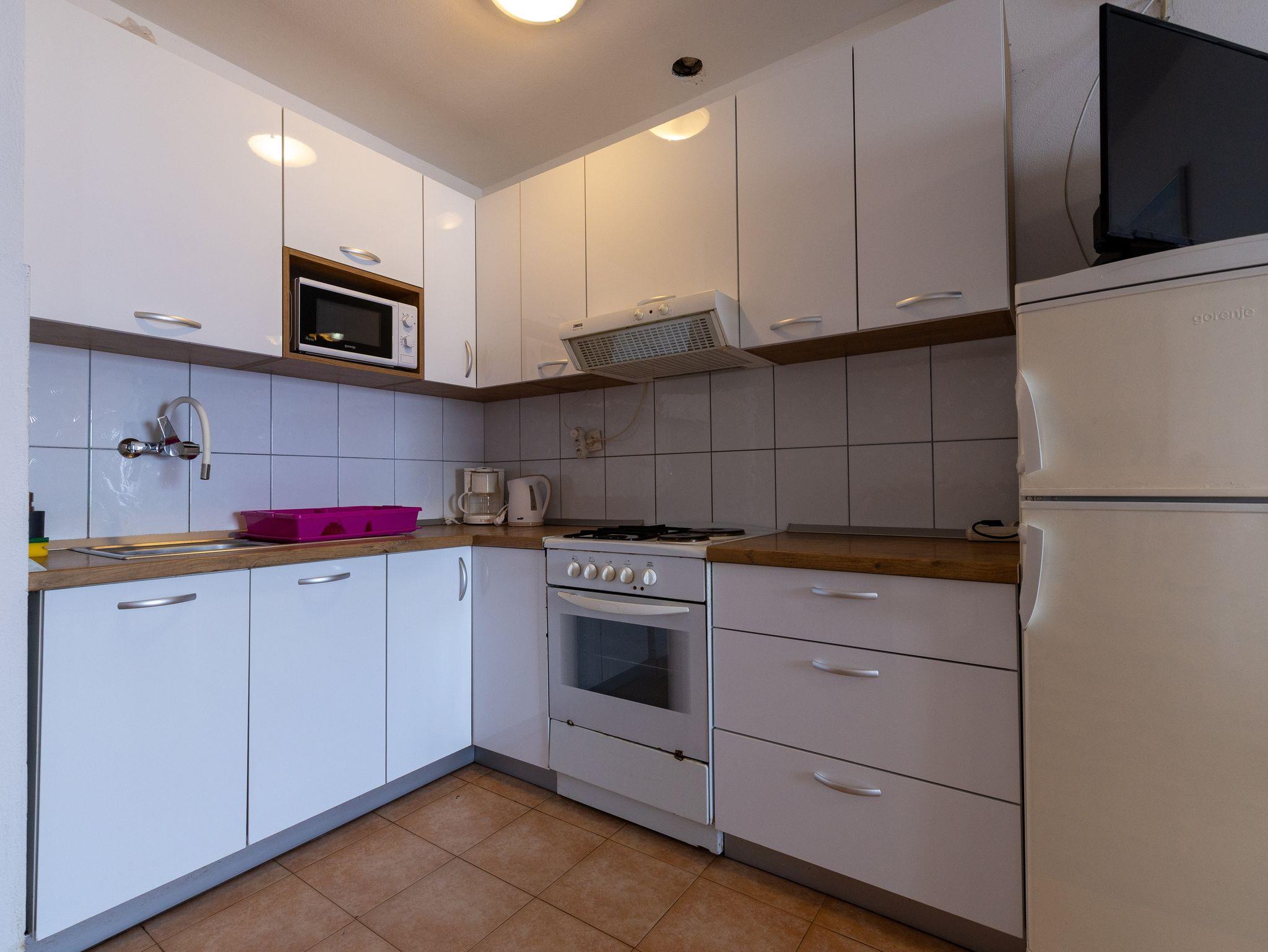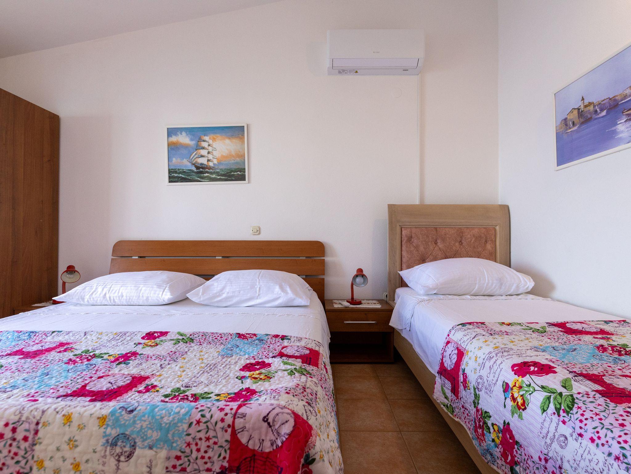 Ferienwohnung bietet Platz für 6 Gäste. Die Betten sind in Schlafzimmern, die es 2 gibt, und in Esszimmer, innerhalb einer Gesamtfläche von 52m2, angeordnet. Die Gäste haben eine eigene Terrasse zur Verfügung, auf der sie in warmen Sommernächten genießen können. Das Apartment bietet Meerblick. Es ist erlaubt, Speisen auf dem Gemeinschafts-Grill vorzubereiten. In der Unterkunftseinheit besteht die Möglichkeit des Mitbringens von Haustieren gegen Aufpreis. IM PREIS INBEGRIFFEN: Kurtaxe, Endreinigung, Klimatisierung, Parkplatz, Internet. VERBINDLICHE ZUSÄTZLICHE KOSTEN: Aufzahlung für Kurzaufenthalte (prozentualer Zuschlag pro Nächtigungsanzahl: 30% - 1, 20% - 2, 10% - 3). UNVERBINDLICHE ZUSÄTZLICHE KOSTEN: Haustiere (10,00 € pro Nacht). Die Verfügbarkeit zusätzlicher Dienstleistungen in Ihrem reservierten Termin und die Preise derselben (falls nicht aufgeführt) müssen im Voraus überprüft werden. Zusätzliche Dienstleistungen die in der Zahlungsaufforderung nicht aufgeführt sind werden direkt beim Vermieter bezahlt, angenommen der Gast nutzt auch diese.