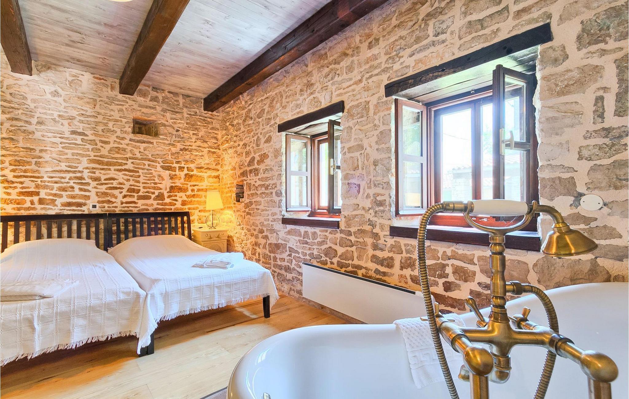 Diese charmante Villa wurde in einer Weise restauriert, die den Zauber traditioneller istrischer Häuser mit moderner Einrichtung kombiniert, was sie für einen entspannenden Urlaub perfekt macht. Bereits auf den ersten Blick ist es offensichtlich, dass die Villa sorgfältig und mit Liebe eingerichtet wurde, damit sie als eine ideale Ferienresidenz dienen kann. Die Kombination von Steinwänden, Holzbalken und Möbeln mit handverlesenen, bunten Details schafft eine warme und einladende Atmosphäre. Villa Florinda hat 3 Schlafzimmer und 3 Badezimmer und kann bis zu 6 + 1 Personen beherbergen. Wenn Sie gerne in der Sonne liegen oder die Landschaft erkunden, stehen Ihnen sowohl ein privater Pool mit 6 Liegestühlen als auch 4 Fahrräder zur Verfügung. Falls Sie aber in der Villa während kälterer Tage bleiben, entspannen Sie auf jeden Fall in der privaten SaunaDie bezaubernde typisch istrianische Hügelstadt Svetvincenat liegt im Herzen des ländlichen Istriens, auf halbem Weg zwischen Pazin und Pula, umgeben von der traumhaften pittoresken Landschaft geschmückt mit Zypressenbäumen, Olivenhainen und idyllischen Weinbergen. Das Wahrzeichen der Stadt ist das eindrucksvolle, mittelalterliche Grimani-Schloss, das den Hauptplatz dominiert. Kleine Geschäfte, hübsche Cafes und gute Restaurants beleben das nette Städtchen und folgt man den gewundenen Gässchen durch die uralten Mauern wird seine reiche Geschichte spürbar. Zahlreiche Wander- und Radrouten stehen Ihnen hier zur Verfügung für ein wahres Erlebnis Istriens. Die berühmten, lebhaften Städte entlang der wunderschönen Küste sind nur eine kurze Fahrt durch die malerische Umgebung entfernt.