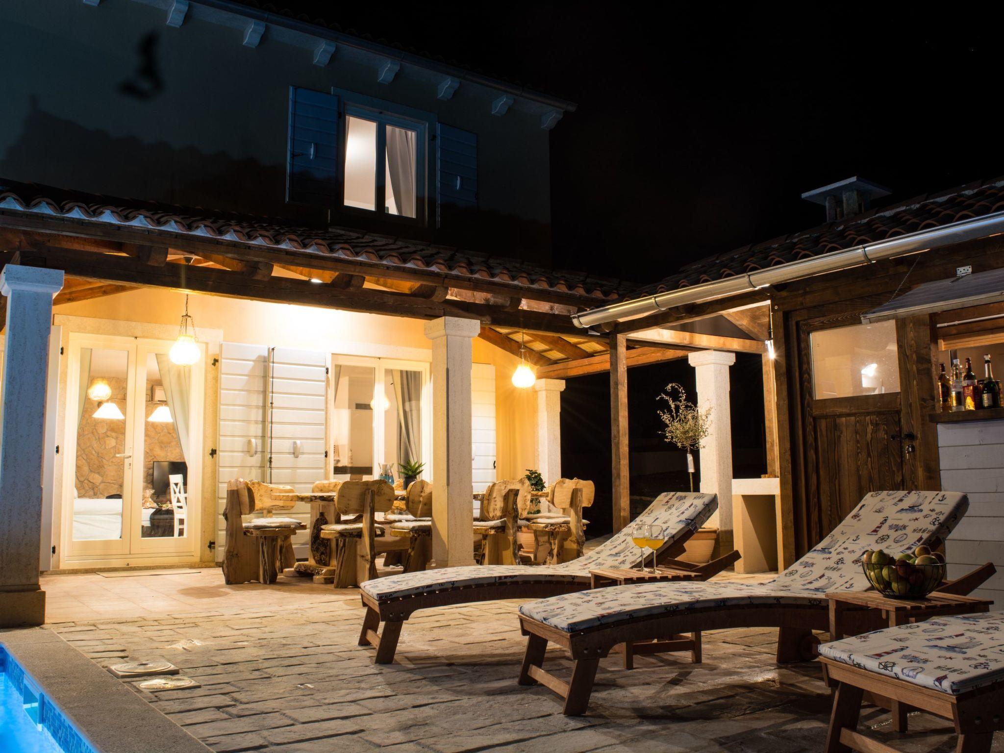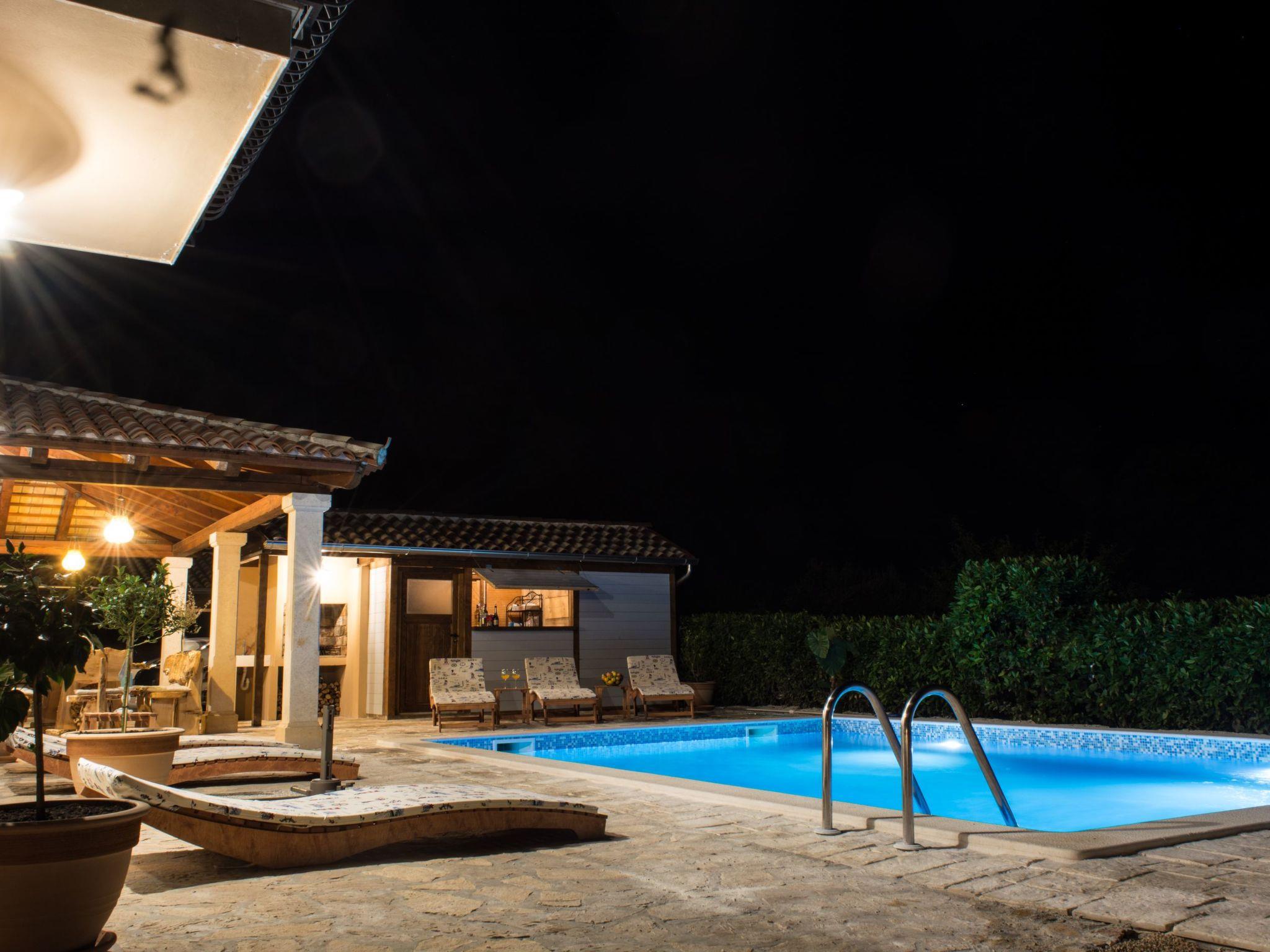 There is also a large lounger pool, parasol, outdoor shower and bar that adorns the exterior and serves as a quick refreshment. There is a barbecue in the outdoor bar to make your favorite barbecue dishes. The pool is equipped with night lighting and heating water.