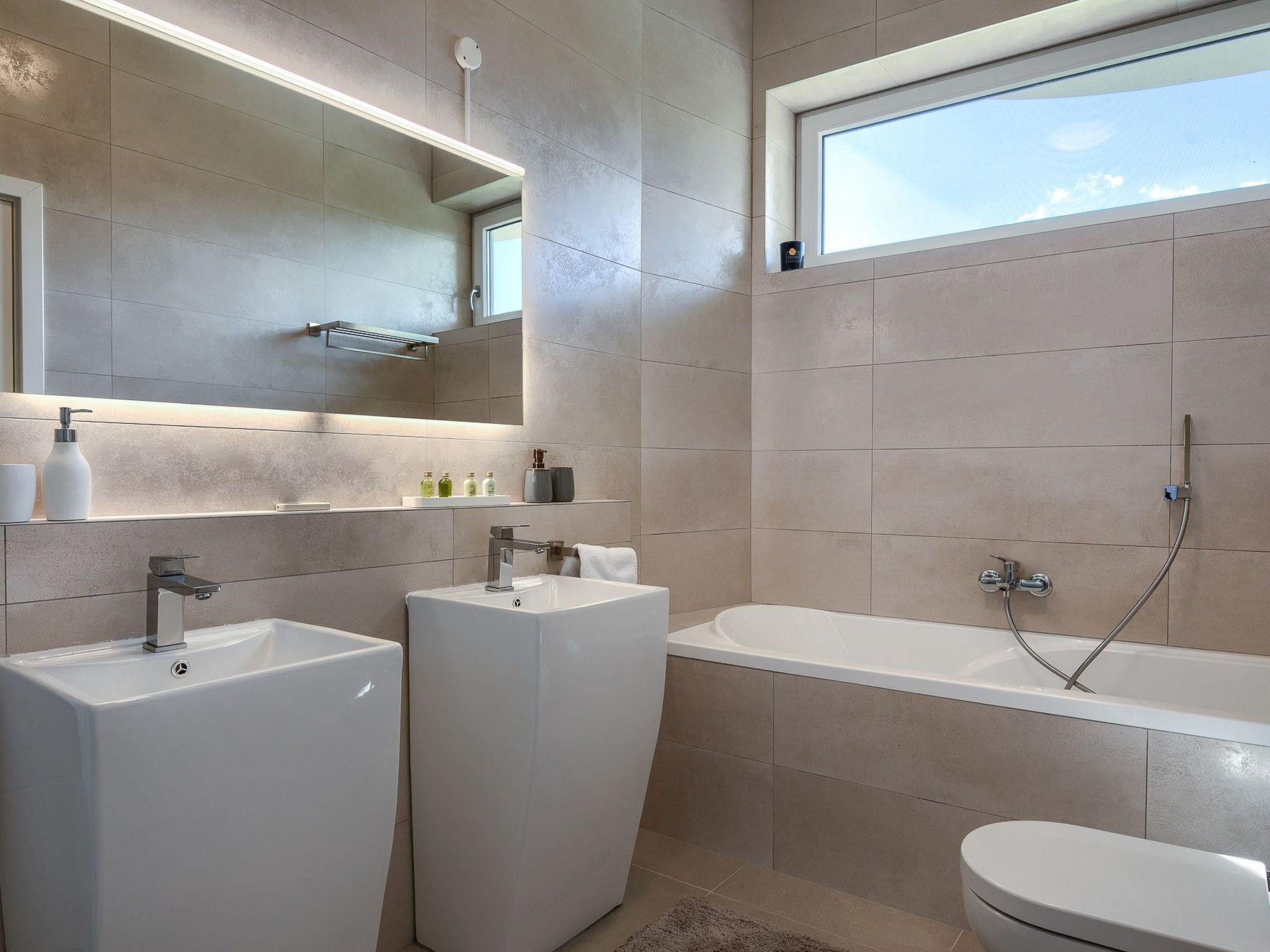 Inside Luxury Villa La Dominika, elegance meets comfort over 500 m2 of living space, accommodating up to 14 guests. Two floors, connected by internal stairs, reveal a fully equipped kitchen featuring an induction hob, coffee machines (filter and capsule, coffee machins), and a dishwasher. The open-plan living room, complete with fireplace and entertainment room, offers a cozy retreat, while the convenience of a washing machine, clothes dryer, underfloor heating, and air conditioning throughout ensures a comfortable stay. With 5 bedrooms, each boasting en suite bathrooms, and additional amenities like a sauna and gym, every detail has been thoughtfully curated to enhance your stay.