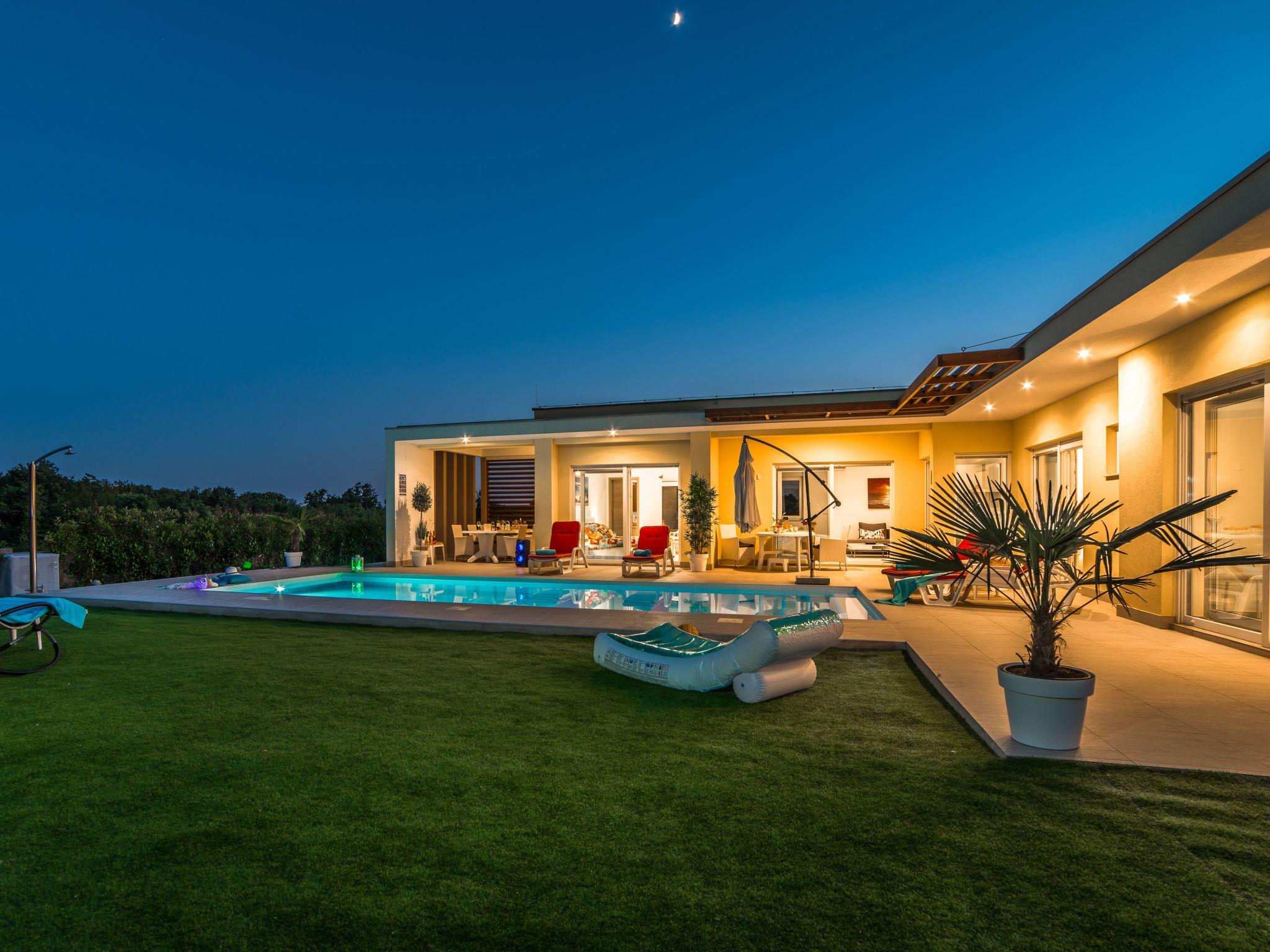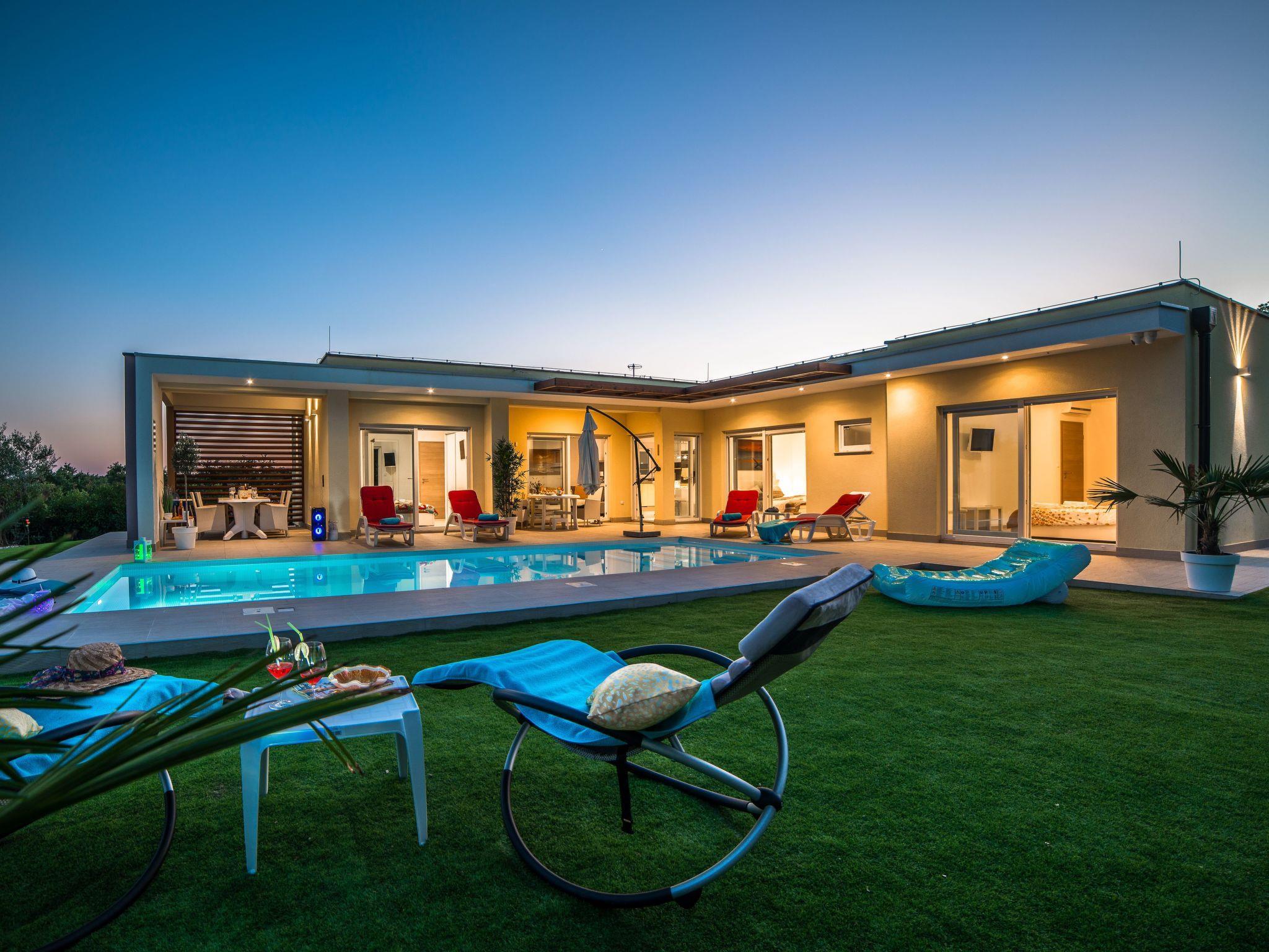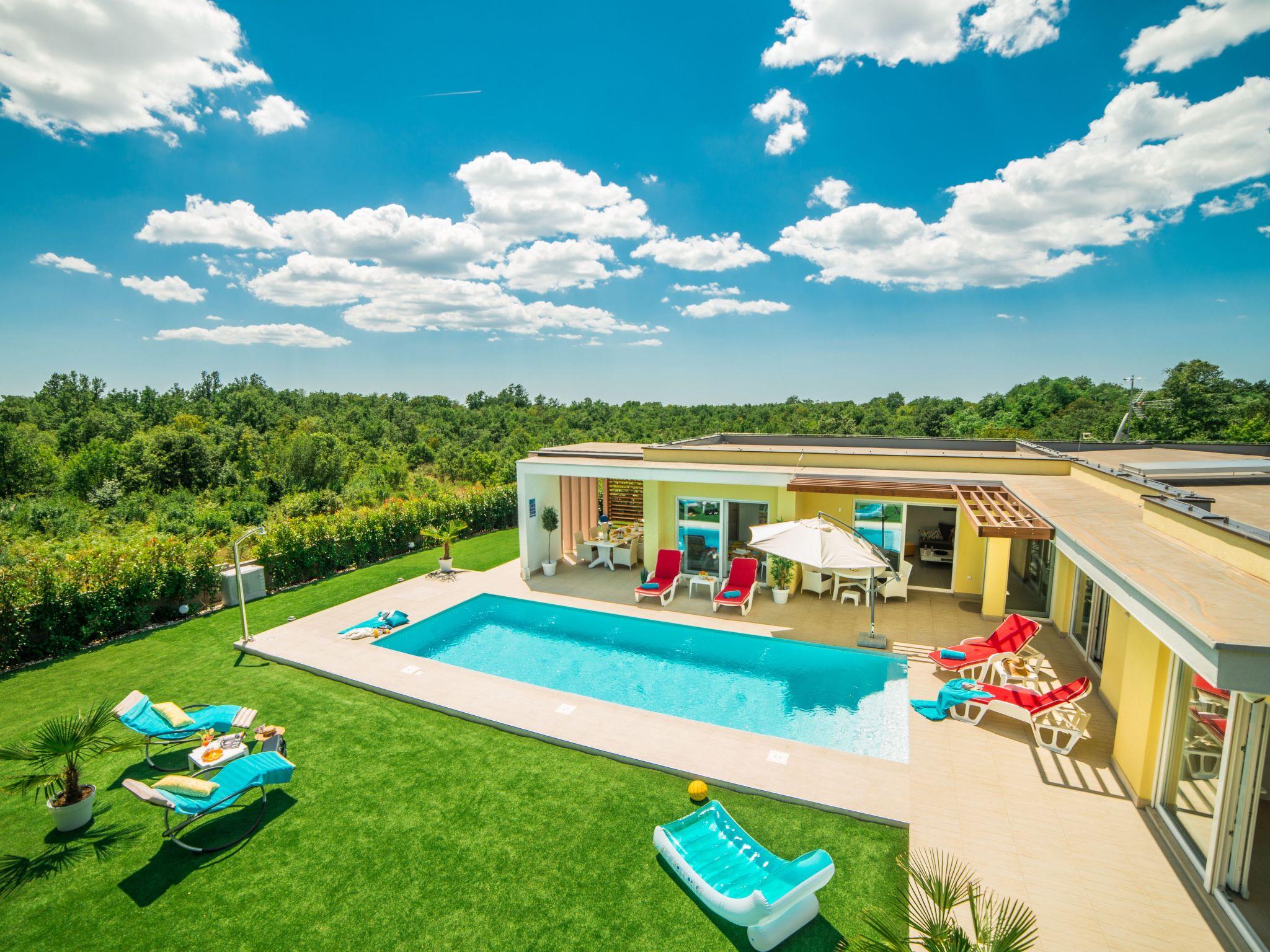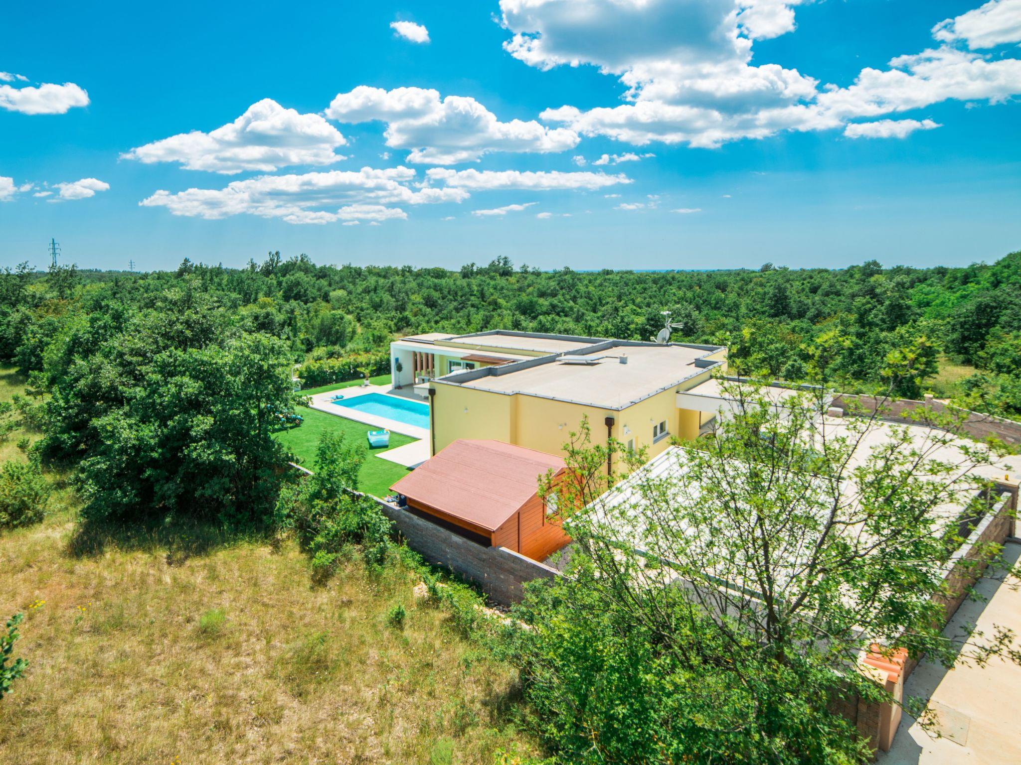 This beautiful property in the idyllic little village of Bijazici near Svetvincenat in the heart of the Istrian region offers you peace and relaxation. The modernly designed and equipped villa with heated swimming pool was built in 2017 and is located on a 960 m² plot in the peaceful countryside. Location: Morosini-Grimani Castle in Svetvincenat is 5 km from the holiday home. Pula airport is about 20 km away. The location is very advantageous, as the popular holiday resorts of Fažana with the Brion islands and Pula with the historic old town in the south as well as Rovinj and Porec with their sights on the west coast are within easy reach.