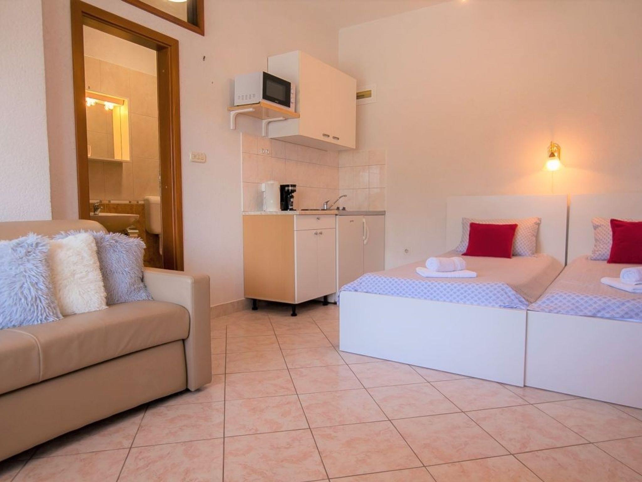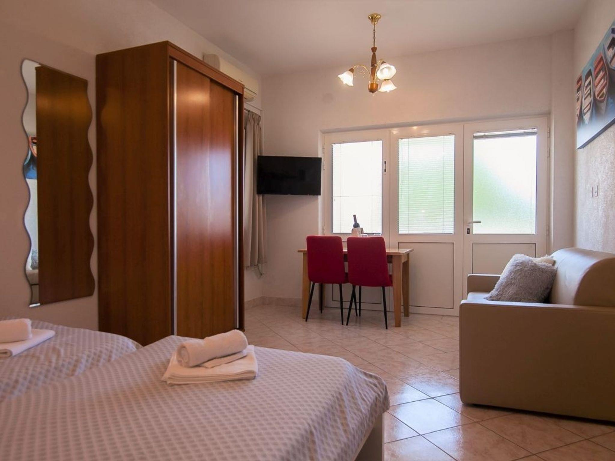 Studio bietet Platz für 2 Gäste. Die Betten sind in Schlafzimmern, die es 1 gibt, innerhalb einer Gesamtfläche von 20m2, angeordnet. Die Gäste haben eine eigene Terrasse zur Verfügung, auf der sie in warmen Sommernächten genießen können. Es ist erlaubt, Speisen auf dem Gemeinschafts-Grill vorzubereiten. IM PREIS INBEGRIFFEN: Kurtaxe, Endreinigung, Klimatisierung, Parkplatz, Internet, Kinderbett, Bügeleisen, Föhn. Die Verfügbarkeit zusätzlicher Dienstleistungen in Ihrem reservierten Termin und die Preise derselben (falls nicht aufgeführt) müssen im Voraus überprüft werden. Zusätzliche Dienstleistungen die in der Zahlungsaufforderung nicht aufgeführt sind werden direkt beim Vermieter bezahlt, angenommen der Gast nutzt auch diese.