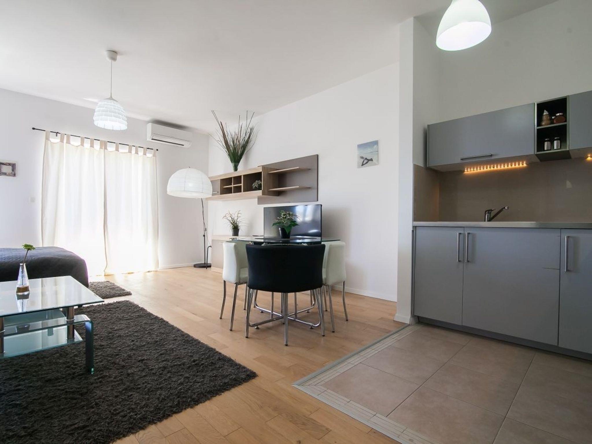 Studio bietet Platz für 2 Gäste. Die Betten sind in Schlafzimmern, die es 1 gibt, innerhalb einer Gesamtfläche von 40m2, angeordnet. Die Gäste haben einen eigenen Balkon zur Verfügung, auf der sie in warmen Sommernächten genießen können. Das Studio-Apartment bietet Meerblick. In der Unterkunftseinheit besteht die Möglichkeit des Mitbringens von Haustieren gegen Aufpreis. IM PREIS INBEGRIFFEN: Kurtaxe, Endreinigung, Klimatisierung, Internet, Bügeleisen, Föhn, 2 Kinderbettchen (im Preis enthalten). UNVERBINDLICHE ZUSÄTZLICHE KOSTEN: Haustiere (5,00 € pro Nacht). Die Verfügbarkeit zusätzlicher Dienstleistungen in Ihrem reservierten Termin und die Preise derselben (falls nicht aufgeführt) müssen im Voraus überprüft werden. Zusätzliche Dienstleistungen die in der Zahlungsaufforderung nicht aufgeführt sind werden direkt beim Vermieter bezahlt, angenommen der Gast nutzt auch diese.