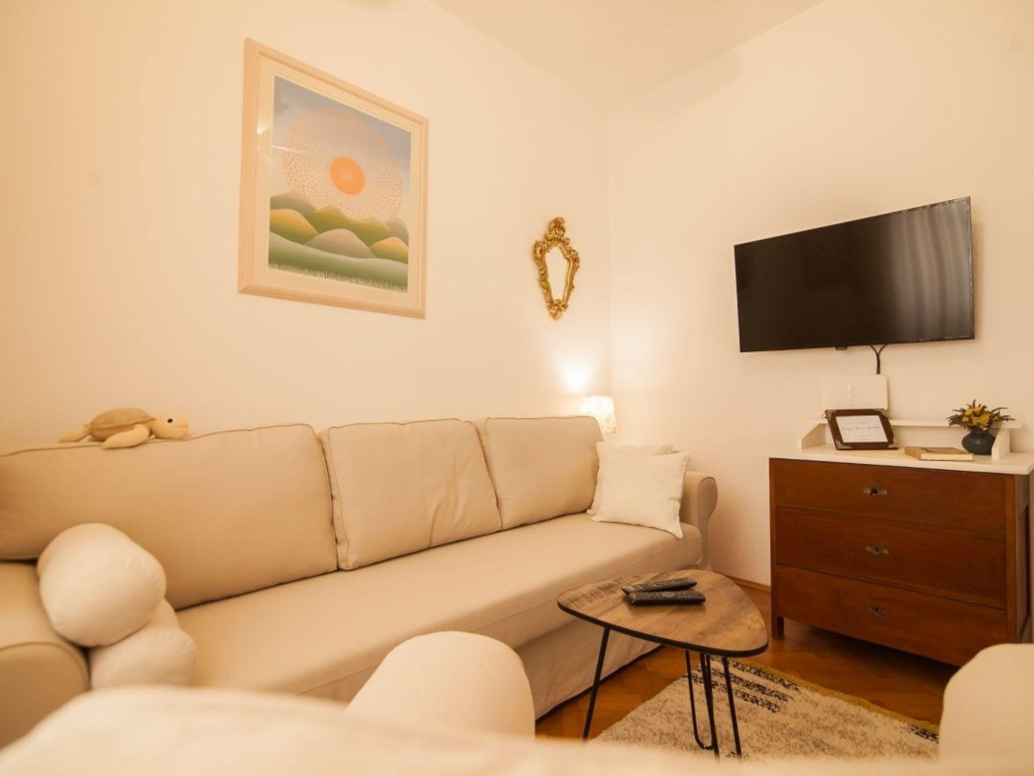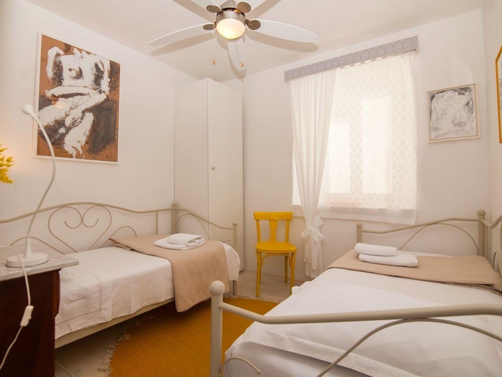 Haus bietet Platz für 6 Gäste. Die Betten sind in Schlafzimmern, die es 3 gibt, innerhalb einer Gesamtfläche von 100m2, angeordnet. Die Gäste haben eine eigene Terrasse zur Verfügung, auf der sie in warmen Sommernächten genießen können. Für vollen Genuss und Entspannung gibt es einen privaten Grill für Gäste dieser Unterkunft. IM PREIS INBEGRIFFEN: Endreinigung, Klimatisierung, Internet, Kinderbett, Bügeleisen, Föhn. VERBINDLICHE ZUSÄTZLICHE KOSTEN: Kurtaxe (Erwachsene 0,93 € - 1,40 € Nacht/Person, Kinderermäßigung 12 - 17 Jahre). Die Verfügbarkeit zusätzlicher Dienstleistungen in Ihrem reservierten Termin und die Preise derselben (falls nicht aufgeführt) müssen im Voraus überprüft werden. Zusätzliche Dienstleistungen die in der Zahlungsaufforderung nicht aufgeführt sind werden direkt beim Vermieter bezahlt, angenommen der Gast nutzt auch diese.