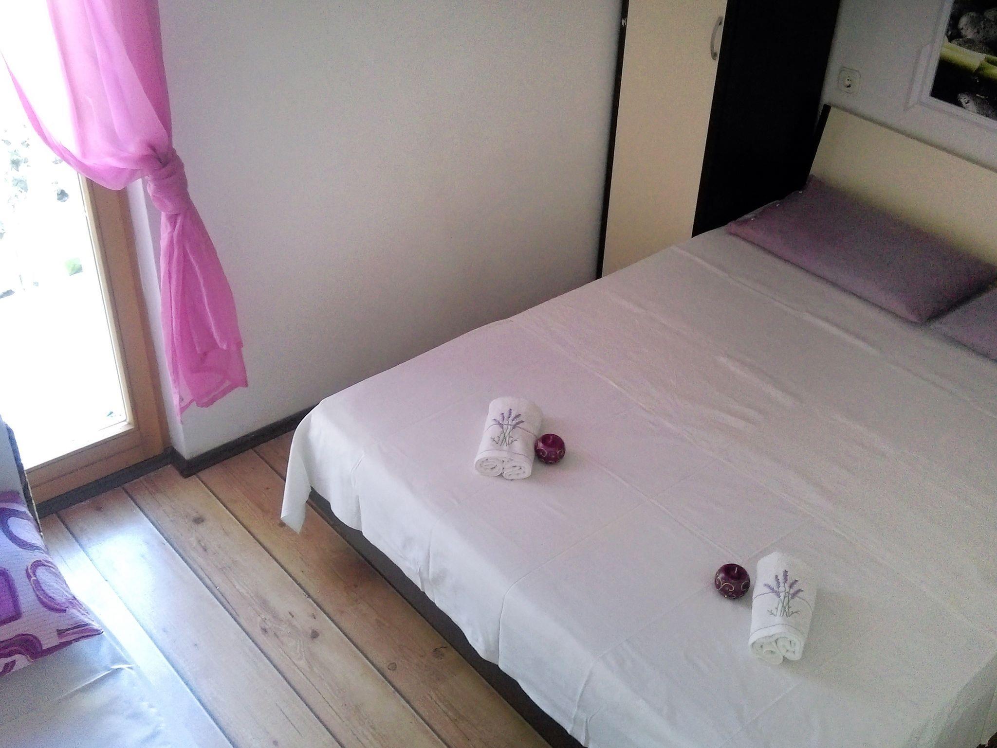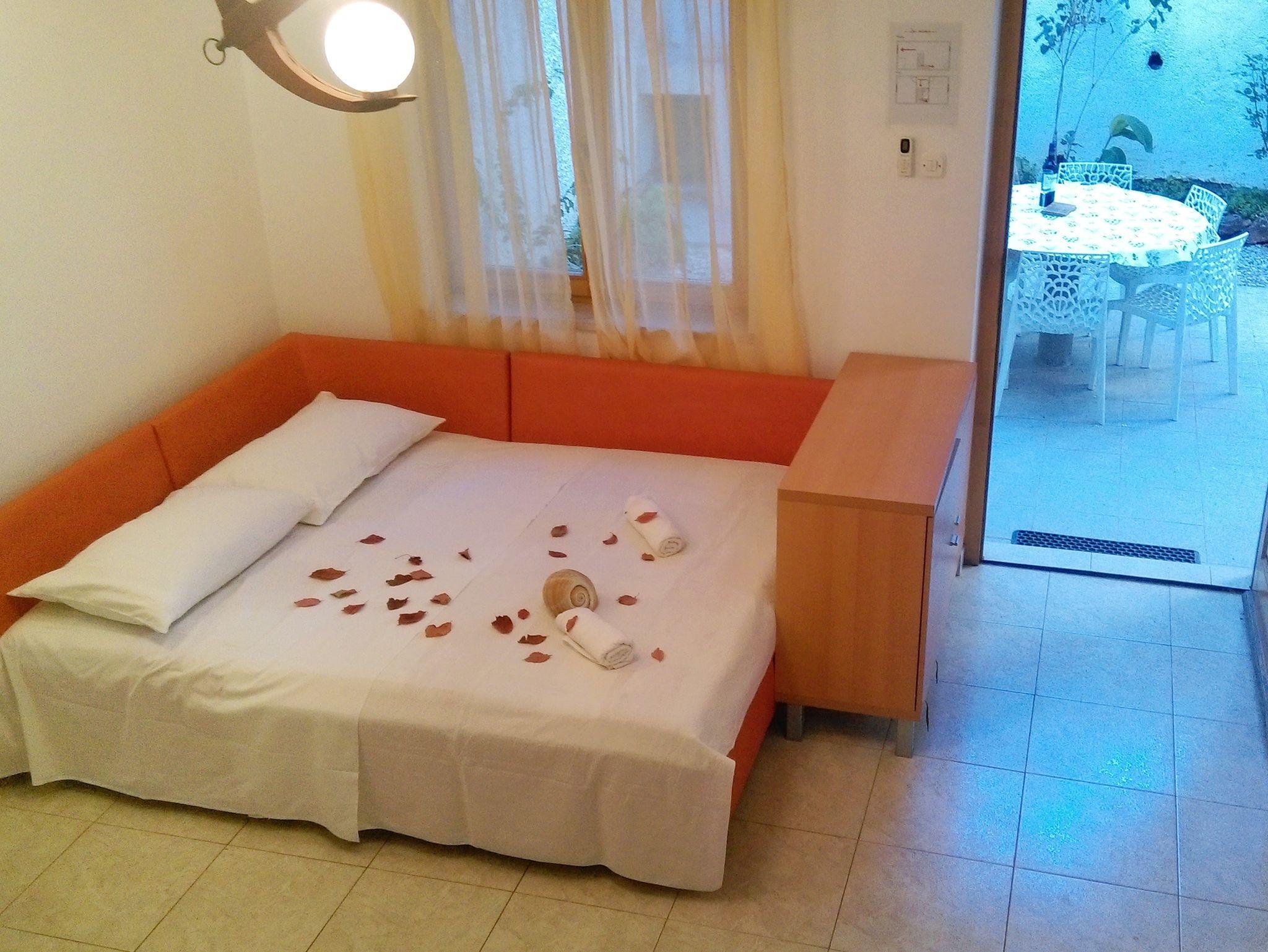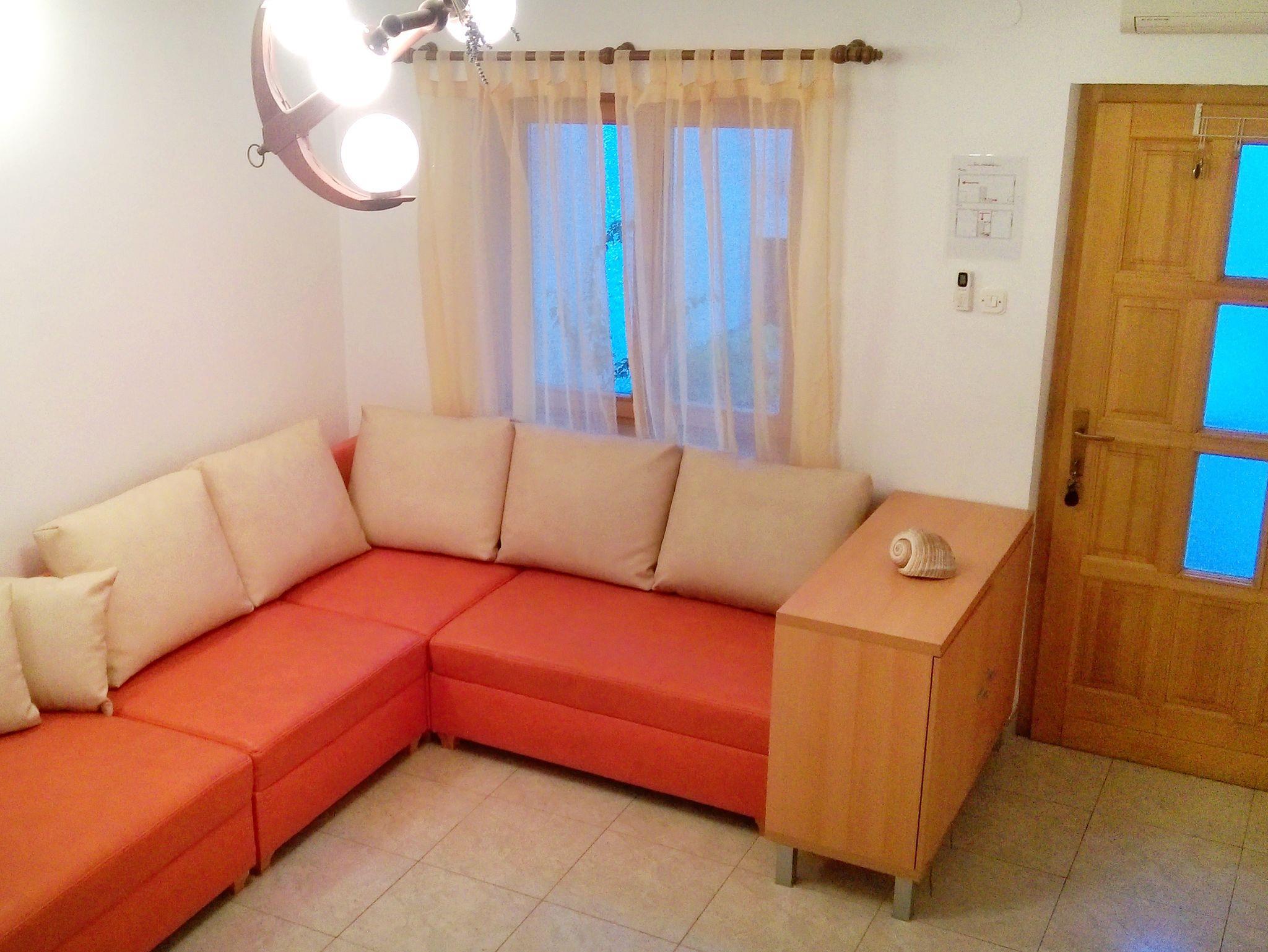 Ferienwohnung bietet Platz für 7 Gäste. Die Betten sind in Schlafzimmern, die es 2 gibt, und in Wohnzimmer, innerhalb einer Gesamtfläche von 53m2, angeordnet. Die Gäste haben eine eigene Terrasse zur Verfügung, auf der sie in warmen Sommernächten genießen können. Für vollen Genuss und Entspannung gibt es einen privaten Grill für Gäste dieser Unterkunft. In der Unterkunftseinheit besteht die Möglichkeit des Mitbringens von Haustieren gegen Aufpreis. IM PREIS INBEGRIFFEN: Kurtaxe, Endreinigung, Klimatisierung, Parkplatz, Internet, Kinderbett, Bügeleisen, Bügelbrett, Föhn. VERBINDLICHE ZUSÄTZLICHE KOSTEN: Aufzahlung für Kurzaufenthalte (prozentualer Zuschlag pro Nächtigungsanzahl: 30% - 1, 20% - 2, 10% - 3). UNVERBINDLICHE ZUSÄTZLICHE KOSTEN: Haustiere (5,00 € pro Nacht). Die Verfügbarkeit zusätzlicher Dienstleistungen in Ihrem reservierten Termin und die Preise derselben (falls nicht aufgeführt) müssen im Voraus überprüft werden. Zusätzliche Dienstleistungen die in der Zahlungsaufforderung nicht aufgeführt sind werden direkt beim Vermieter bezahlt, angenommen der Gast nutzt auch diese. Ermäßigung auf den Grundpreis: Gratistag 14=13 (bei einem Aufenthalt von 14 Tagen oder mehr erhalten Sie einen Gratistag für den Aufenthalt bis 31.12.26).