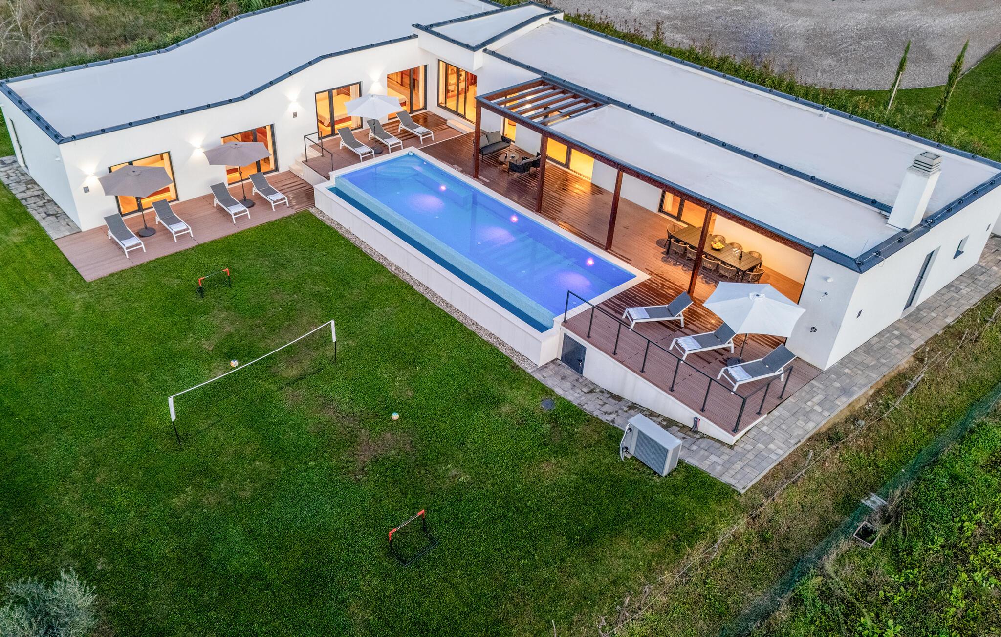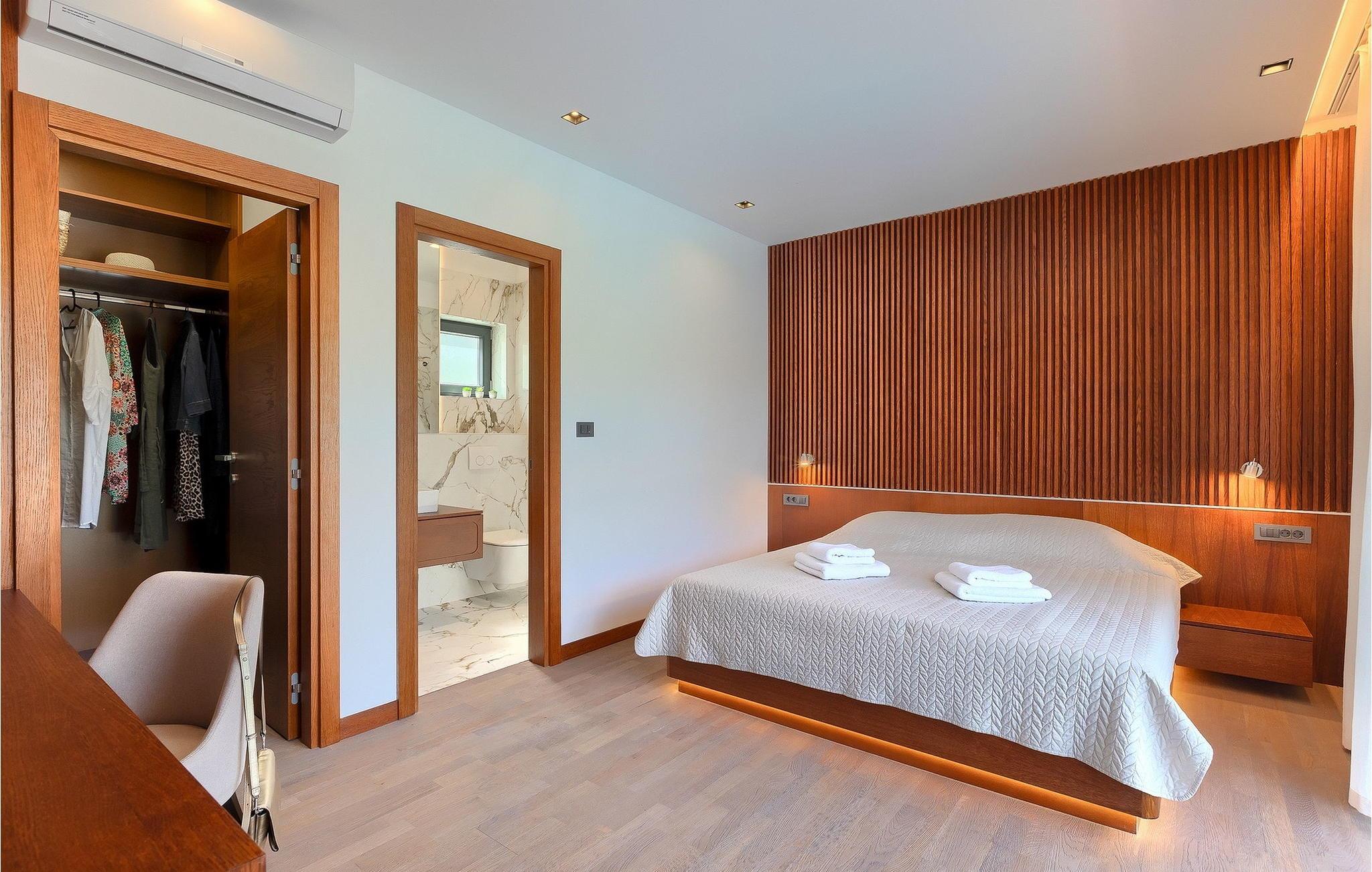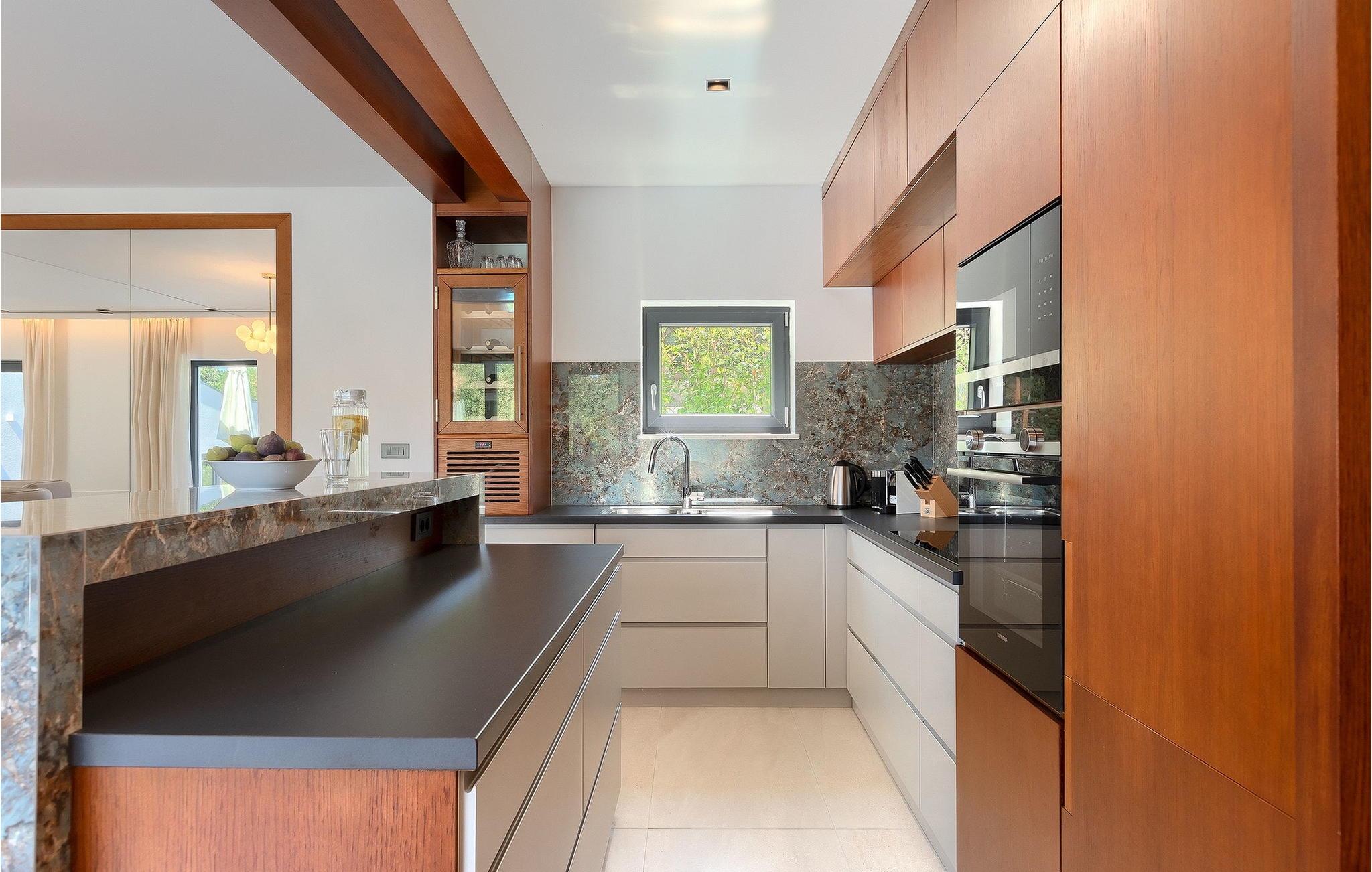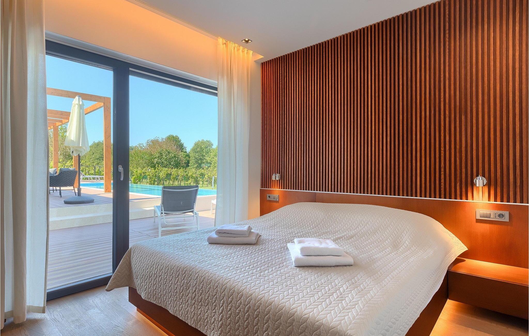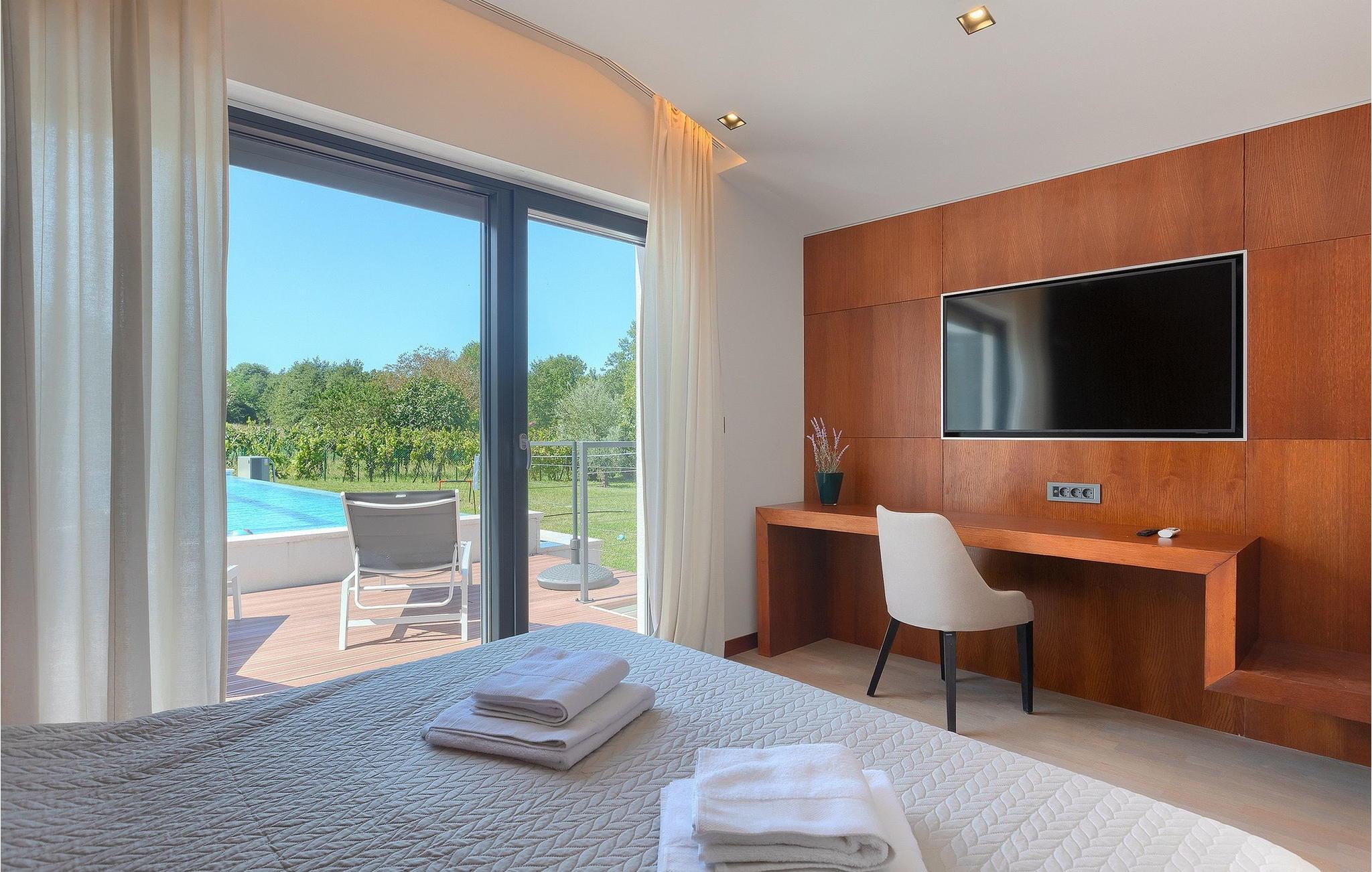 Inmitten grüner Landschaft, umgeben von Wald, Weinbergen, Oliven- und Feigenbäumen werden Sie die Ruhe und Abgeschiedenheit finden, nach der Sie sich so lange sehnen. Unsere Villa Istria Green ist wahrlich eine Ruheoase an der Ostküste Istriens, nur ca. 12km entfernt von Rabac. Die moderne Erdgeschossvilla mit 5 Schlafzimmern kann bis zu 10 Gäste beherbergen und bietet mehr als ausreichend Komfort für einen erholsamen Urlaub mit Familie und Freunden. Der erfrischende 48m2 große Swimming-Pool bildet neben dem weitläufigen Garten den Mittelpunkt der Villa Istria Green. Hier werden Sie mit Ihren Liebsten die besten Momente Ihres Urlaubs erleben: Erfrischen Sie sich im Pool, planschen Sie mit den Kindern, entspannen Sie auf einer der Sonnenliegen während die Teenies im Garten Fußball oder Volleyball spielen und genießen Sie die Sonne Kroatiens. Genießen Sie das gemeinsame Frühstück am Esstisch auf der großen Terrasse und verbringen Sie fröhliche Grillabende mit Ihren Liebsten während Sie lokale Spezialitäten auf dem Holzkohlegrill zubereiten. Das stilvolle Interieur ist hell und sehr gemütlich eingerichtet. Der offene voll klimatisierte Wohnbereich mit bequemer Couch und TV, der Essbereich und die voll ausgestattete Küche vermitteln ein Gefühl von "zu Hause". Fünf komfortable Schlafzimmer mit bequemen Doppelbetten versprechen erholsame Nächte und verfügen jeweils über ein eigenes Badezimmer mit Dusche. Jedes der Zimmer ist mit eigenem TV sowie einer Klimaanlage ausgestattet und bietet direkten Zugang zum Aussenbereich. Buchen Sie die luxuriöse Villa Istria Green und verbringen Sie einen unvergesslichen Urlaub mit Ihrer Familie umgeben von der unberührten Natur Istriens! Erleben Sie Istrien hautnah von seiner schönsten Seite und besuchen Sie die Villa Istria Green. Umgeben von einem Wald, Weinbergen und Olivenhainen liegt diese einzigartige Villa im kleinen Dorf Krsan, nur 12km vom nächsten Strand in Rabac entfernt. Abgeschieden und doch nicht allzu weit entfernt von Annehmlichkeiten wie Restaurants, Bars, Supermärkten und allem, was man sonst noch für einen sorgenfreien Urlaub braucht, ist die Lage perfekt, um Istrien kennenzulernen. Erkunden Sie das Herz Istriens und besuchen Sie Pazin, wo Sie neben großartiger Gastronomie auch eine Zipline erwartet, die über die Schlucht des Paziner Schlosses führt. Genießen Sie die besten Weine in Motovun oder schlendern Sie durch die Gassen der kleinsten Stadt Kroatiens: Hum. Machen Sie einen Tagesausflug in die historische Stadt Pula oder entdecken Sie die schönsten Strände der Küste. Lassen Sie sich begeistern, verbringen Sie einen Traumurlaub und kehren Sie bald zurück. Bitte beachten Sie, dass diese Unterkunft auf Anfrage möglicherweise jüngere Besuchergruppen akzeptiert. Bitte kontaktieren Sie uns, um dies zu überprüfen. Als jüngere Besuchergruppe gilt in dieser Unterkunft eine Gruppe von Personen im Alter von 25 Jahren oder jünger. Wenn Sie eine jüngere Besuchergruppe sind [oder einen Junggesellenabschied planen], können Sie bei der Ankunft zur Zahlung einer zusätzlichen Kaution aufgefordert werden. Sollten Schäden durch die Gäste Ihrer Gruppe entstanden sein, dann werden die Kosten für die Reparatur entstandener Schäden/Ersatz beschädigter Gegenstände von der Kaution abgezogen. Die Temperatur des beheizten Schwimmbades hängt von äußeren Faktoren, einschließlich der Wetterbedingungen, ab und daher kann die Wassertemperatur nicht garantiert werden.