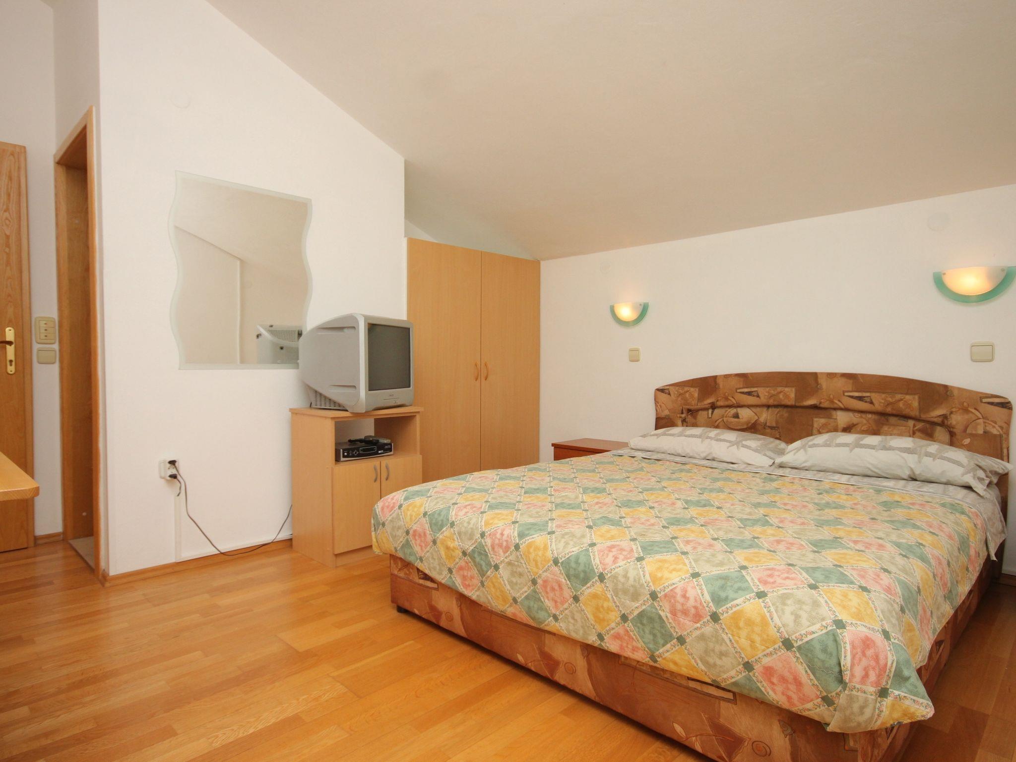 Studio bietet Platz für 2 Gäste. Die Betten sind in Schlafzimmern, die es 1 gibt, innerhalb einer Gesamtfläche von 24m2, angeordnet. Die Gäste haben eine eigene Terrasse zur Verfügung, auf der sie in warmen Sommernächten genießen können. Das Studio-Apartment bietet Meerblick. Es ist erlaubt, Speisen auf dem Gemeinschafts-Grill vorzubereiten. IM PREIS INBEGRIFFEN: Kurtaxe, Endreinigung, Klimatisierung, Parkplatz, Internet, Kinderbett, Bügeleisen, Föhn. VERBINDLICHE ZUSÄTZLICHE KOSTEN: Aufzahlung für Kurzaufenthalte (prozentualer Zuschlag pro Nächtigungsanzahl: 30% - 1, 20% - 2, 10% - 3). Die Verfügbarkeit zusätzlicher Dienstleistungen in Ihrem reservierten Termin und die Preise derselben (falls nicht aufgeführt) müssen im Voraus überprüft werden. Zusätzliche Dienstleistungen die in der Zahlungsaufforderung nicht aufgeführt sind werden direkt beim Vermieter bezahlt, angenommen der Gast nutzt auch diese.