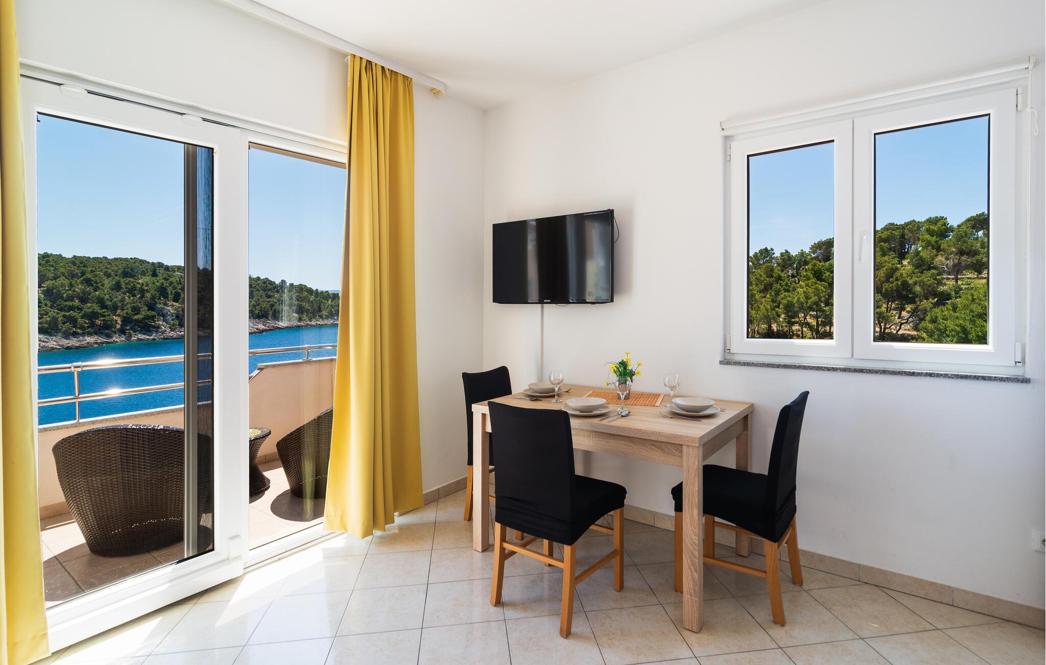 Lassen Sie sich in dieser komfortablen Ferienwohnung vom wunderschönen Meerblick verzaubern.