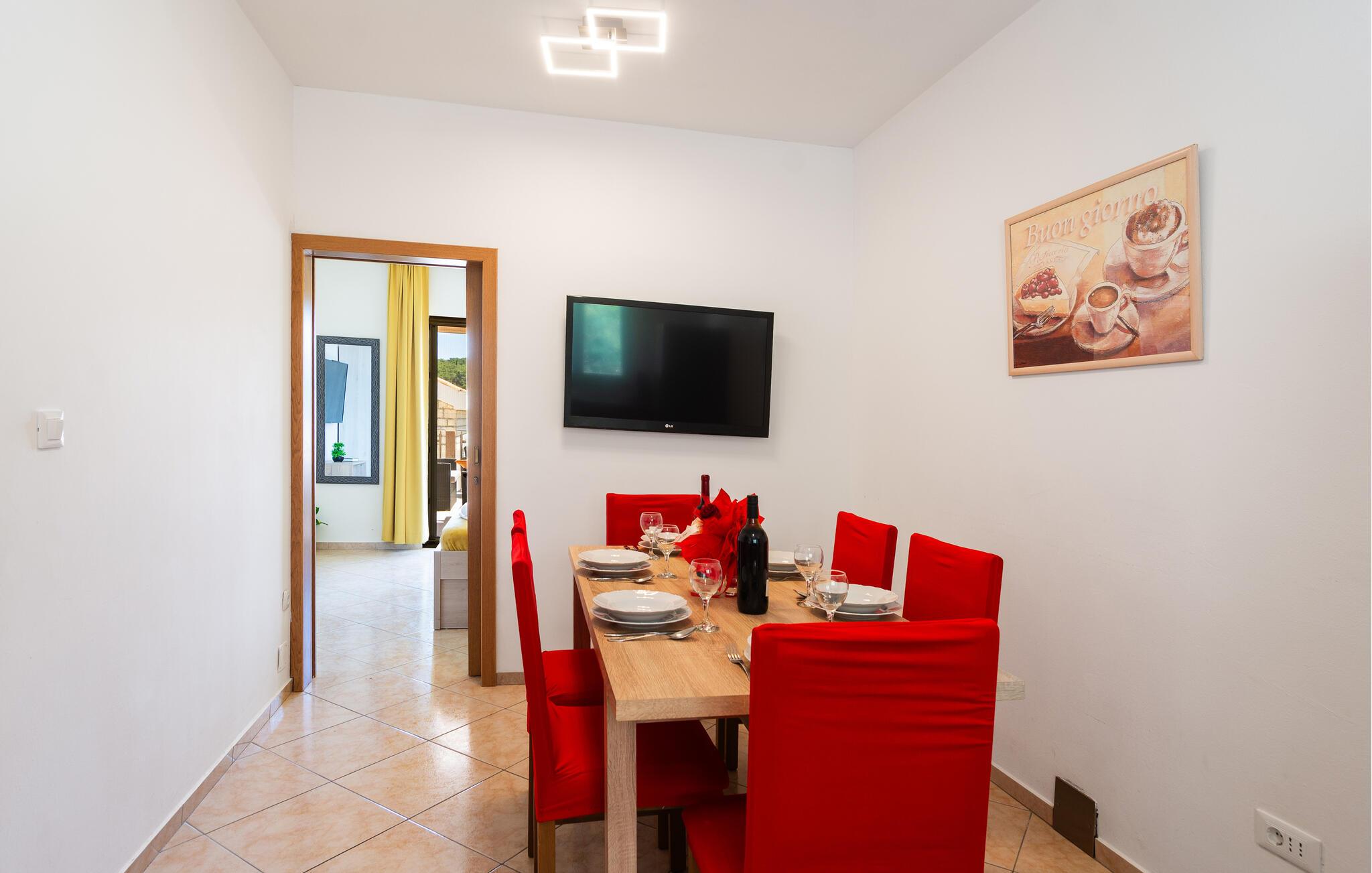 Mit einem wunderschönen Blick aufs Meer vor Ihrer Haustür werden Sie in dieser liebevoll eingerichteten Ferienwohnung begrüßt. Zaubern Sie hier kulinarische Highlights und nehmen Sie am einladenden Esstisch Platz. Planen Sie Ihre Unternehmungen für den bevorstehenden Tag und entspannen Sie abends bei einem Brettspiel.
