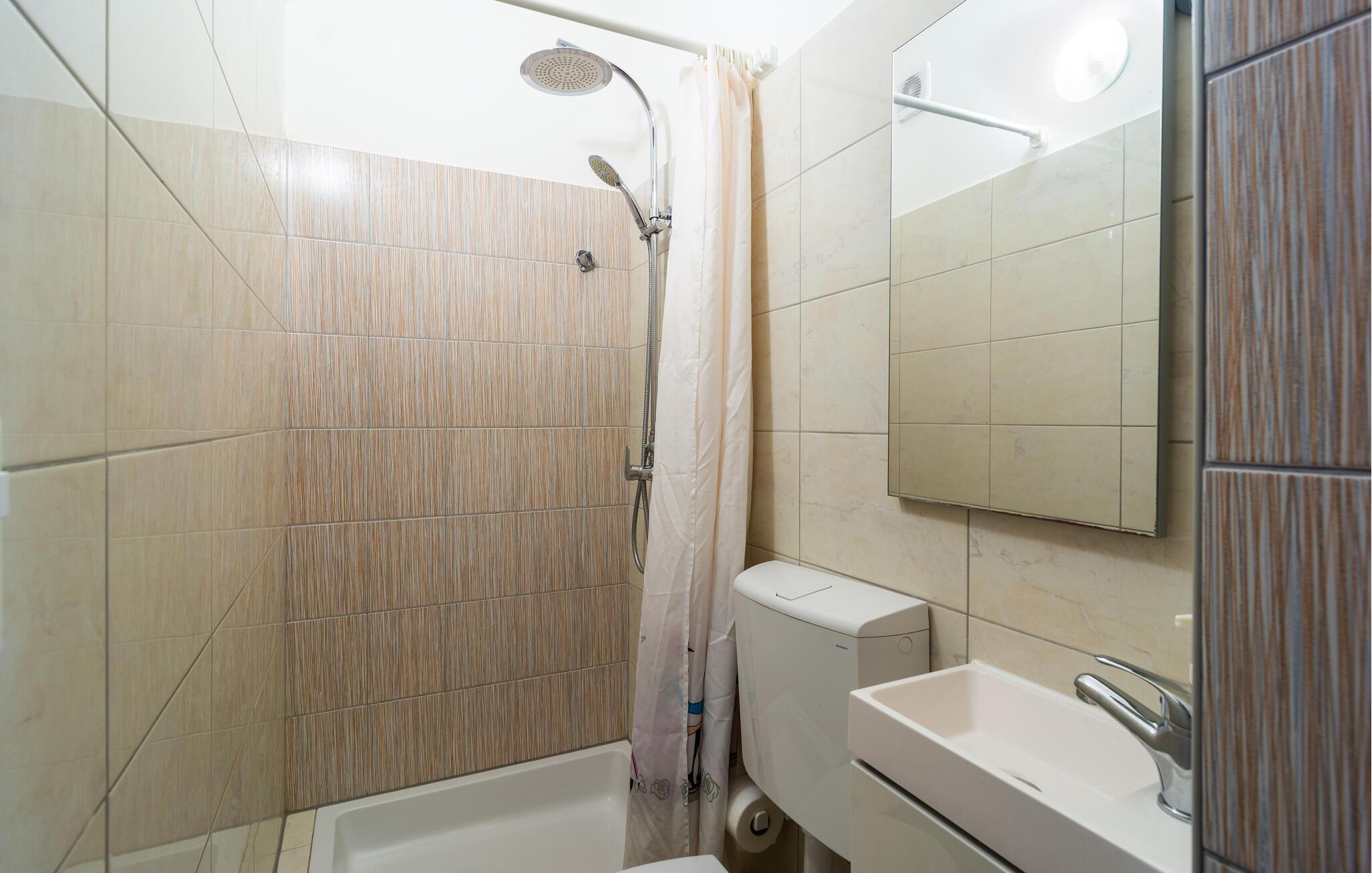 - WC mit warmem und kaltem Wasser, Dusche