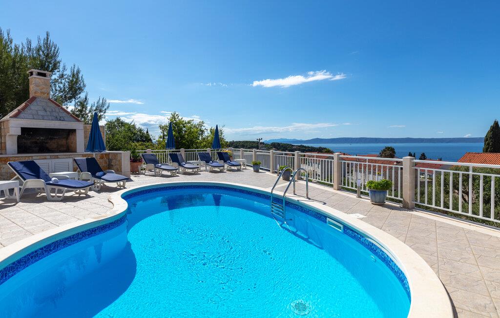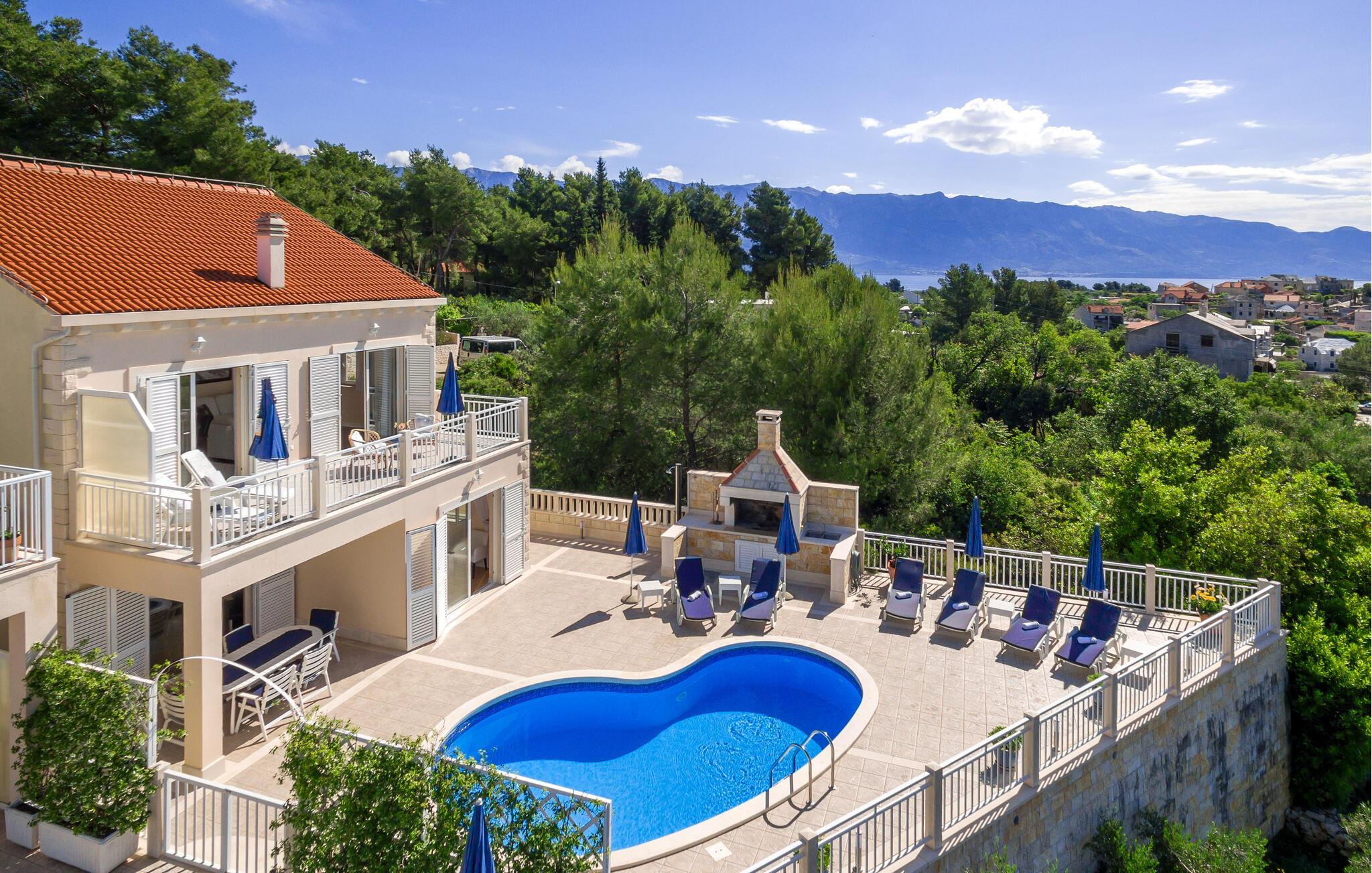 Genießen Sie eine erholsame Auszeit in Sumartin inmitten der malerischen Landschaft von Brac. Ihr Ferienhaus bietet reichlich Platz für die ganze Familie und ist der ideale Rückzugsort für einen erholsamen Urlaub. Genießen Sie gleich morgens die Sonne auf den Sonnenliegen am Pool oder oben auf dem Balkon. Ihr Frühstück können Sie am eleganten Esstisch im Innenbereich einnehmen. Genießen Sie den herrlichen Meerblick von der großzügigen Terrasse, die mit einem privaten Swimmingpool und einem gemütlichen Kamin ausgestattet ist, während Sie den Blick auf das glitzernde Meer schweifen lassen.