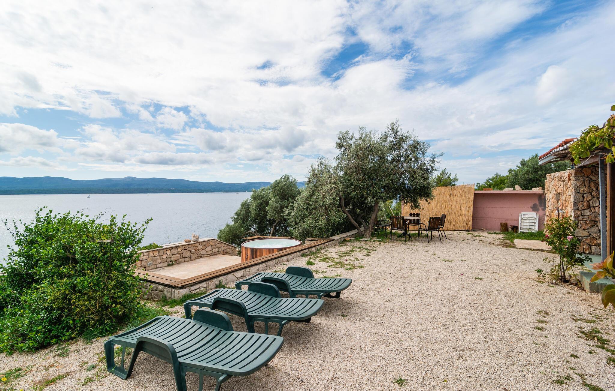 Die großzügige überdachte Terrasse lädt zu entspannten Stunden im Freien ein, mit einem wunderbaren Blick auf das glitzernde Meer und den berühmten Strand Zlatni Rat. Genießen Sie Ihre Mahlzeiten im Freien und verbringen Sie unvergessliche Abende unter dem Sternenhimmel. Ein besonderes Highlight ist der Whirlpool im Außenbereich, der Ihnen Entspannung sowie einen herrlichen Blick auf die Küste bietet. Lassen Sie den Tag mit einem entspannten Bad ausklingen und genießen Sie die atemberaubende Aussicht. Mit Liegestühlen und Sitzgelegenheiten direkt am Meer können Sie Sonne tanken und die Ruhe der Natur genießen.