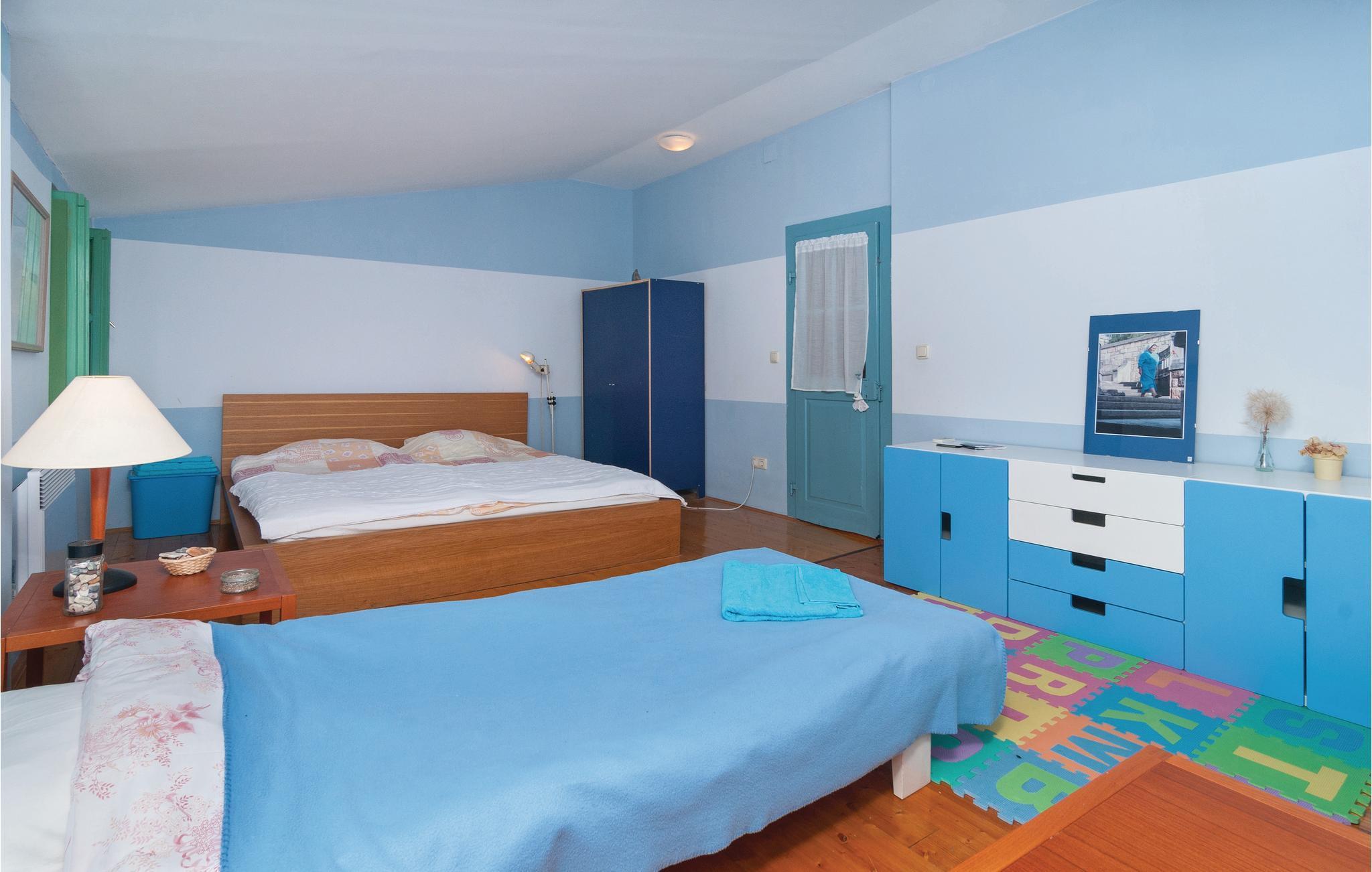 Dieses Reihen-Steinhaus liegt im Zentrum, etwa 60 m vom Meer entfernt, an der Riviera der Fischerortschaft Milna. Die Unterkunft ist nach heutigem Standard und mit ethnografischen Details aus der Geschichte dieses Hauses eingerichtet. Im Erdgeschoß sind Küche, Essbereich und Ausgang auf die umzäunte Hofterrasse, separates Wohnzimmer, Schlafzimmer und Bad mit Toilette, Waschbecken und Waschmaschine. Im ersten Stock, mit höchster Deckenhöhe von 230 cm und Türrahmen von 180 cm, sind noch zwei Schlafzimmer sowie Bad mit Toilette, Waschbecken und Badewanne. Sowohl vom Flur als auch vom Zimmer Nr. 3 haben Sie Zugang ins Bad. Die Etagen sind mit Holz-Innentreppen verbunden. In unmittelbarer Nähe befinden sich Bäckerei, Kioskladen, Post, sowie Cafés und Restaurants am Meer entlang.