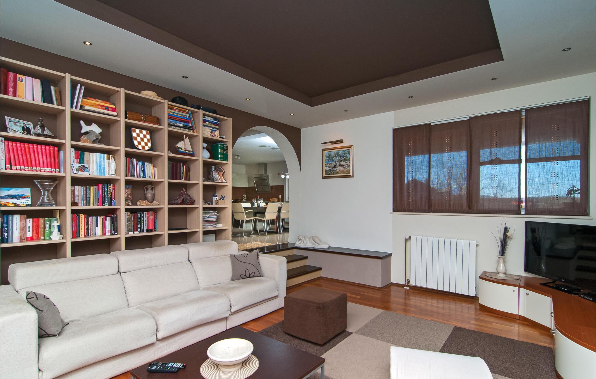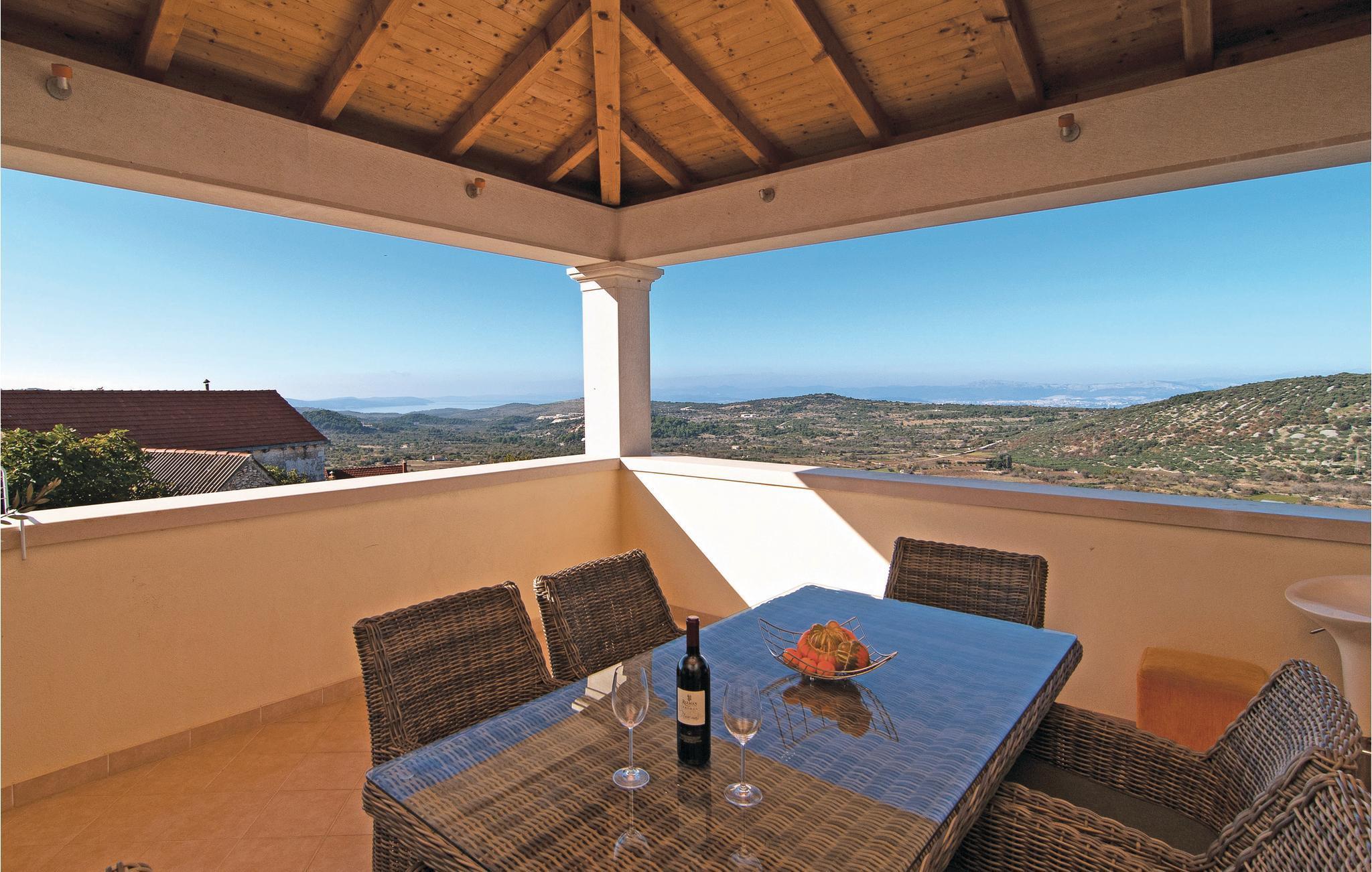 Verbringen Sie Ihren Urlaub in diesem schönen Ferienwohnung mit Swimmingpool in Nerezisca, in ländlicher Umgebung auf der Insel Brac. Entspannen Sie in diesem herrlichen Ambiente. Im Erdgeschoss sind ein Wohnbereich mit Kamin und einem Tisch für 15 Personen sowie ein Schlafzimmer. Vor dieser Einheit ist eine Terrasse mit kleinem Steintisch. Seitlich davon ist die Treppe zur nächsten Etage. Unterhalb der Terrasse ist der große beheizbare Swimmingpool, zu ihm führt auch eine Treppe von der anderen Seite des Hauses. Genießen Sie die herrliche Aussicht von der überdachten Terrasse im 1. Stock. Besuchen Sie den höchsten Punkt der Insel, Vidova Gora.