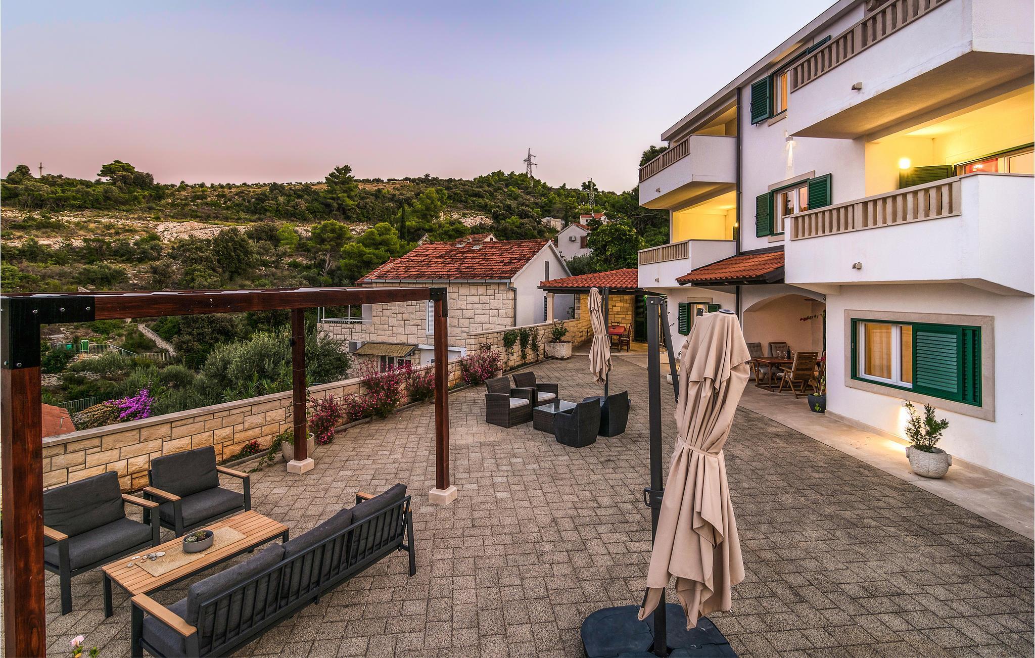 Feriendomizil auf der größten mitteldalmatinischen Insel - Brac. Das Ferienhaus mit Pool ist geräumig und für einen gemeinsamen Urlaub von mehreren Familien eingerichtet. Es besteht aus sechs getrennten, gemütlich eingerichteten Wohneinheiten. Neben dem schönen Interieur befindet sich eine geräumige Terrasse und der Pool für Ihre Erfrischung. Mehrere Terrassen umgeben das Haus und bieten einen schönen Ausblick auf den schönen Kiesstrand vor dem Ferienobjekt, das Meer und den Canyon des Flusses Cetina auf dem Festland. Neben dem Haus liegt eine geschlossene Terrasse mit einer Sommerküche und Grill. Im geräumigen und eingezäunten Außenbereich ist auch ein Spielbereich für Kinder. Auf dem Grundstück gibt es noch ein Haus, indem sich der Hauseigentümer teilweise aufhält, wenn er Gartenpflege oder Ähnliches betreibt.