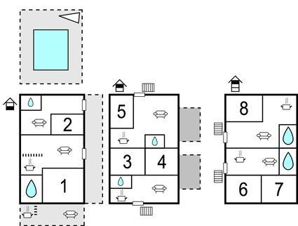Badezimmer (nr. 6) - WC. Warmes und kaltes Wasser. Dusche
