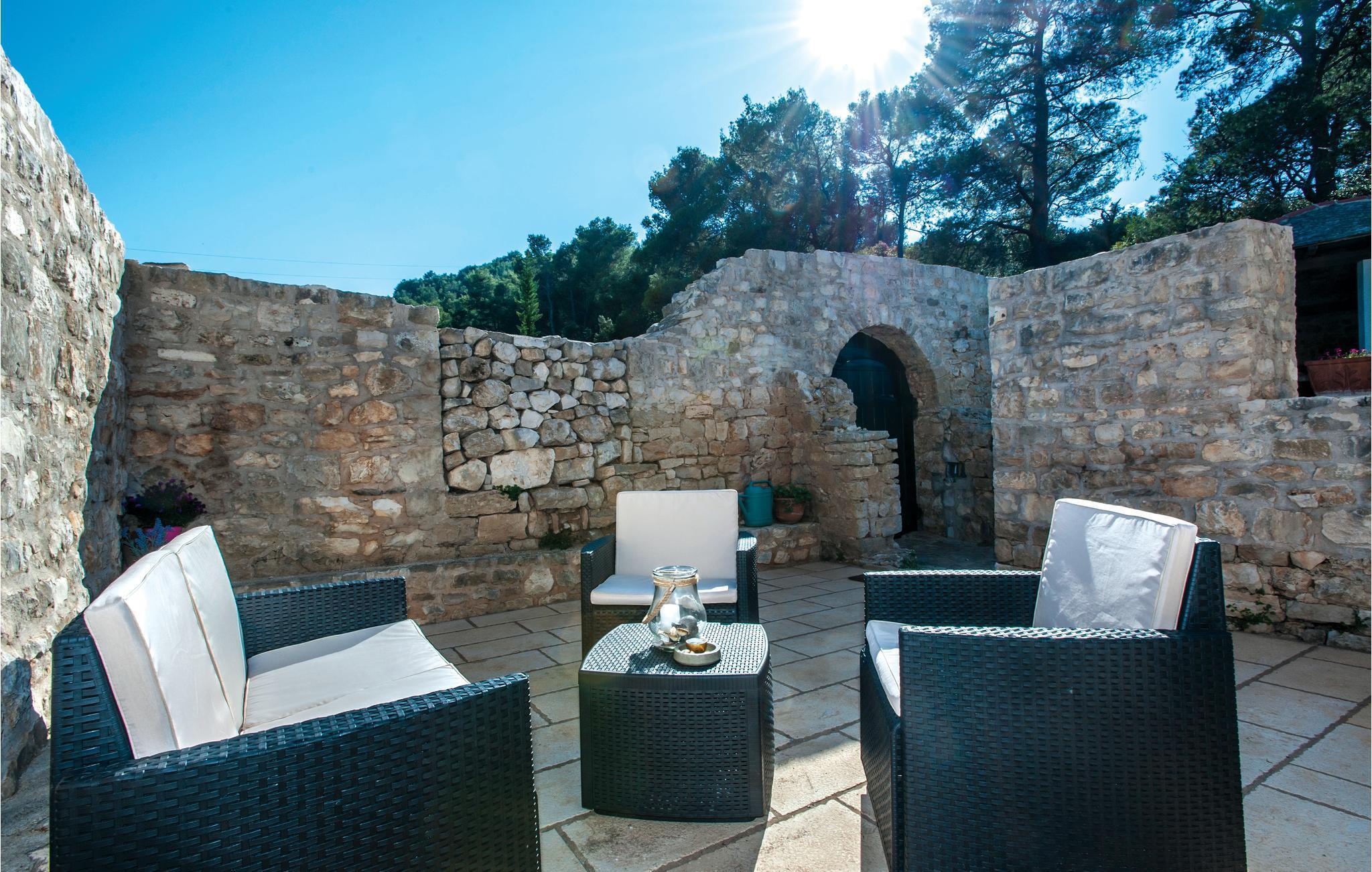 Nur einen Hauch vom bekanntesten Sandstrand in der Bucht Lovrecina entfernt, auf der Insel Brac, befindet sich diese schöne Steinvilla. Das Ferienhaus stammt aus dem 12. Jahrhundert und auch bei der Renovierung wurde darauf geachtet, den Original-Stil aus Stein und Holz beizubehalten. Die schöne Einrichtung bietet genügend Platz für eine Familie. Im Erdgeschoss befindet sich die Küche, die auch einen Steingrill hat, so dass Sie leckere Grillgerichte zubereiten können. Vom komfortablen Wohnbereich gelangen Sie durch eine Innentreppe zum Obergeschoss, wo die niedrigste Deckenhöhe 1m beträgt. Hier erwarten Sie die Schlafräume, die jeweils über ein eigenes Badezimmer verfügen. Der umzäunte Garten verleiht durch die erneuerten Steinruinen eine besondere Atmosphäre. Ebenso steht Ihnen eine überdachte Terrasse mit Aussengrill zur Verfügung. An der Bucht gibt es ein Restaurant, welches nur in den Sommermonaten geöffnet ist. Ebenso besteht die Möglichkeit Reitstunden zu nehmen. Die Bucht Lovrecina erreichen Sie über eine enge, teilweise betonierte Strasse, einen Fußweg oder mit dem Boot.