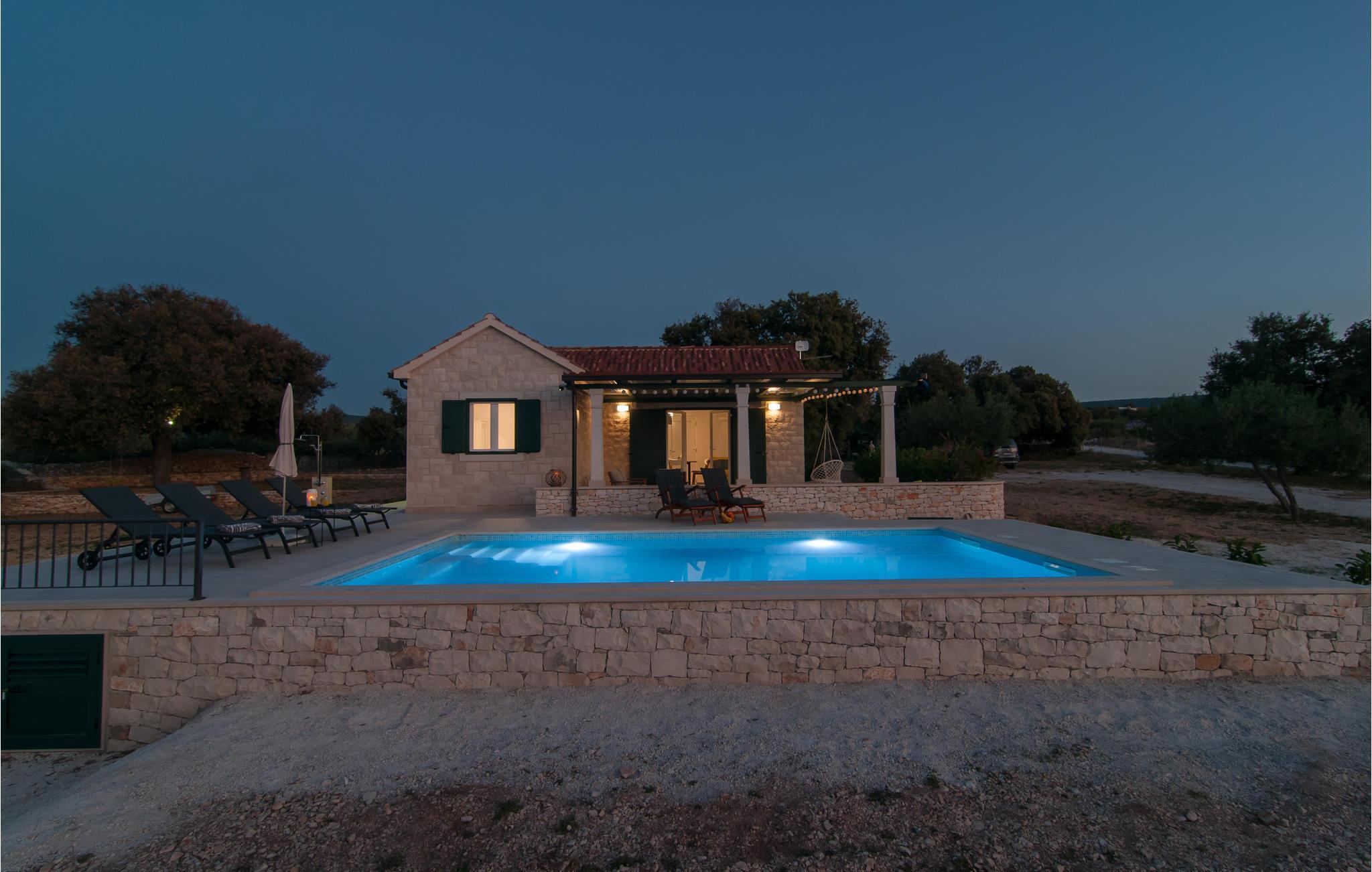 Das Haus liegt auf einem großzügigen eingezäunten Grundstück in einem gepflegten Olivenhain mit Panoramablick auf das Meer. Das Haus besteht aus zwei schönen Schlafzimmern, Bad und Wohnzimmer mit Küche und Esszimmer. Das Wohnzimmer öffnet sich auf eine Terrasse mit einem wunderschönen Panoramablick auf das Meer, die Berge und die Stadt Postira.