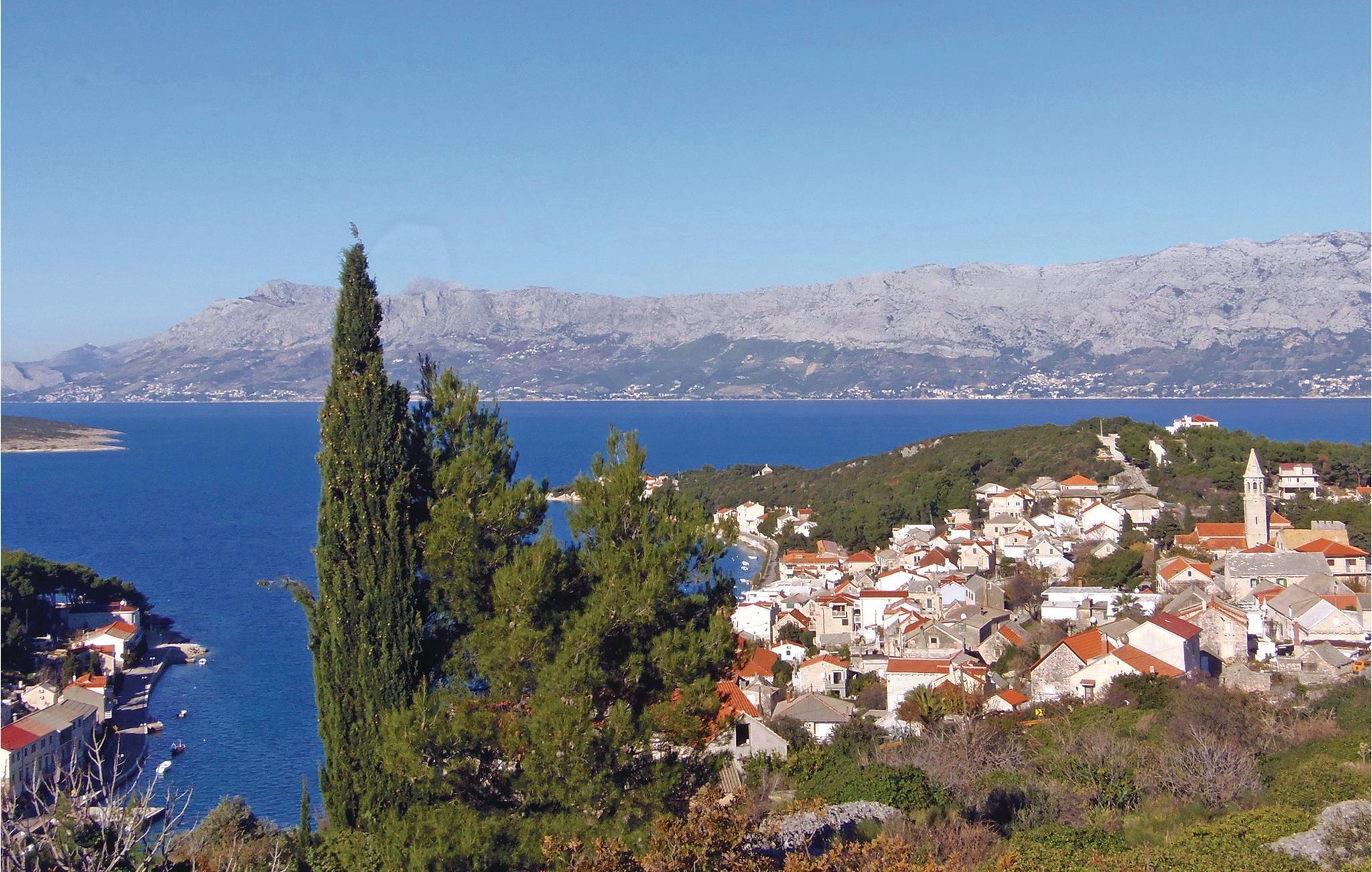 Verbringen Sie einen angenehmen Sommerurlaub auf der Insel Brac, in dieser gemütlich eingerichteten Doppelhaushälfte für 5 Personen. Das Feriendomizil befindet sich in ruhiger Lage, auf einer Anhöhe, außerhalb des Dorfes Povlja, wodurch sich ein wunderschöner Panoramablick auf das Meer und die Berge bietet. Zum Anwesen gehört ein großzügiges und gemeinsames Grundstück, auf dem noch zwei weitere moderne Häuser stehen, die allerdings nicht genutzt werden. Das Ferienhaus besteht aus zwei Schlafzimmern, einer Küche mit Wohn- und Essbereich sowie einer großen Terrasse. Stromversorgung über Solarenergie. Über einen Fußweg erreichen Sie die nächste und einsam gelegene Bucht mit Fels- und Kiesstrand. Die letzten 350 m der Zufahrt zum Haus sind aus Schotter.