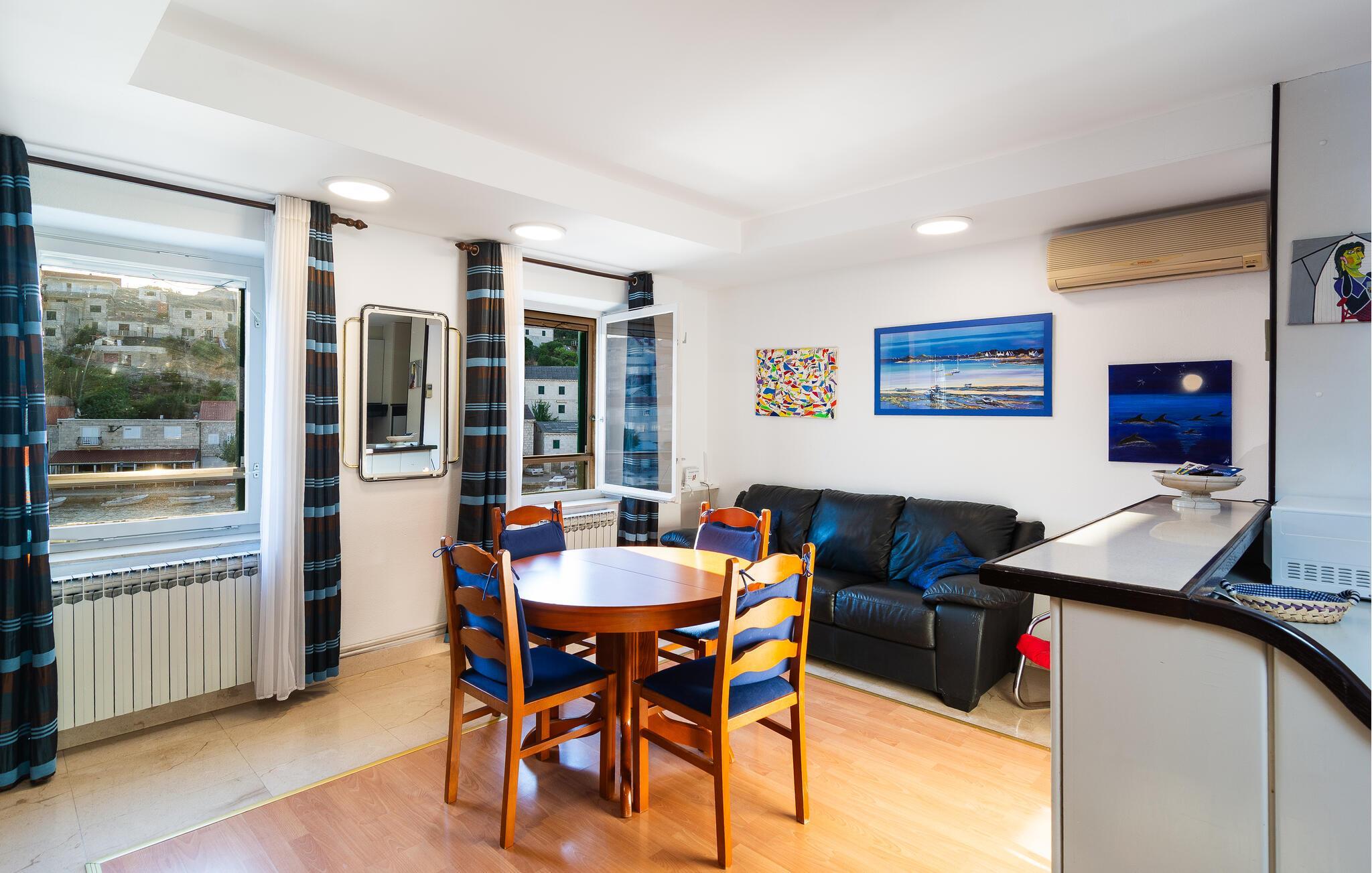 Willkommen in Ihrer Ferienwohnung in Povlja auf der malerischen Insel Brac. Diese Unterkunft in der ersten Reihe zum Meer bietet die ideale Basis für einen entspannten Urlaub. Nur wenige Meter trennen Sie vom kristallklaren Wasser und dem idyllischen Kiesstrand. Die Wohnung befindet sich im zweiten Stock eines traditionellen Steinhauses und bietet Platz für die ganze Familie. Der helle Wohn- und Essbereich lädt mit seiner einladenden Atmosphäre zu gemeinsamen Mahlzeiten und entspannten Stunden ein. Genießen Sie den Blick aus den Fenstern, der das mediterrane Flair des Ortes widerspiegelt. Beginnen Sie Ihren Tag mit einer Tasse Kaffee auf der Terrasse und anschließend einem Spaziergang entlang der Promenade.