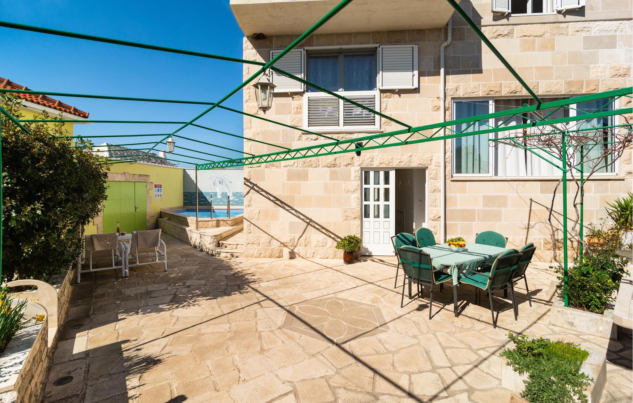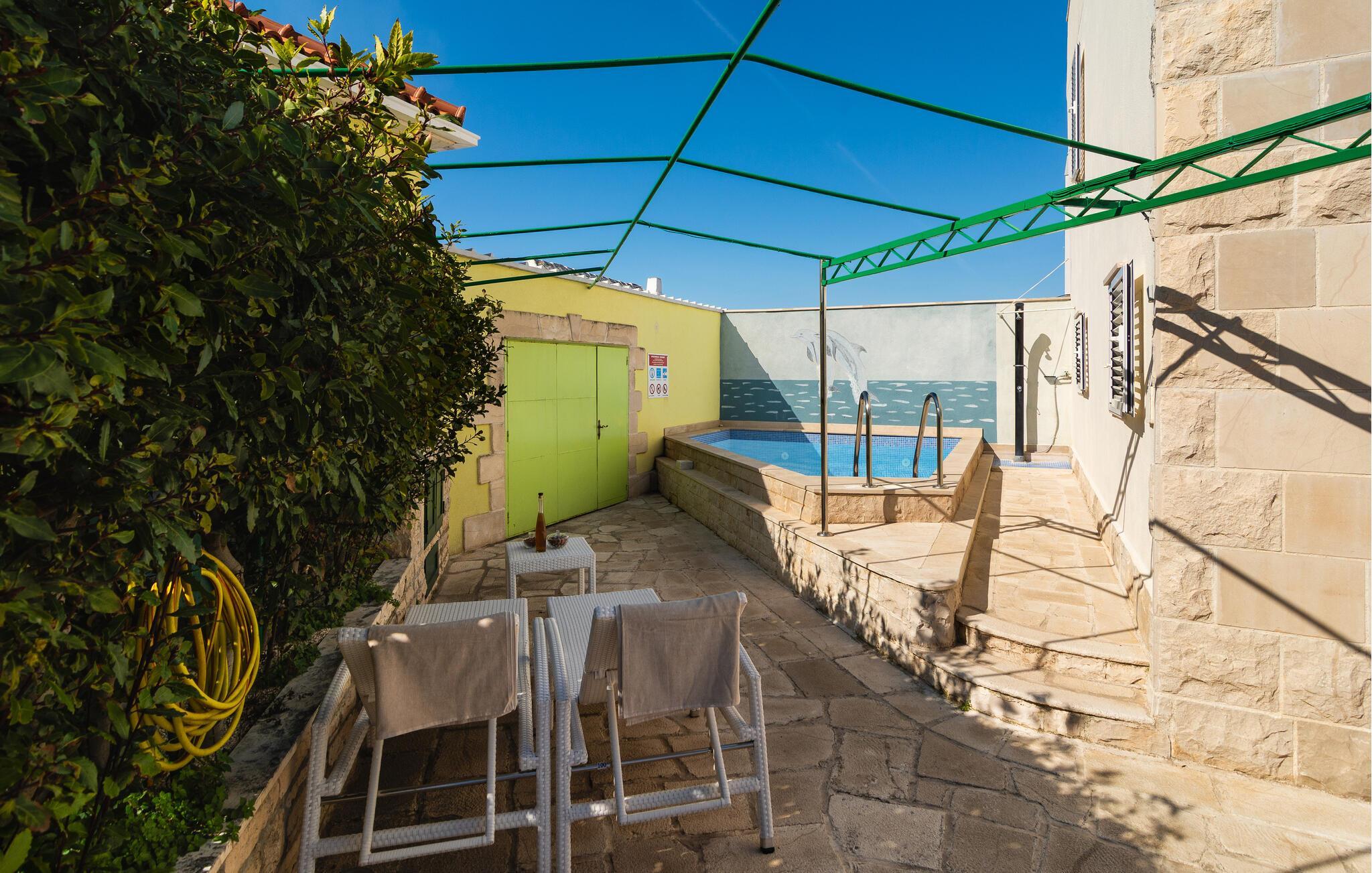 Diese wunderschöne Villa in Sumartin auf der Insel Brac lädt Sie zu einem unvergesslichen Aufenthalt ein. Die großzügige, lichtdurchflutete Unterkunft verbindet modernen Komfort mit mediterranem Charme. Das Herzstück ist das stilvoll eingerichtete Wohnzimmer mit einer offenen, voll ausgestatteten Küche und einem gemütlichen Essbereich in denen Sie als Familie zusammenkommen können. Die Schlafzimmer mit eigenem Bad sorgen für Ihre Privatsphäre und Erholung. Verbringen Sie entspannte Stunden auf der überdachten Terrasse oder erfrischen Sie sich im privaten Pool. Für Ihre Familie gibt es einen Spielplatz und eine Lounge mit Grillmöglichkeiten oder Sie genießen den Meerblick von der Dachterrasse.
