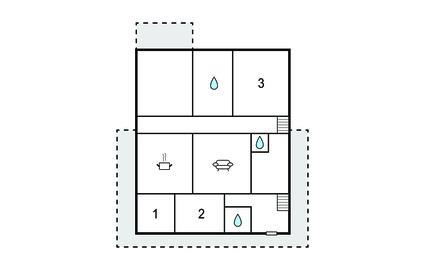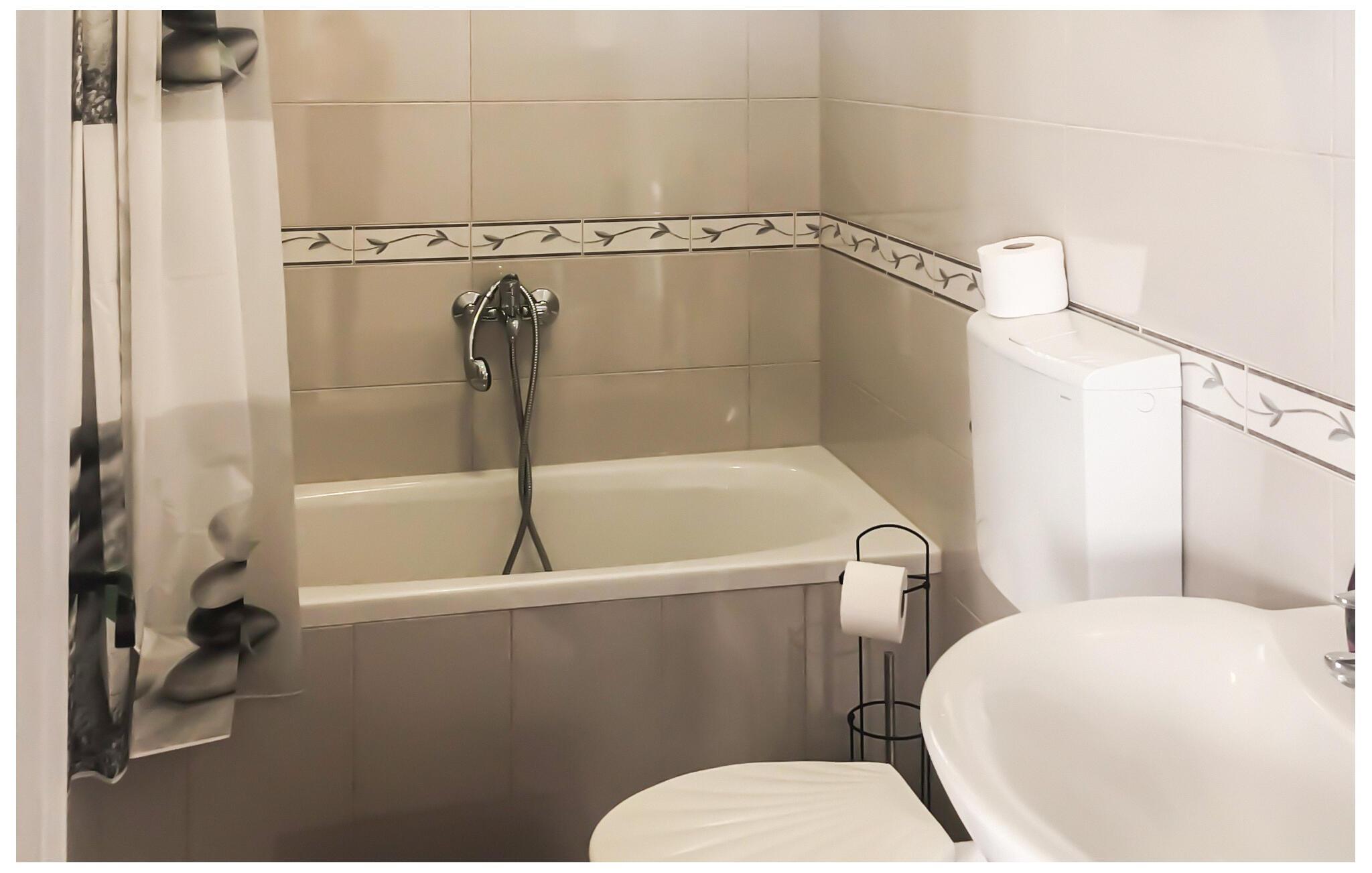 Badezimmer (nr. 3) - WC. Warmes und kaltes Wasser. Badewanne