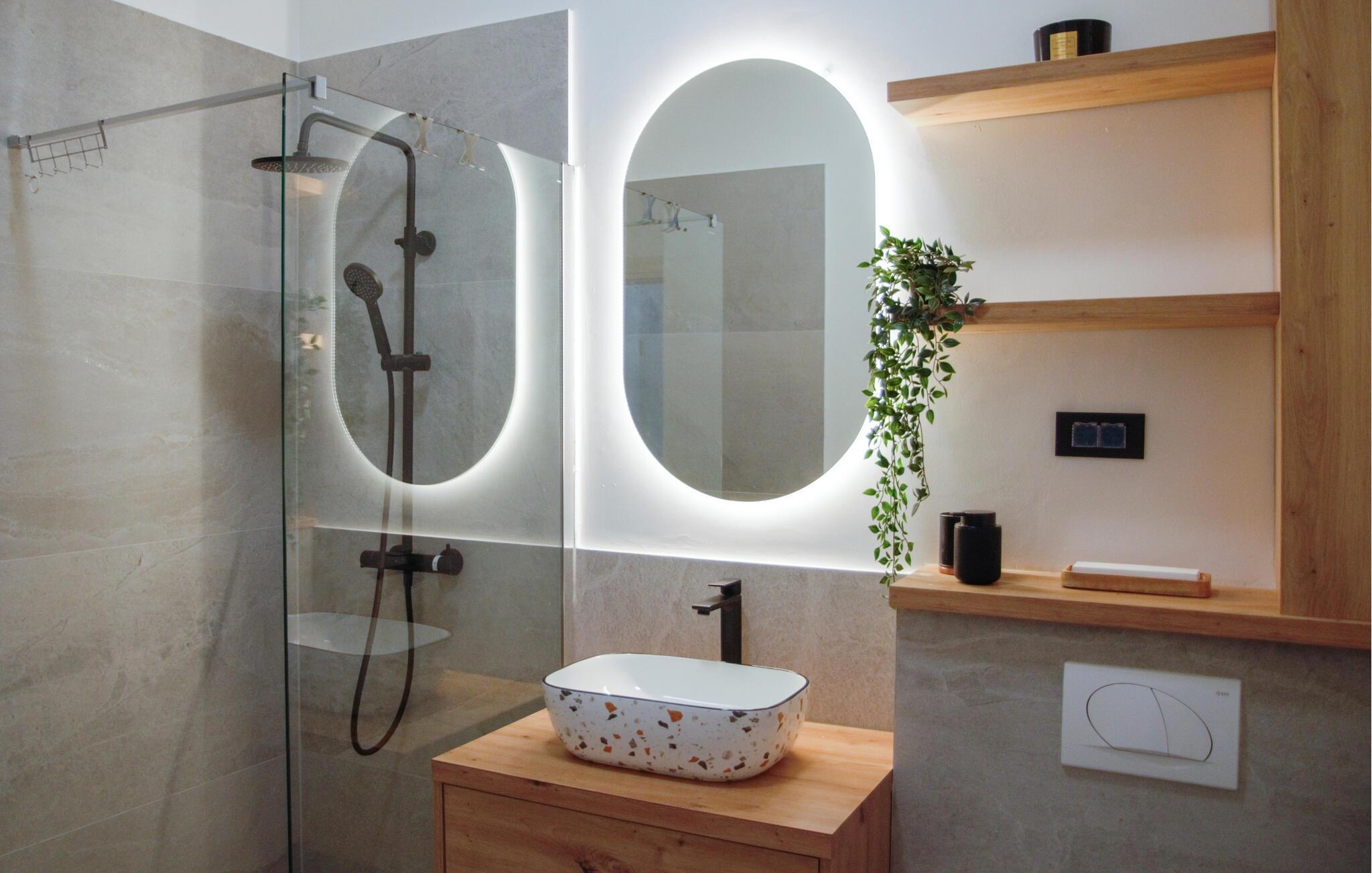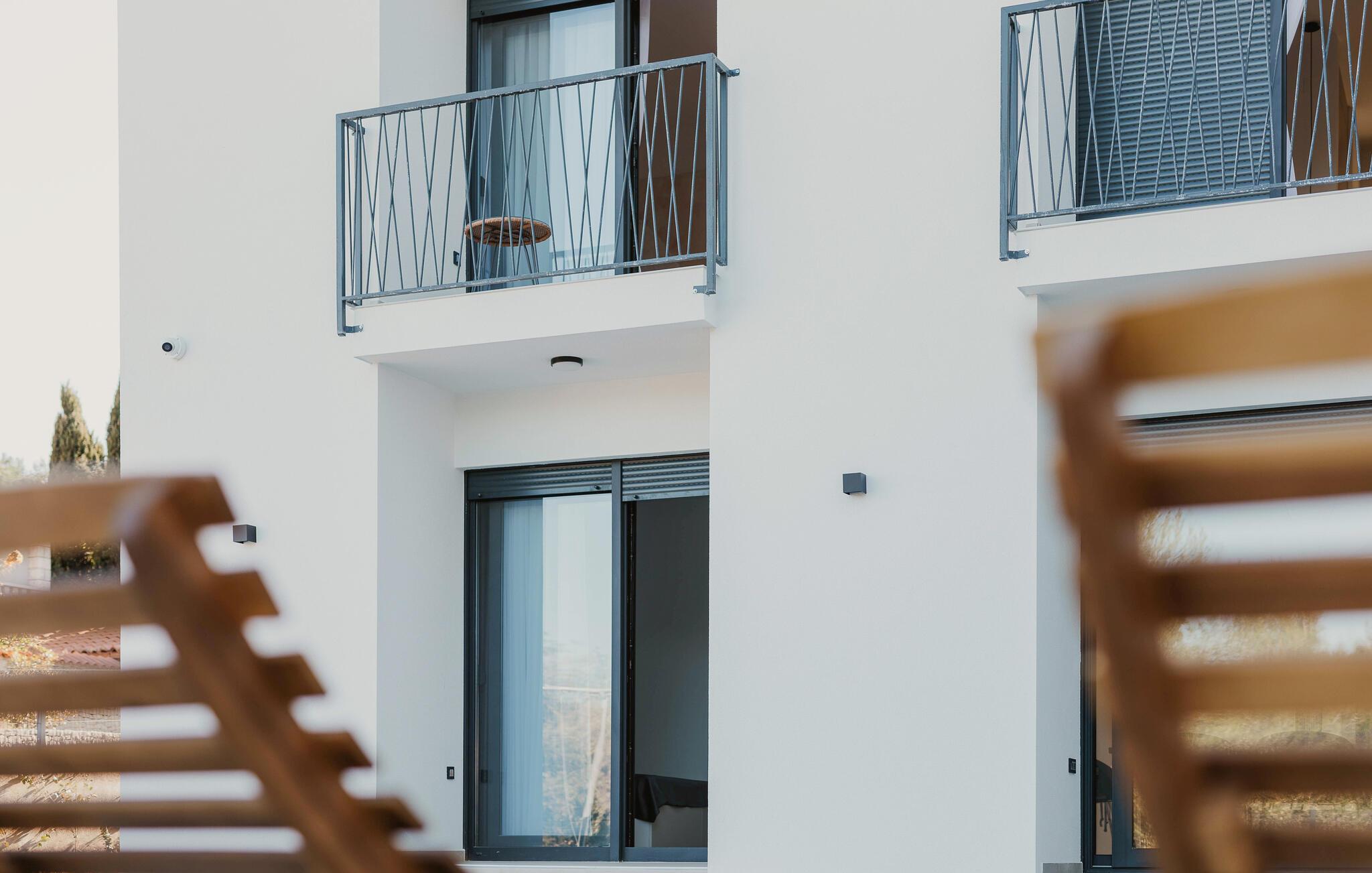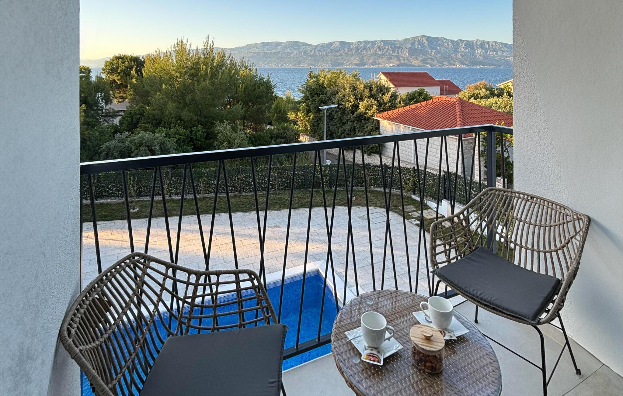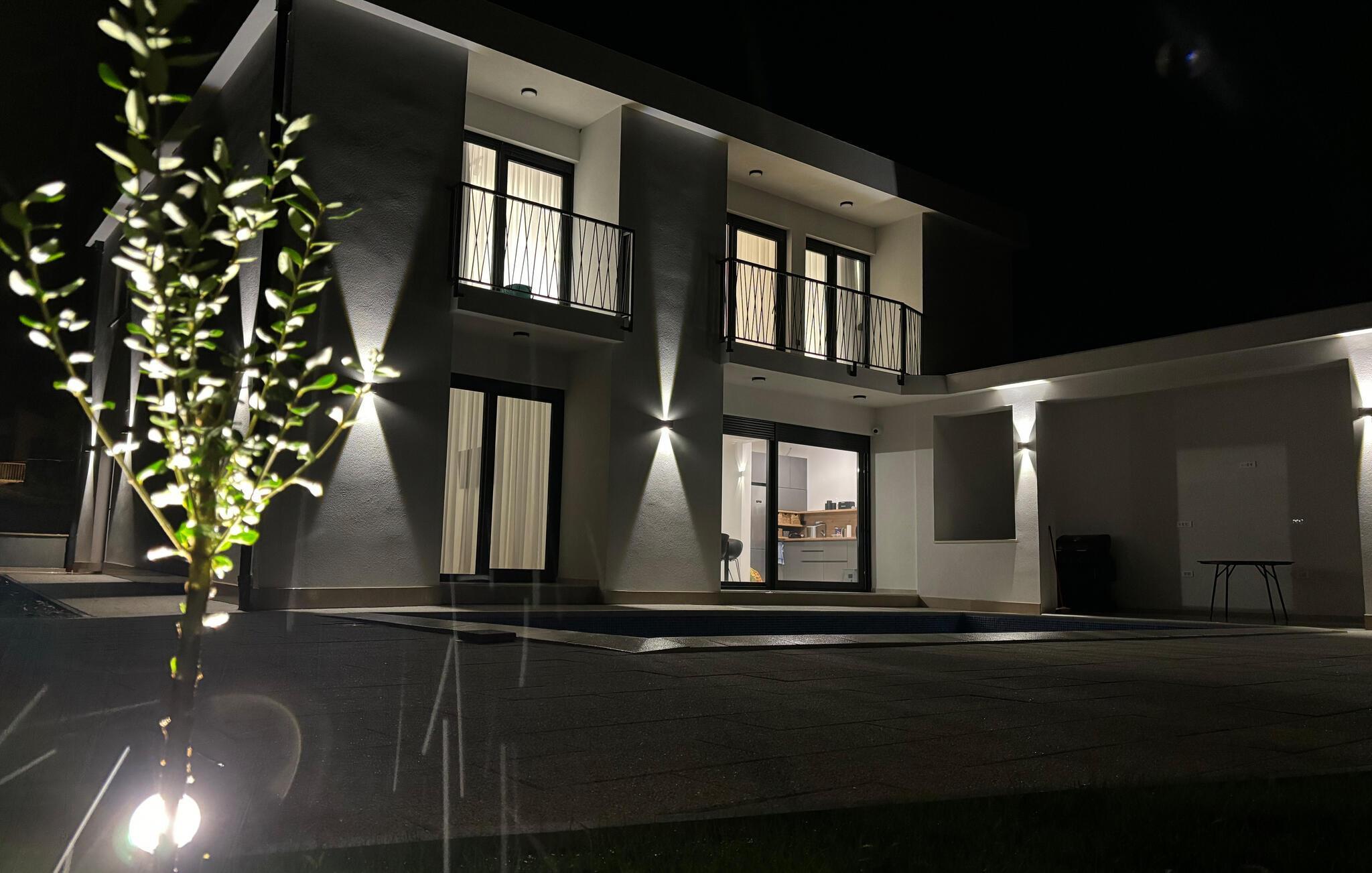 Entspannen Sie auf dem Balkon mit Blick auf das Meer oder verweilen einen Stock tiefer auf der Terrasse und im Garten, mit beheiztem Pool, der für jede Menge Badevergnügen sorgt. Freuen Sie sich für die Grillabende, die an der Sommerküche auf der Terrasse stattfinden werden. Ein komplett ausgestatteter Kinderpark direkt neben dem Haus sorgt für unbeschwerten Spielspaß für die Kleinen. Für Fitness-Enthusiasten stehen zusätzliche Trainingsgeräte bereit.