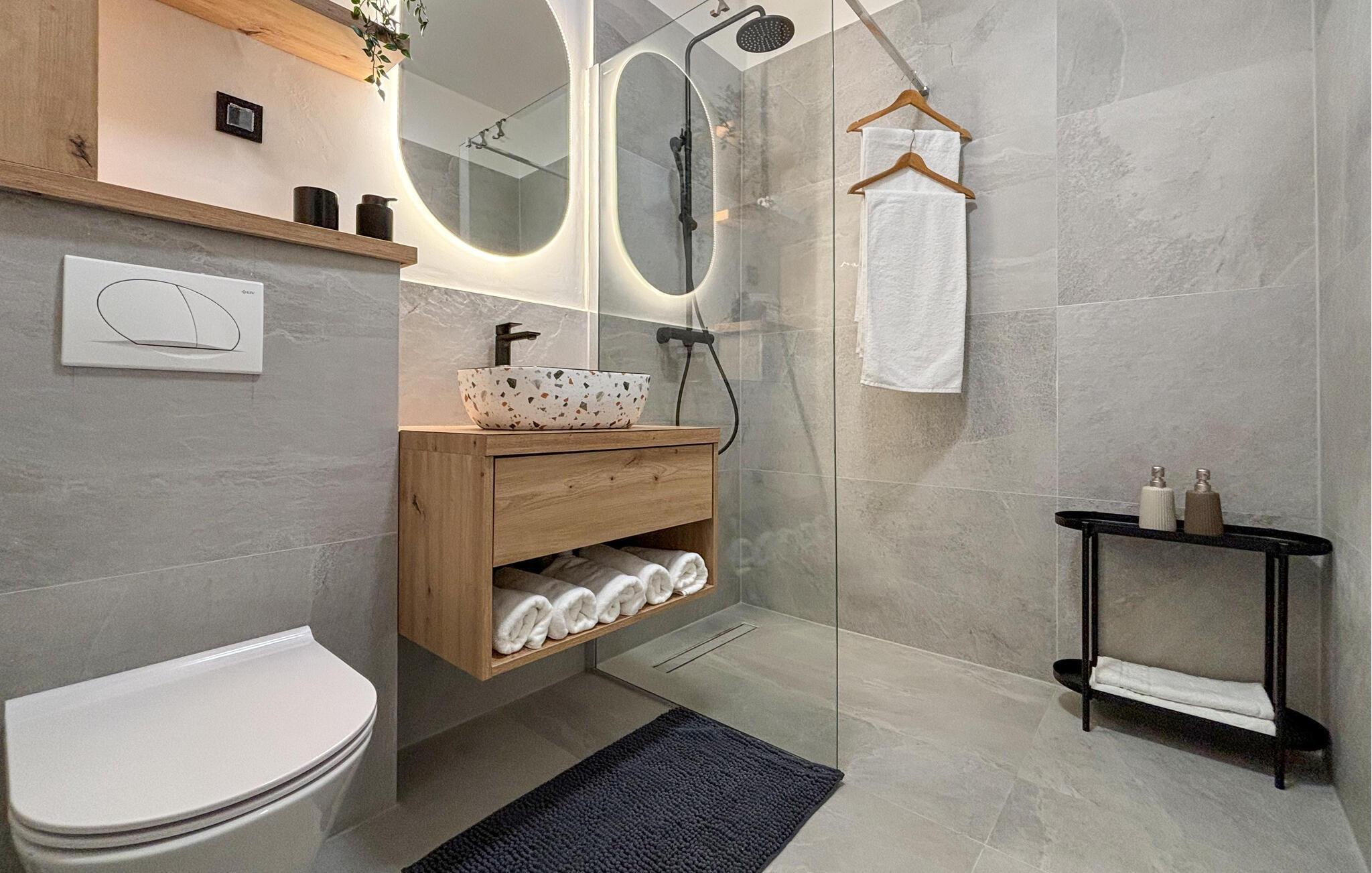 Badezimmer 5m2 (nr. 1) - WC. Warmes und kaltes Wasser. Dusche