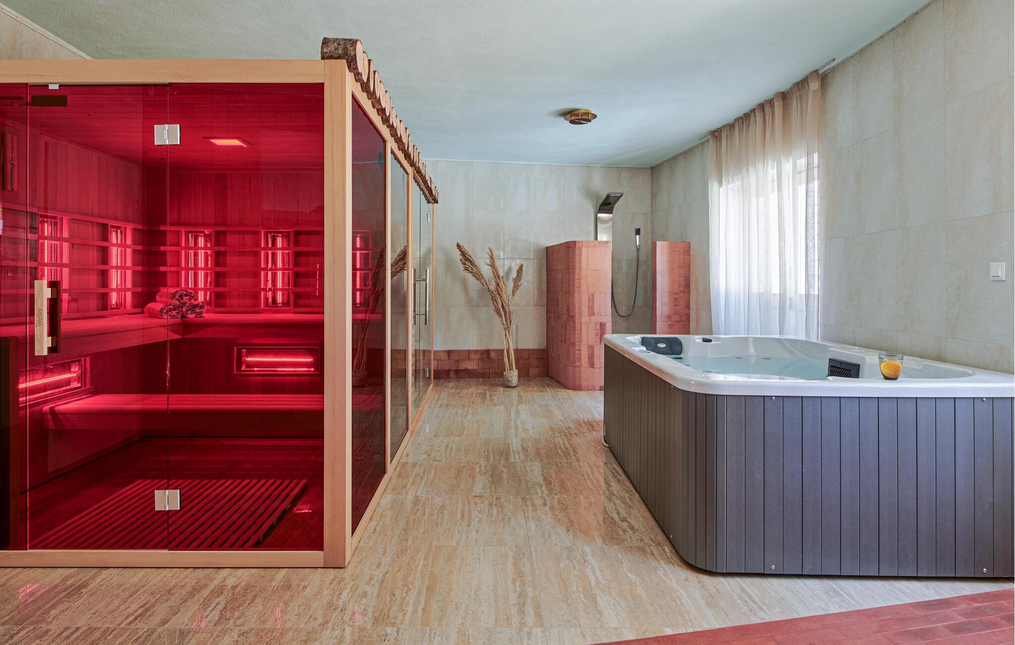 Willkommen in diesem luxuriösen Haus, das Sie in kurzer Entfernung zum Strand empfängt und viel Platz für eine Auszeit mit großem Komfort bietet. Entspannen Sie hier in modern und stilvoll ausgestatteten Räumen mit Ihren Lieben. Freuen Sie sich auf gemütliche Abende, wenn Sie von Ihren Unternehmungen oder dem Strand zurückkehren, entspannen Sie in der Sauna, absolvieren Sie eine Trainingsrunde an den Fitnessgeräten oder nutzen Sie die zahlreichen Unterhaltungsangebote. Später können Sie auf am Kamin noch lange plaudern und das elegante Ambiente genießen.