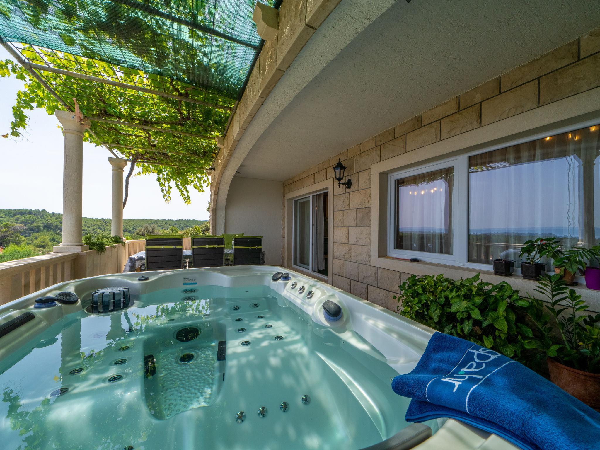 Single-family house "Ivana". 450 m from the centre of Selca, in a sunny, elevated position, 2.6 km from the sea, 3 km from the beach. Private: property 1'000 m2, swimming pool (above ground) round (4,25 m diameter, depth 100 cm, seasonal availability: 01.Jun. - 15.Oct.). Hot tub, garden furniture, barbecue. In the house: internet access, washing machine. Parking (for 3 cars) at the house on the premises. Shop 450 m, restaurant 500 m, bus stop 650 m, rocky beach 3 km, concrete beach 3 km. Please note: suitable for families. Groups of teenagers on request only. The owner does not accept any youth groups.